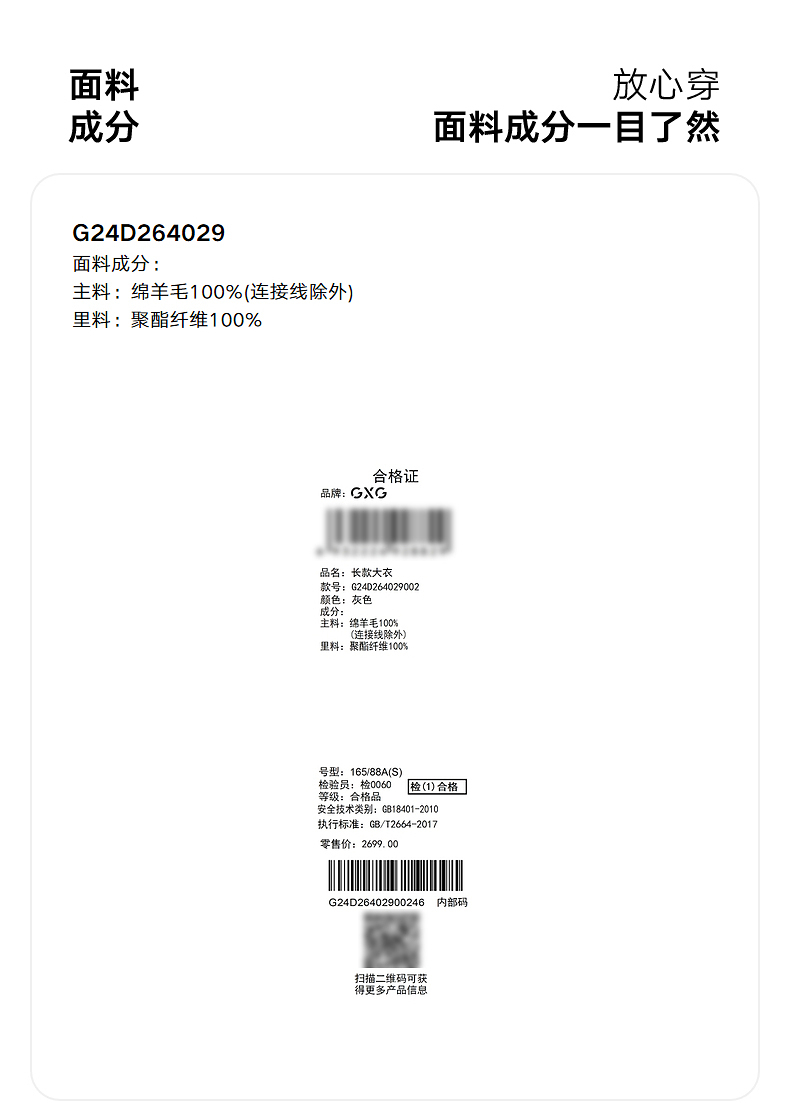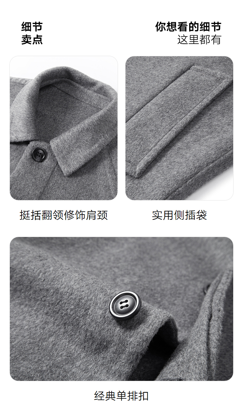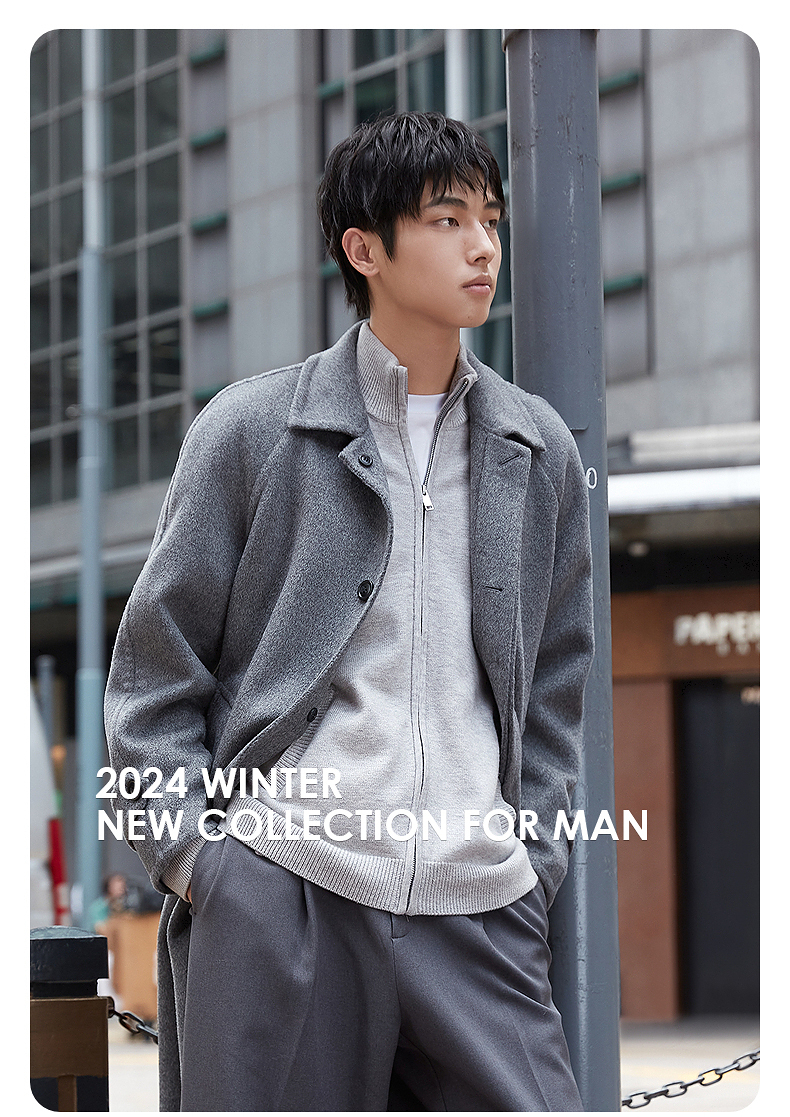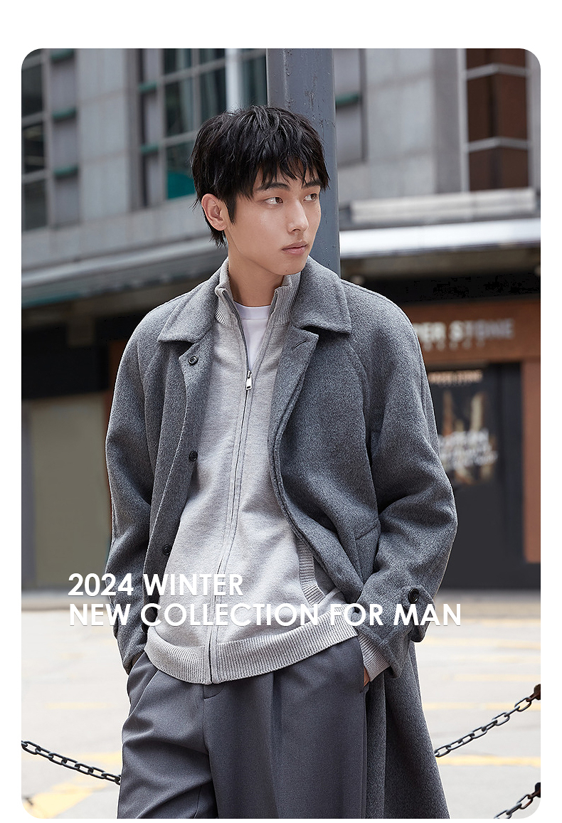 GXG男装插肩袖大衣纽扣翻领外套长款大衣24年冬季热卖#G24D264029