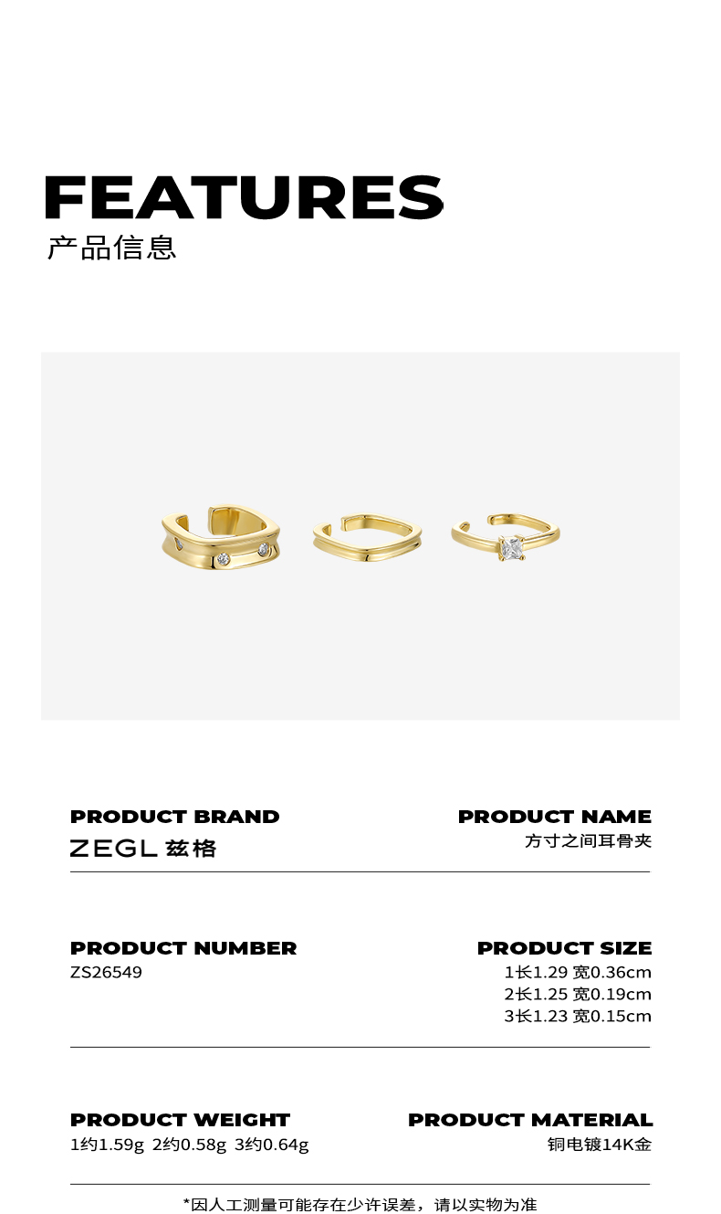 ZEGL简约方形耳夹女无耳洞高级感耳环耳骨夹冷淡风耳饰夏小众设计