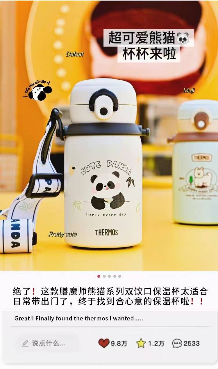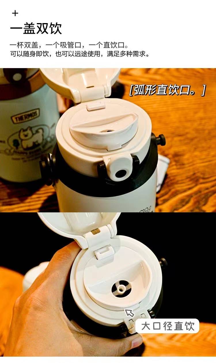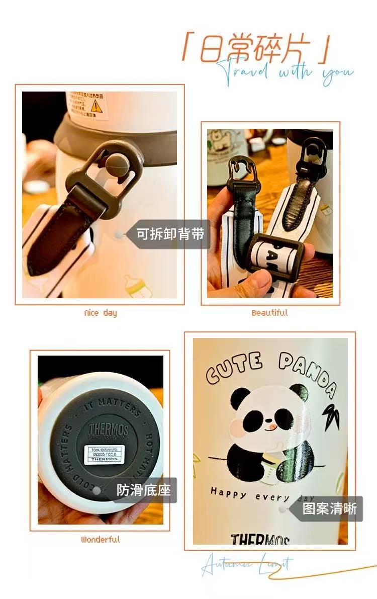 膳魔师熊猫系列双饮口保温杯 白色500ml