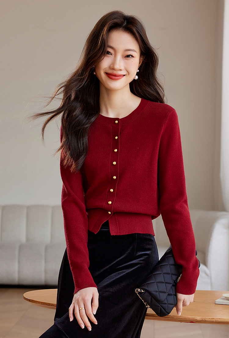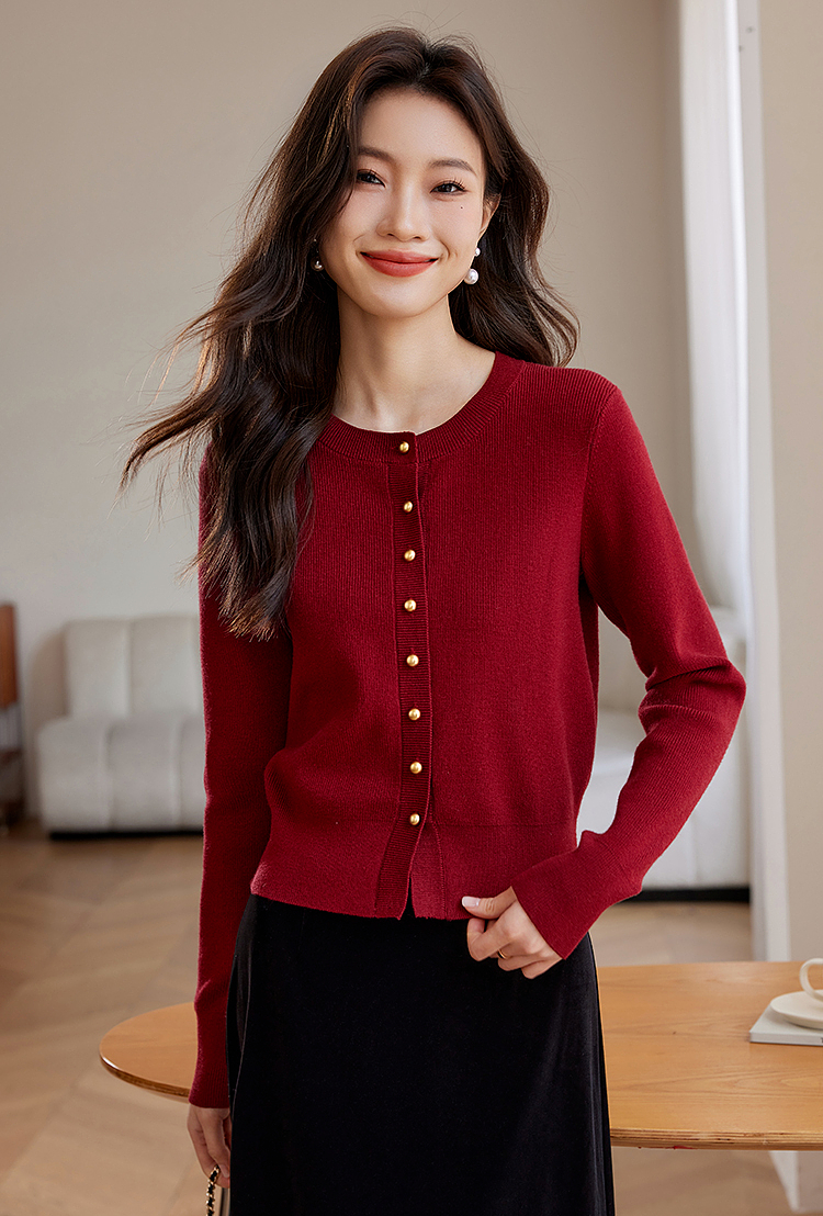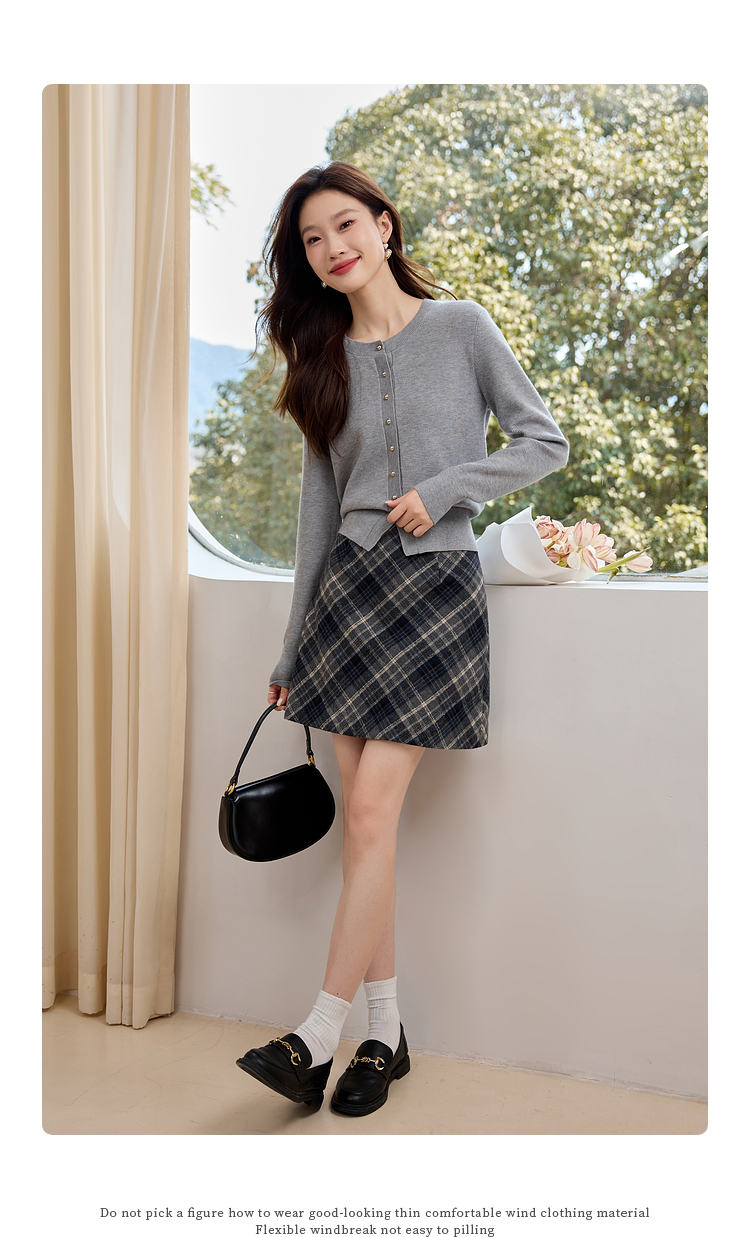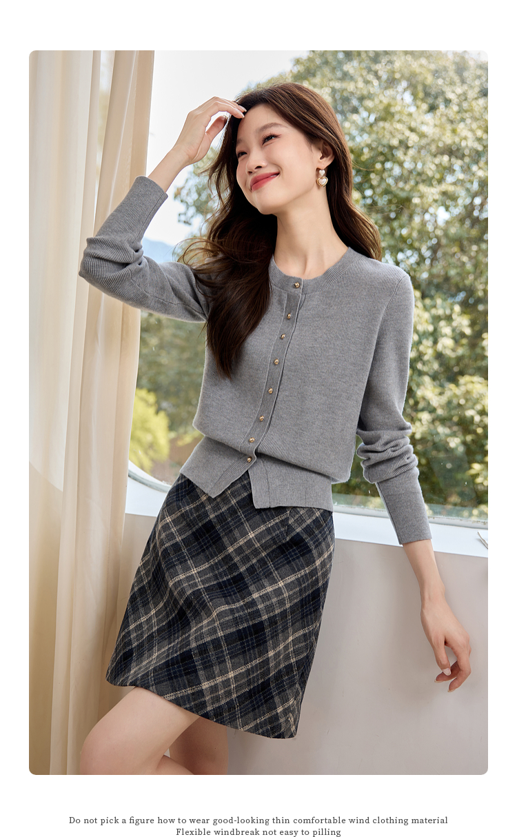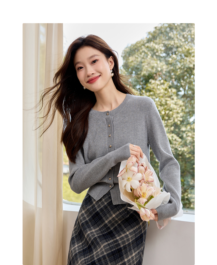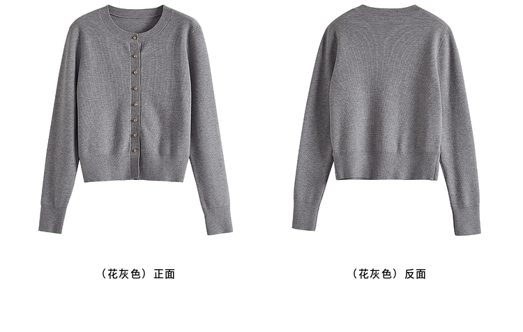 【年货节】熙世界格雷系圆领针织开衫25秋冬新款通勤内搭灰色软糯毛衣外套