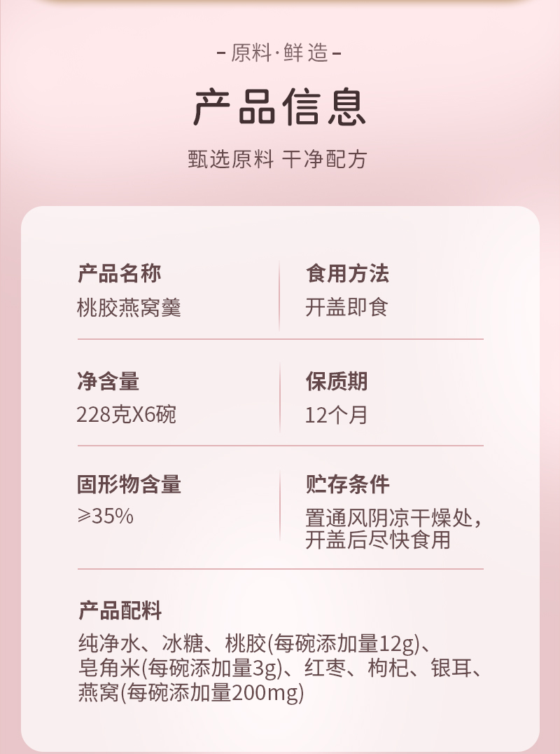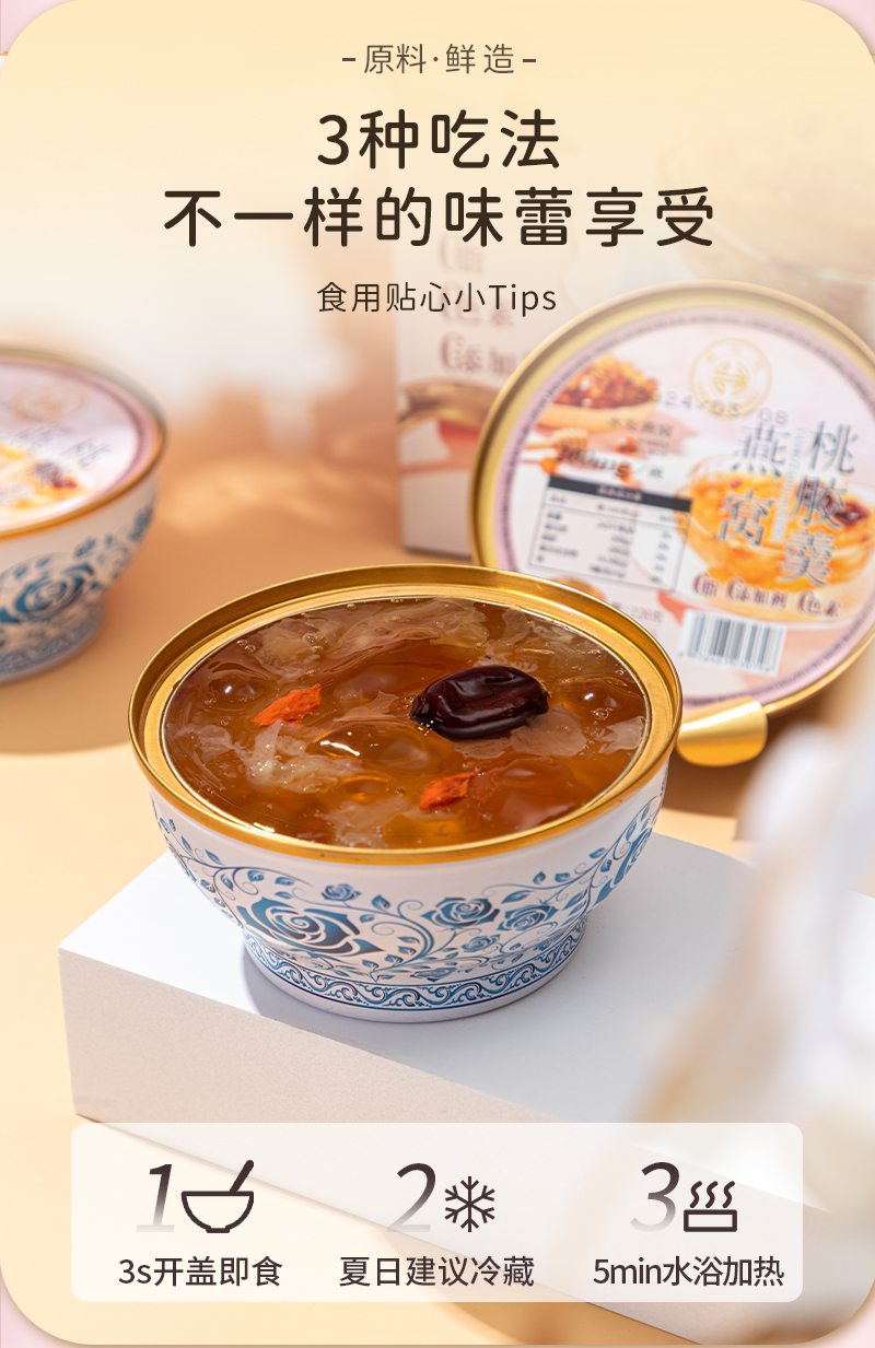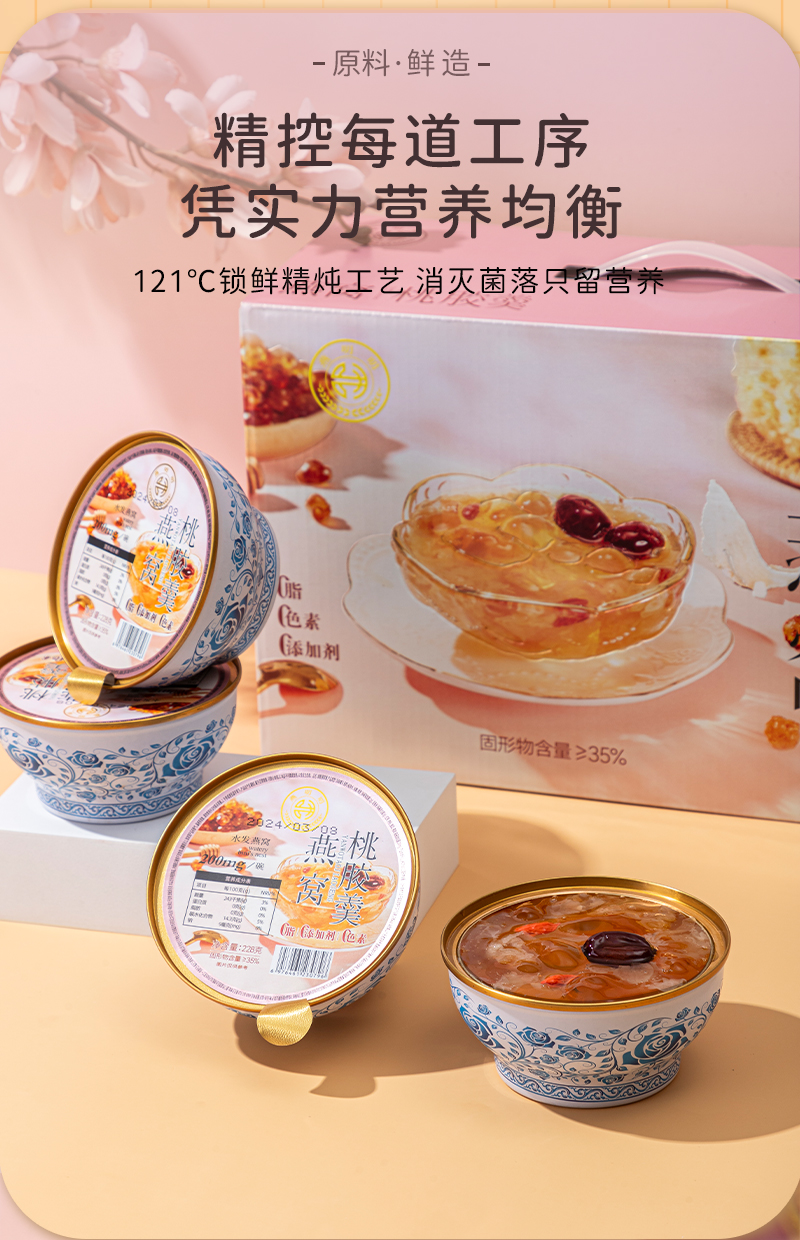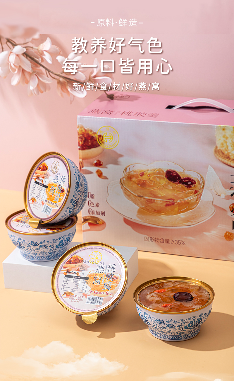 燕叨叨燕窝桃胶羹礼盒228g*6碗 速食代餐粥老人孕妇即食燕窝节日送礼