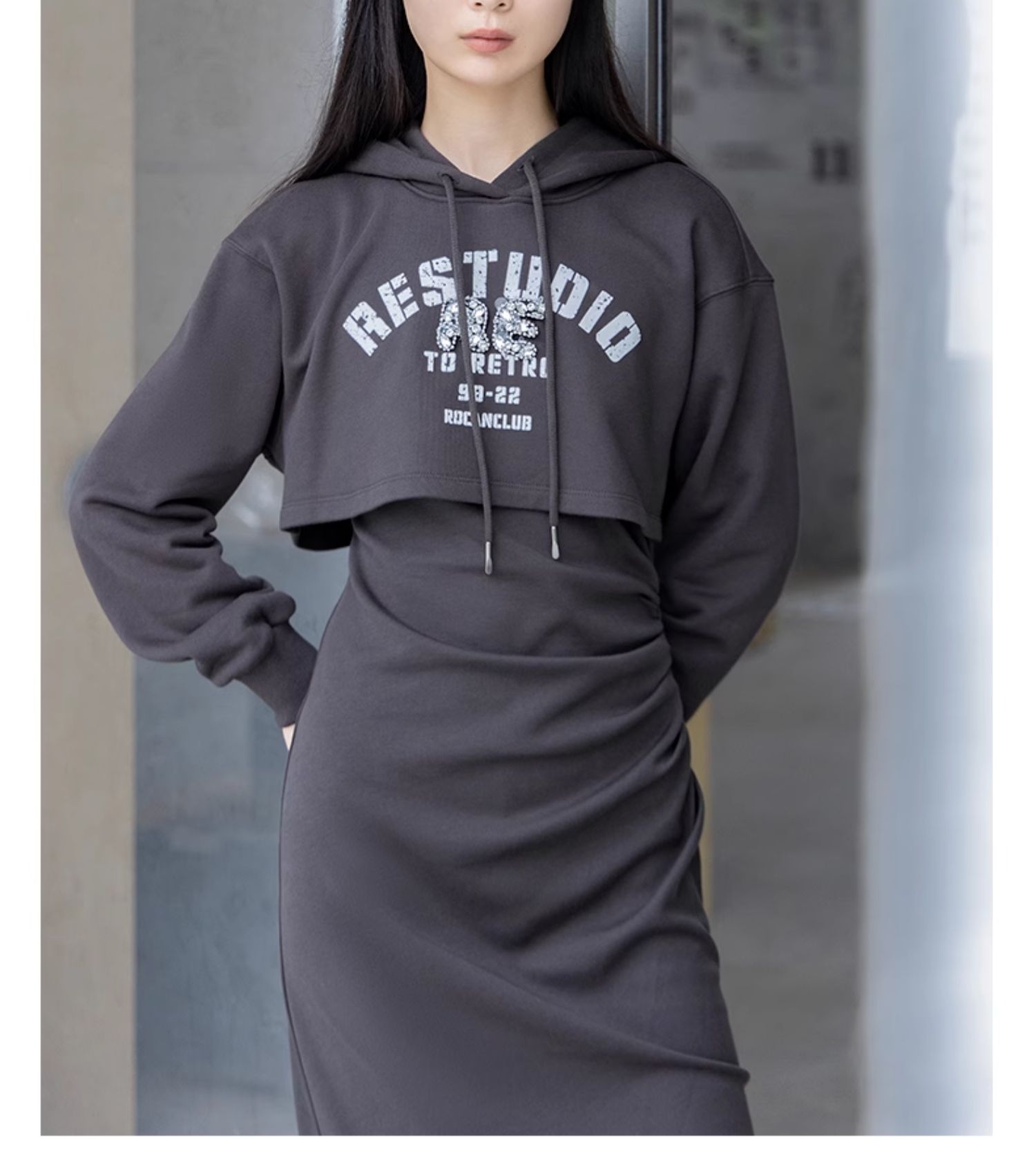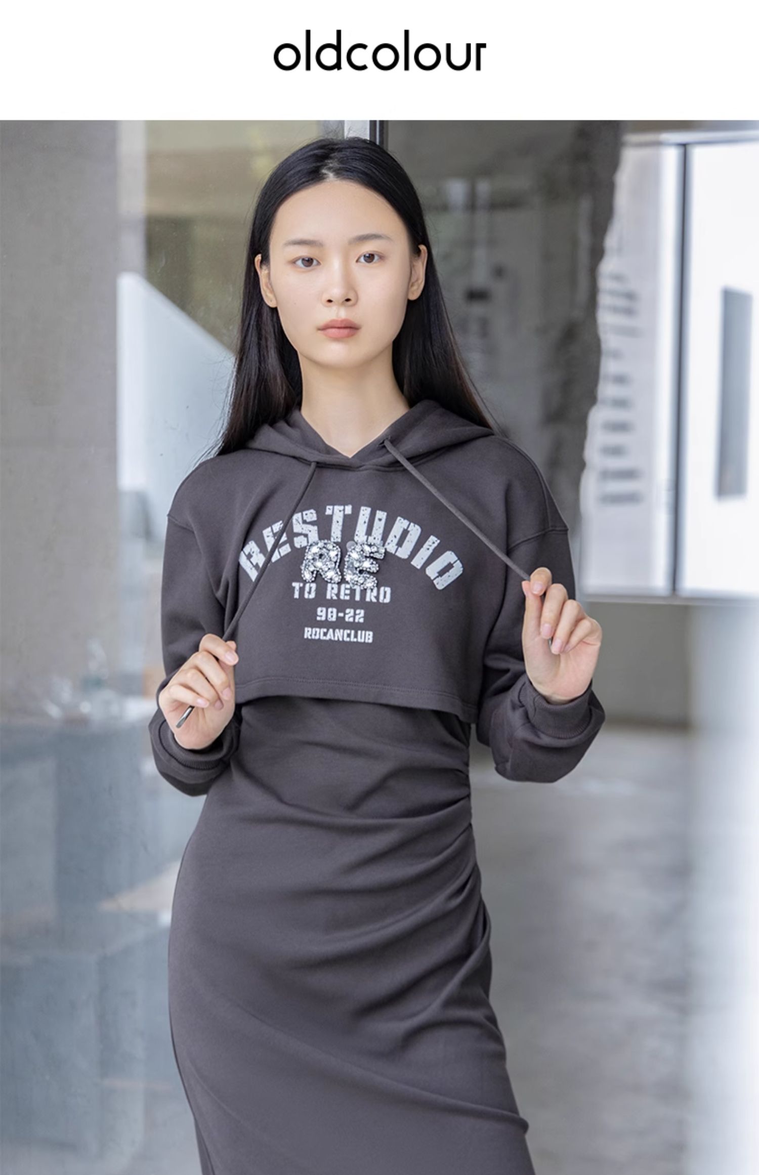 oldcolour秋季新款甜酷风字母印花连帽卫衣两件套连衣裙P381006A1