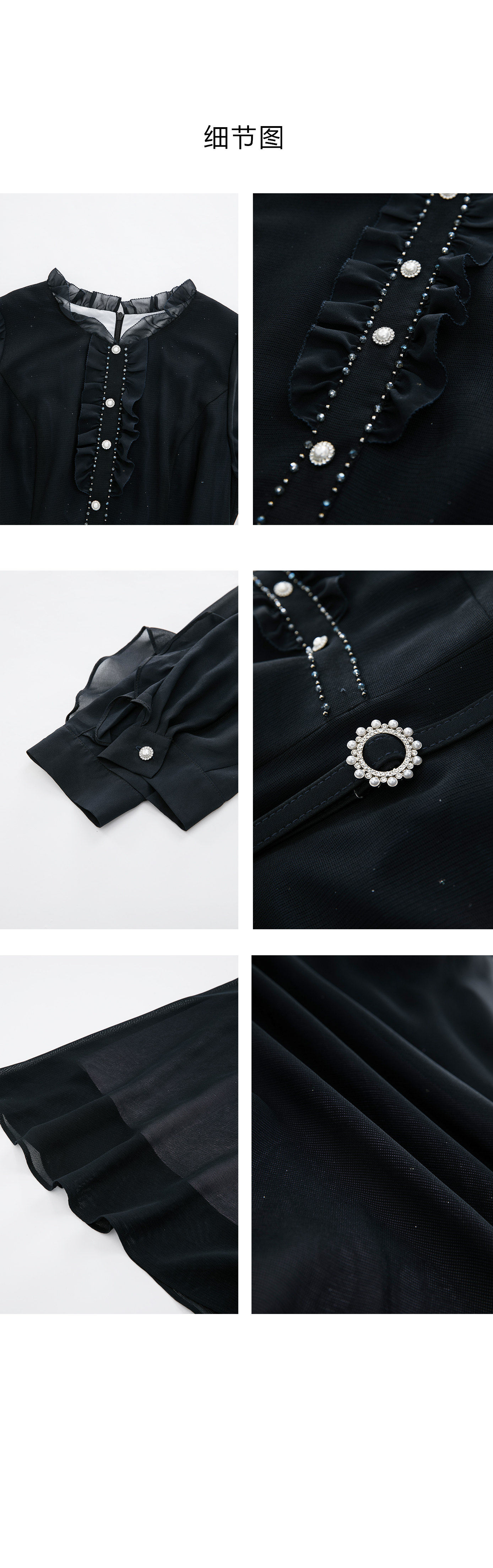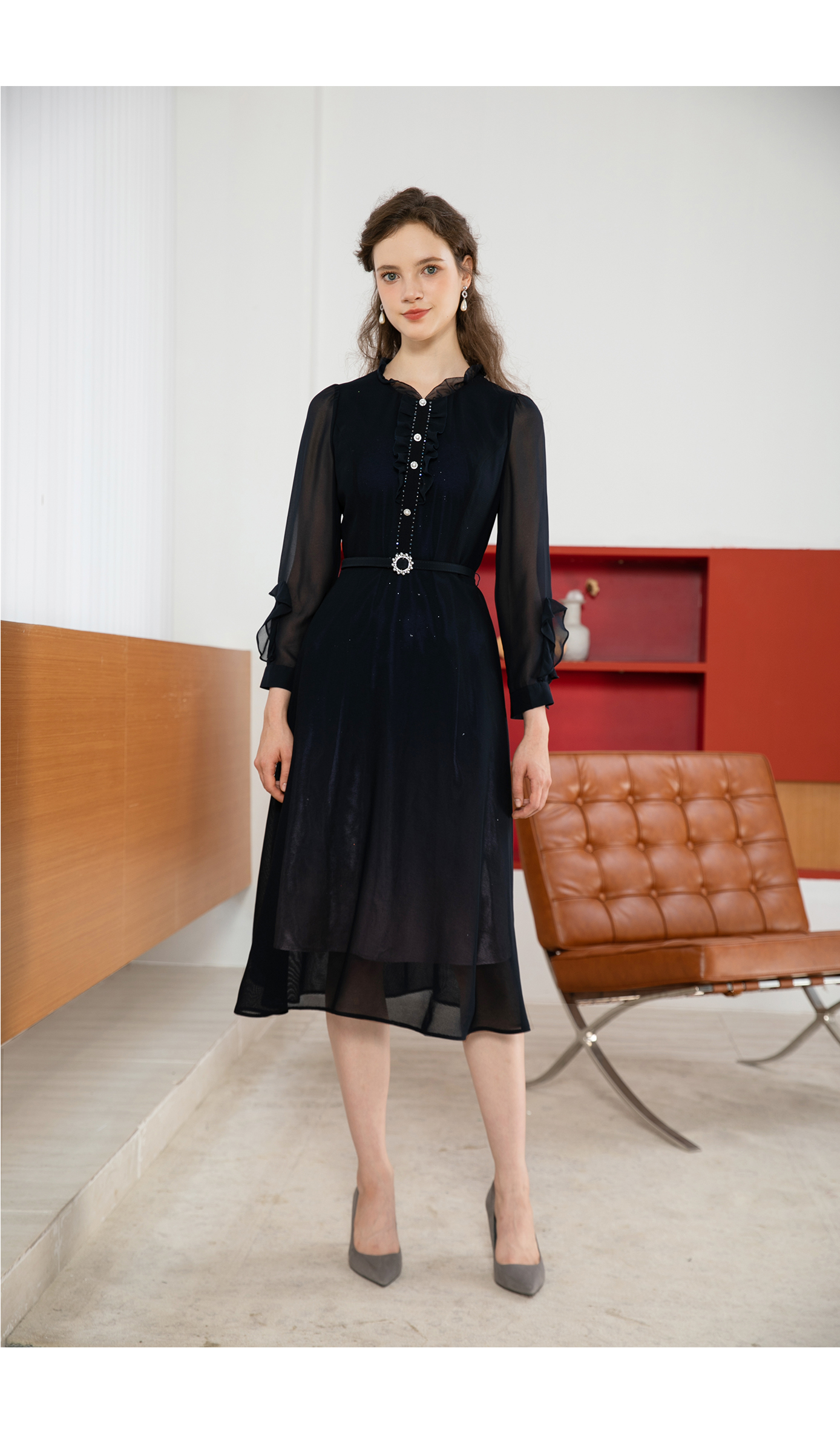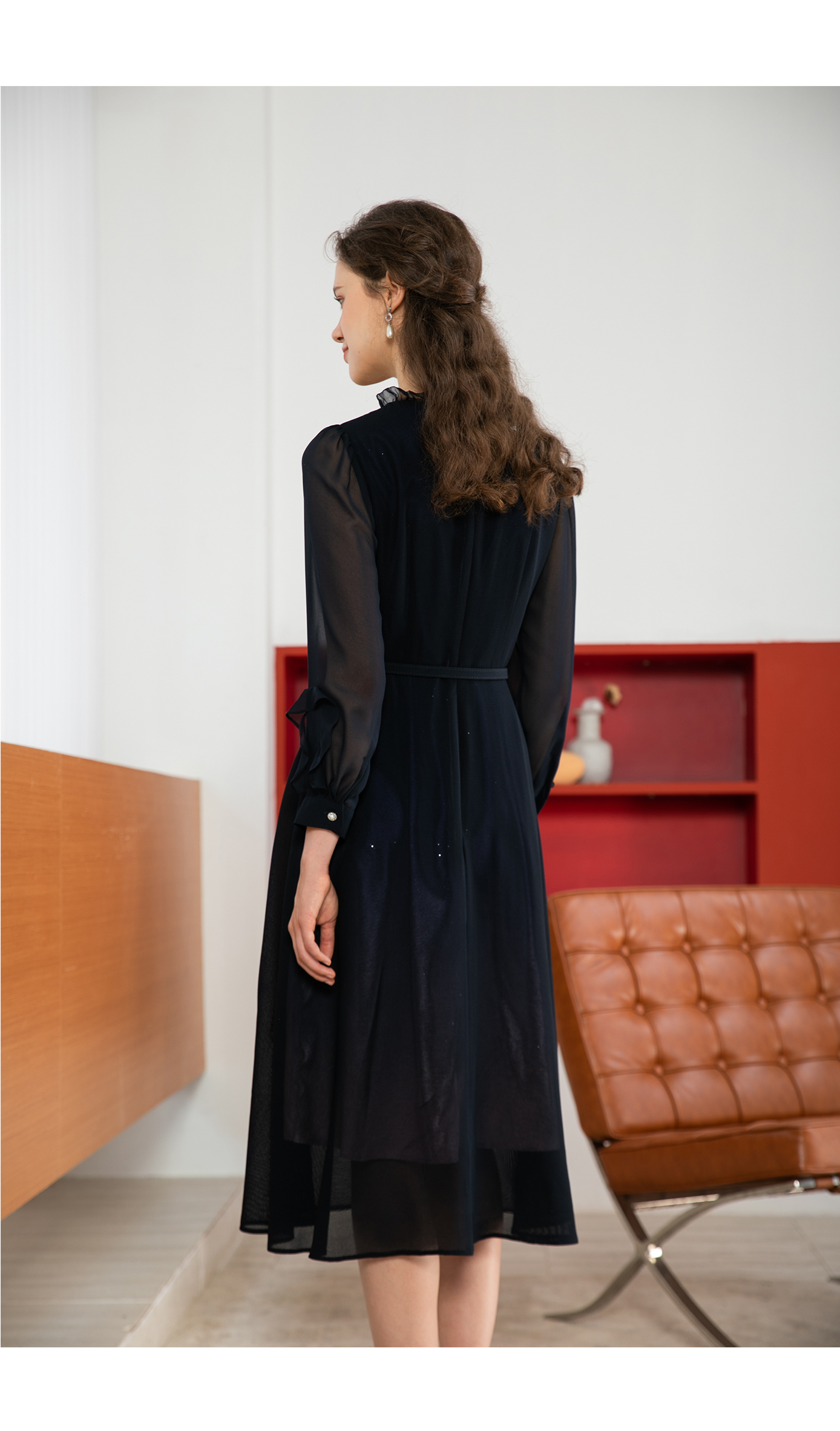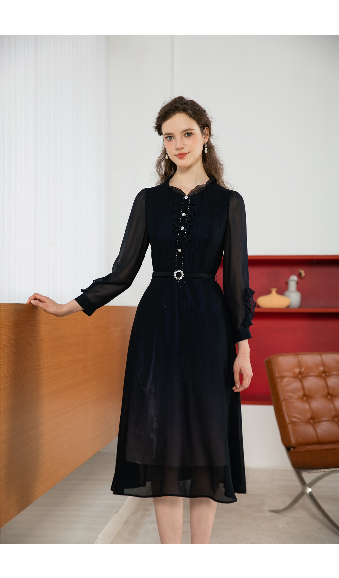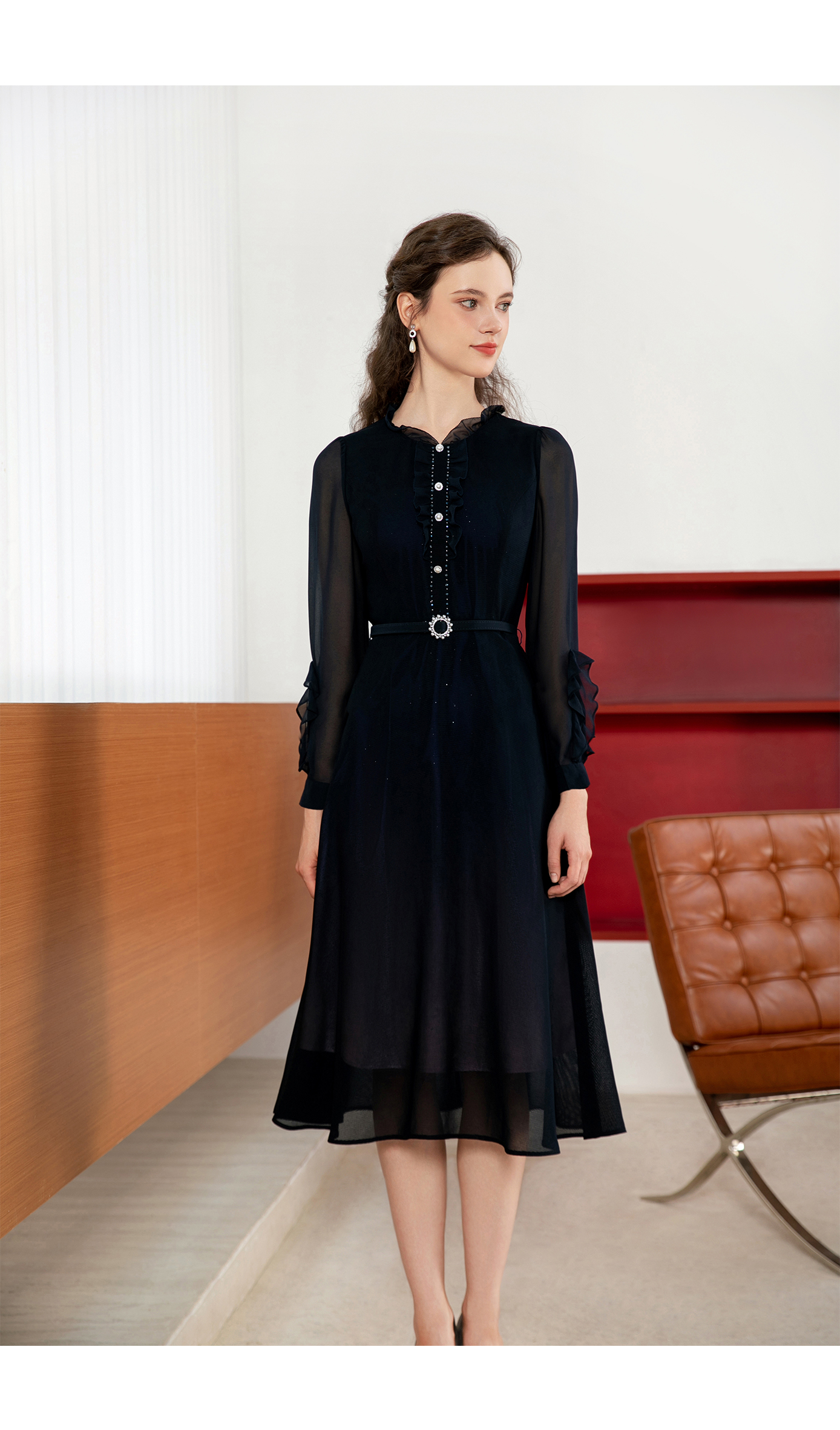 司歌长袖荷叶轻薄长袖连衣裙收腰A901204X