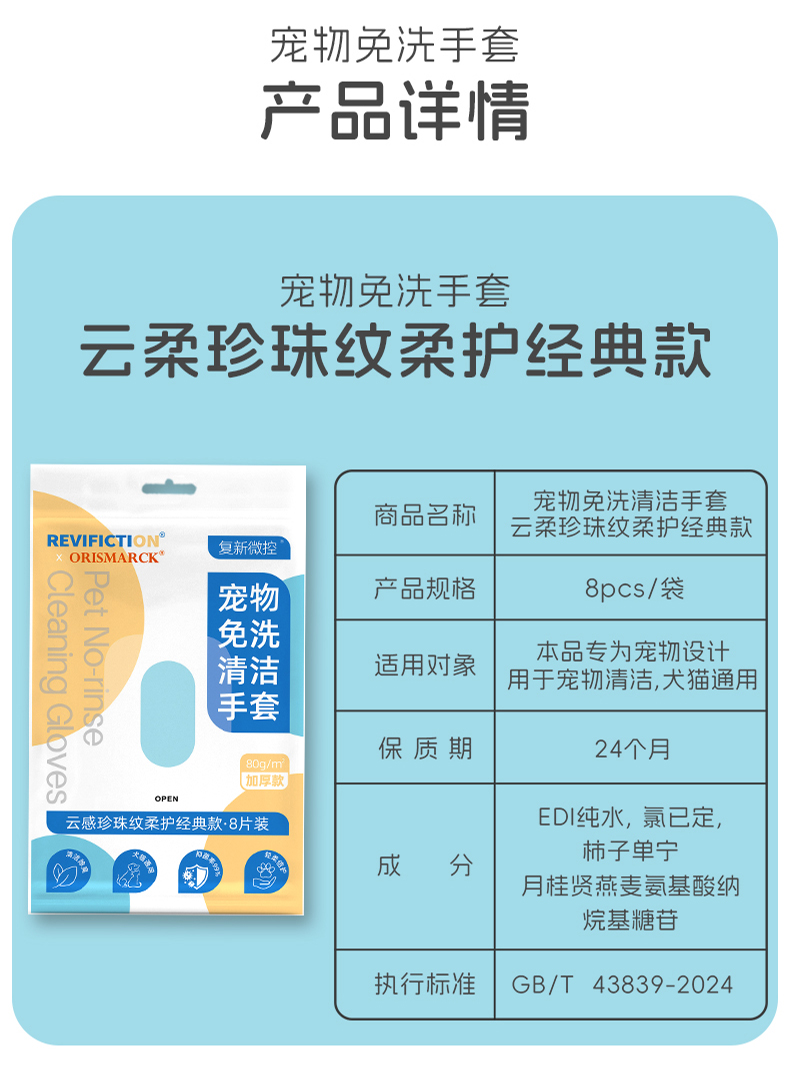 复新微控-宠物免洗清洁手套-云感珍珠纹柔护经典款