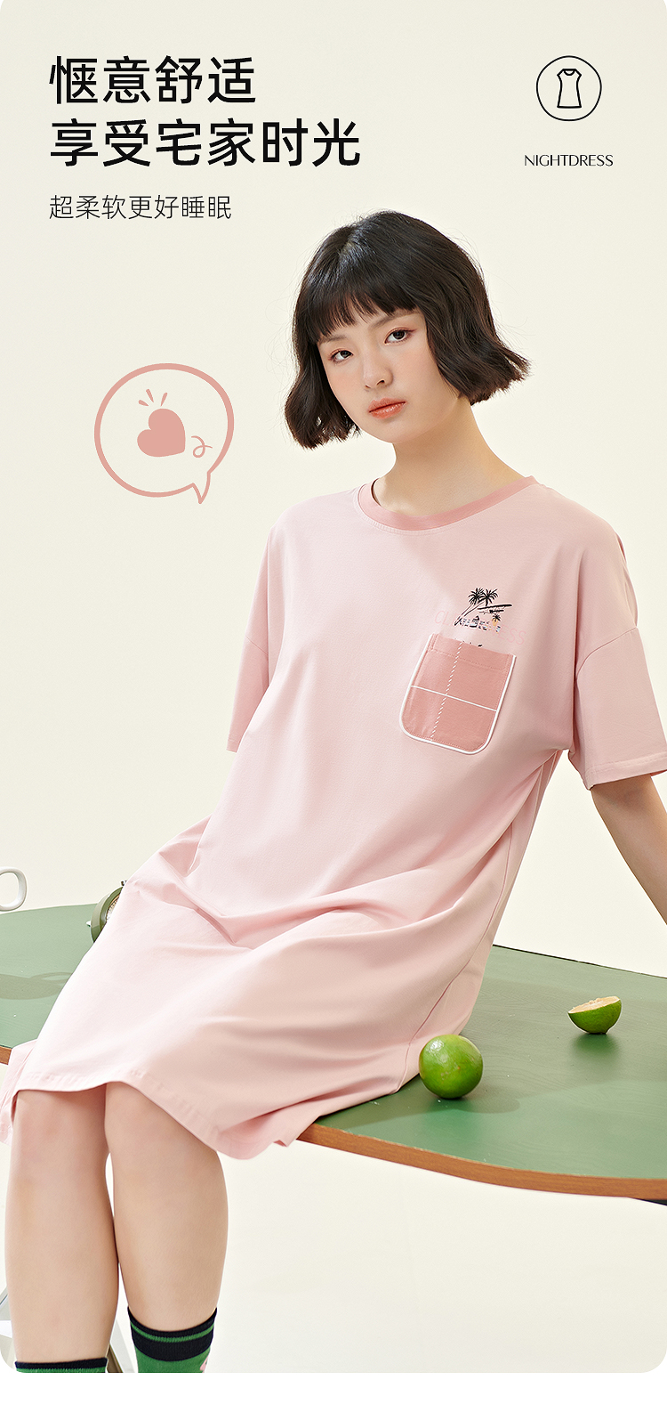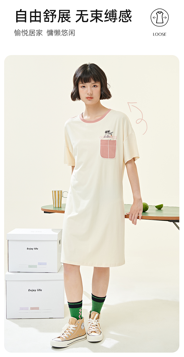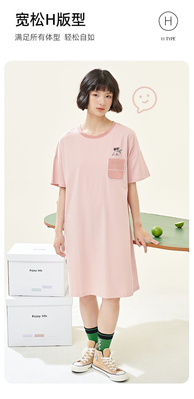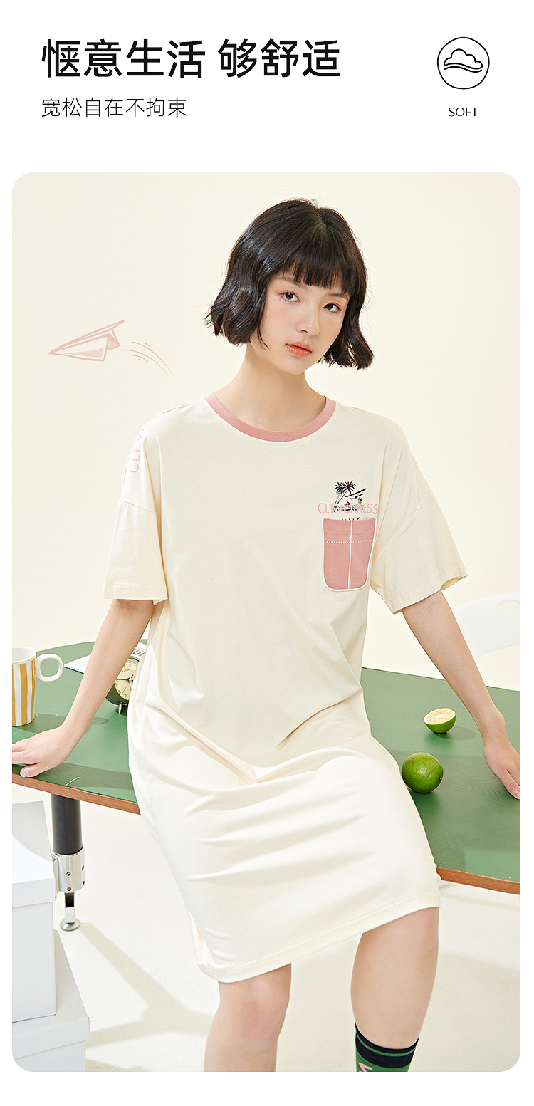 新款夏季睡裙女薄款纯棉圆领短袖连衣裙可爱少女全棉睡衣家居服JJQ9936