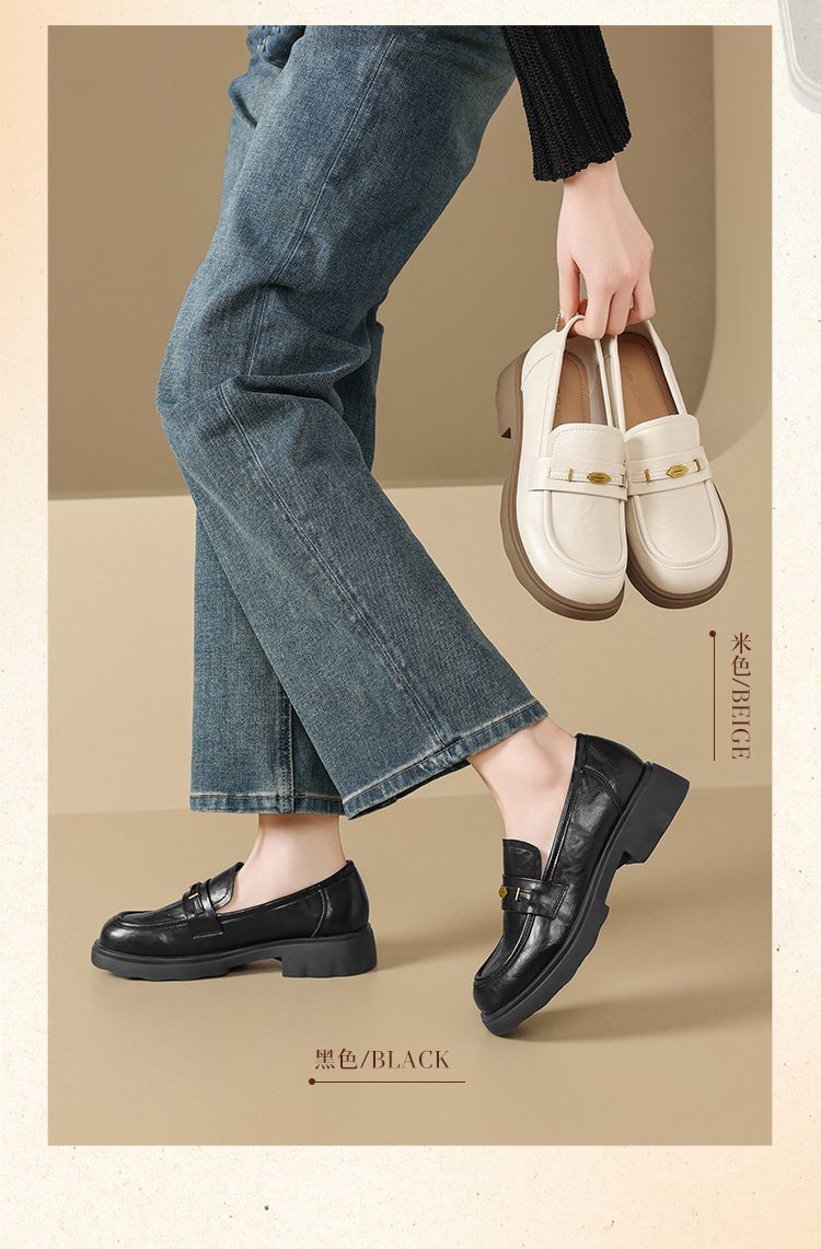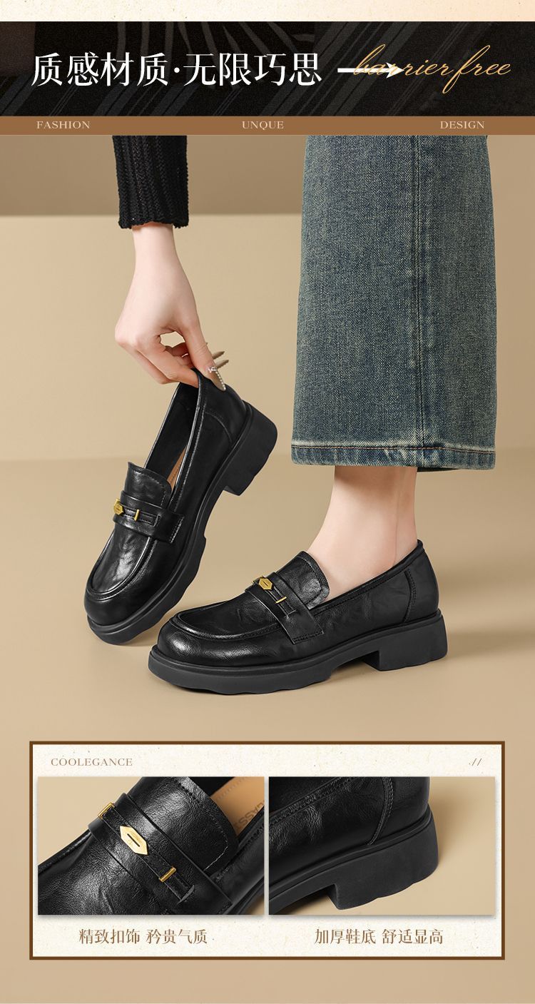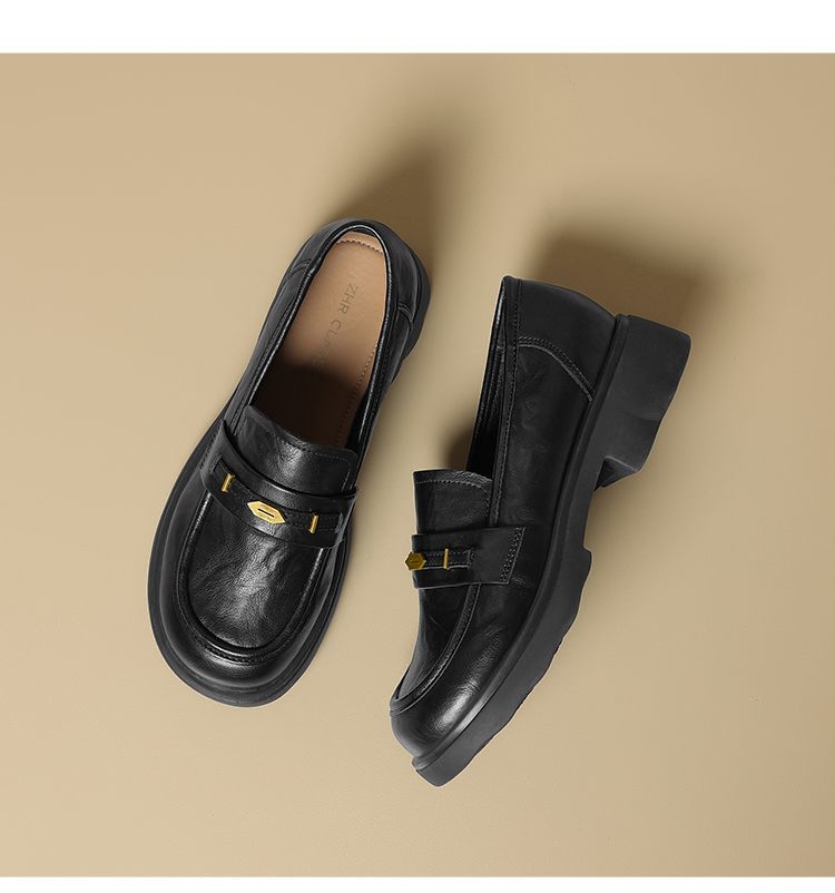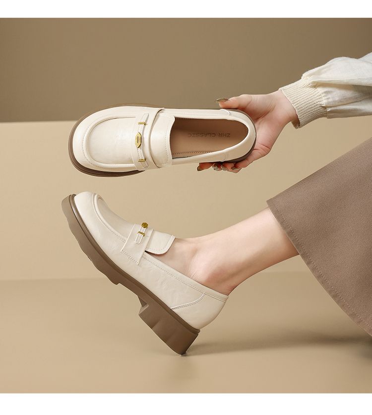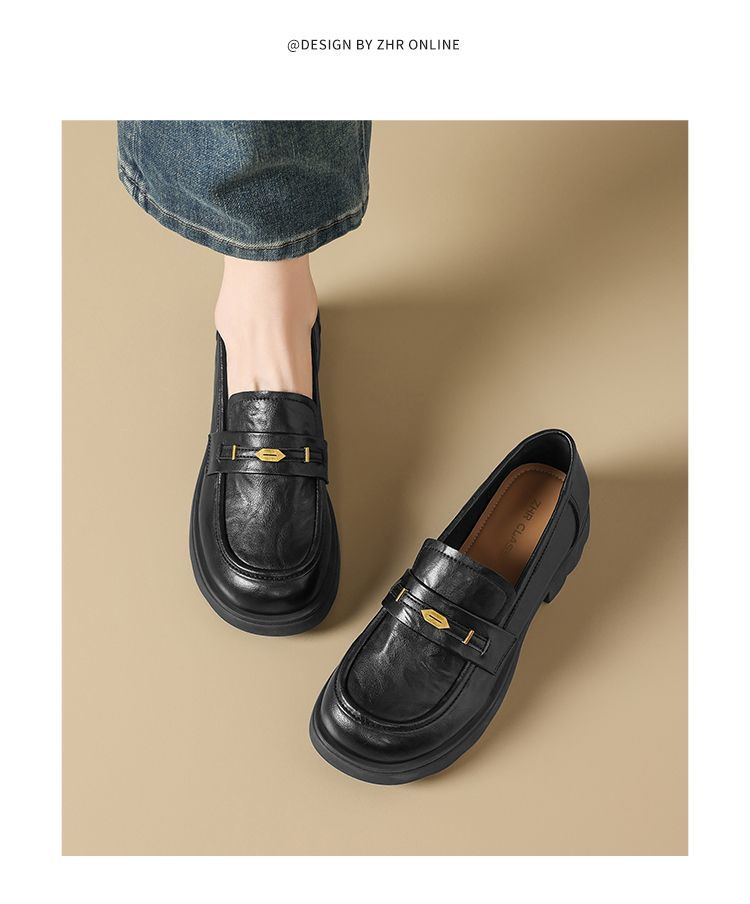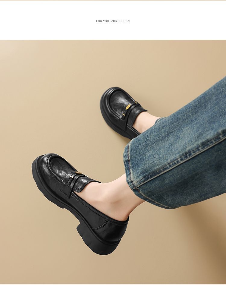 ZHR则则复古抓皱平底乐福鞋2026春季新款轻便百搭舒适通勤小皮鞋