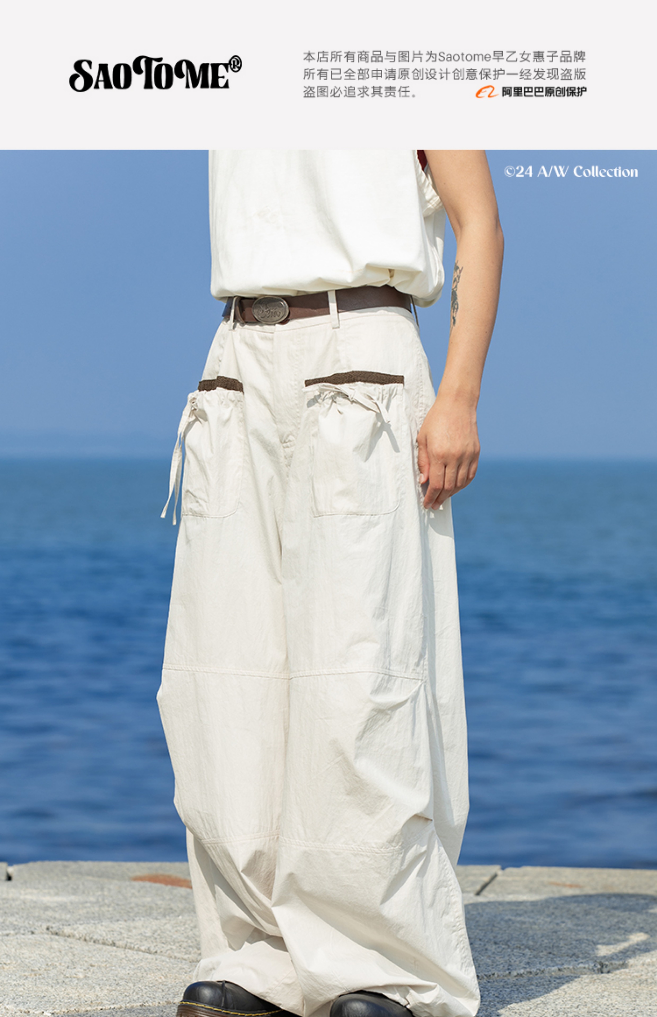 早乙女惠子saotome/STMCK243189/抽褶口袋户外工装裤