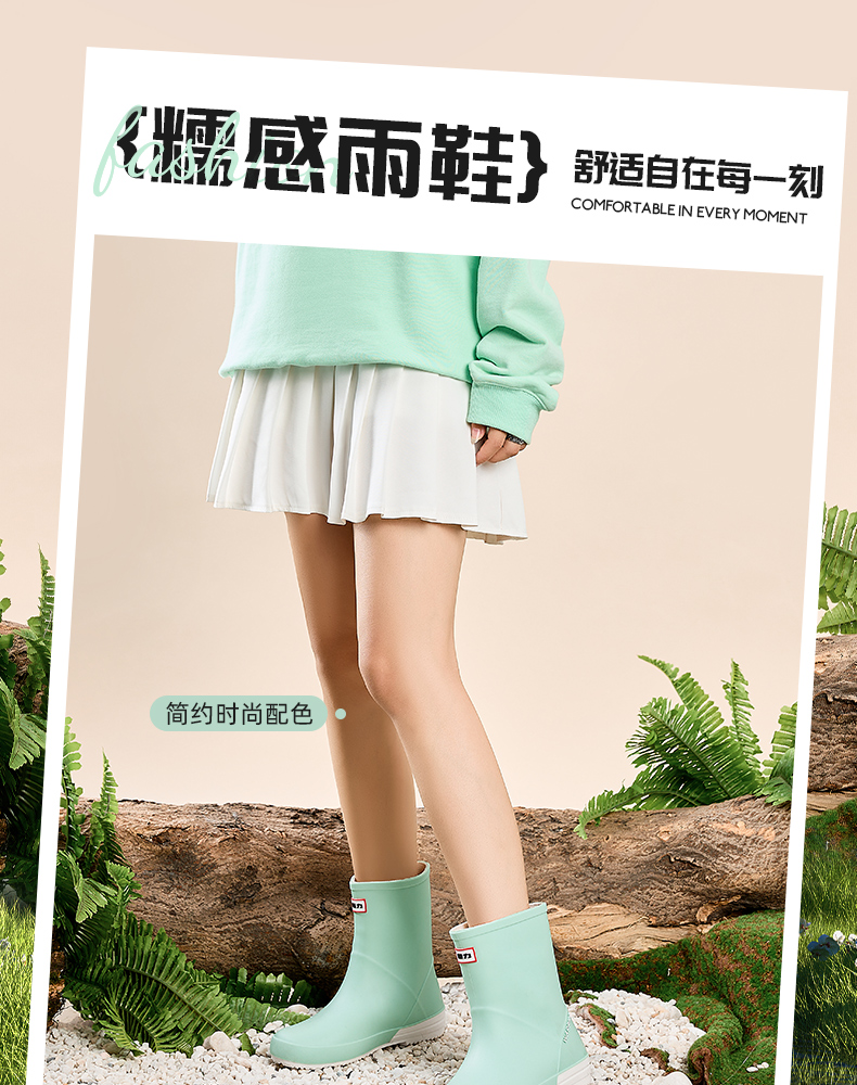 回力雨鞋女款水靴成人水鞋外穿厨房防水软底胶鞋户外工作女士雨靴013中筒