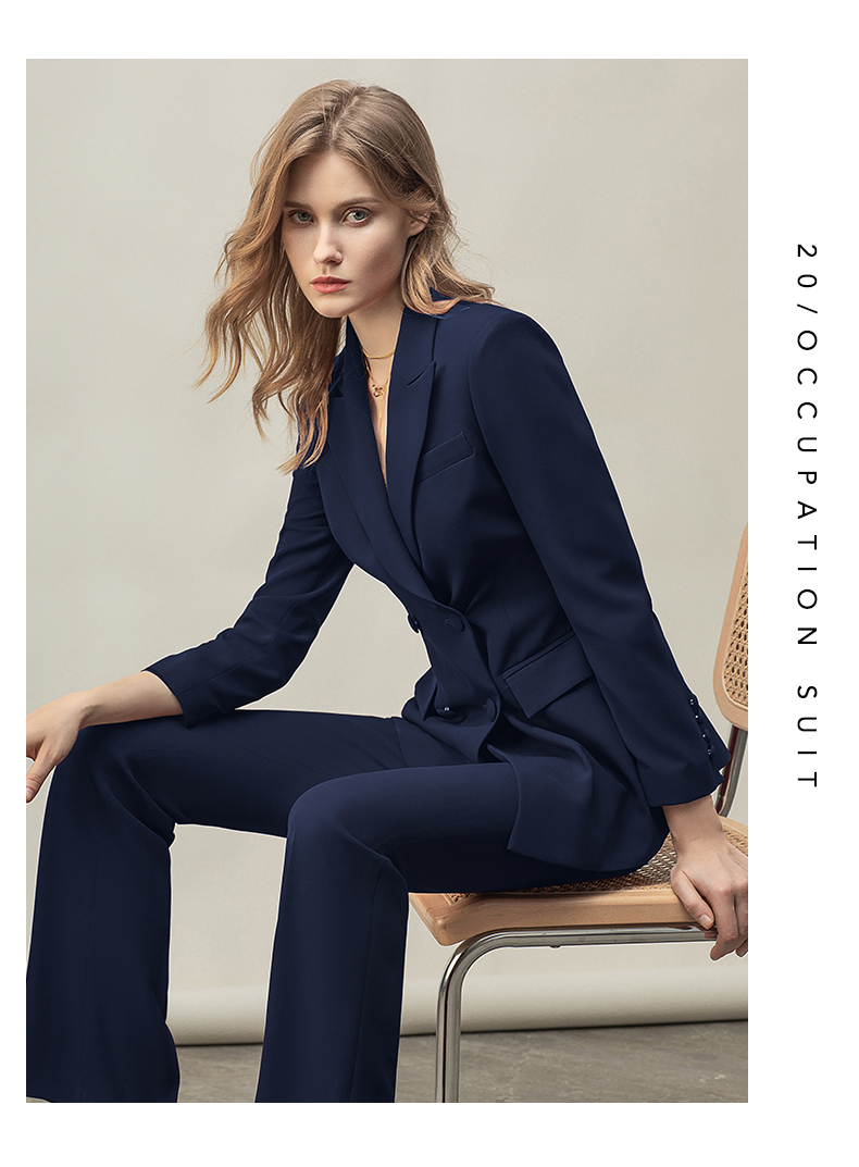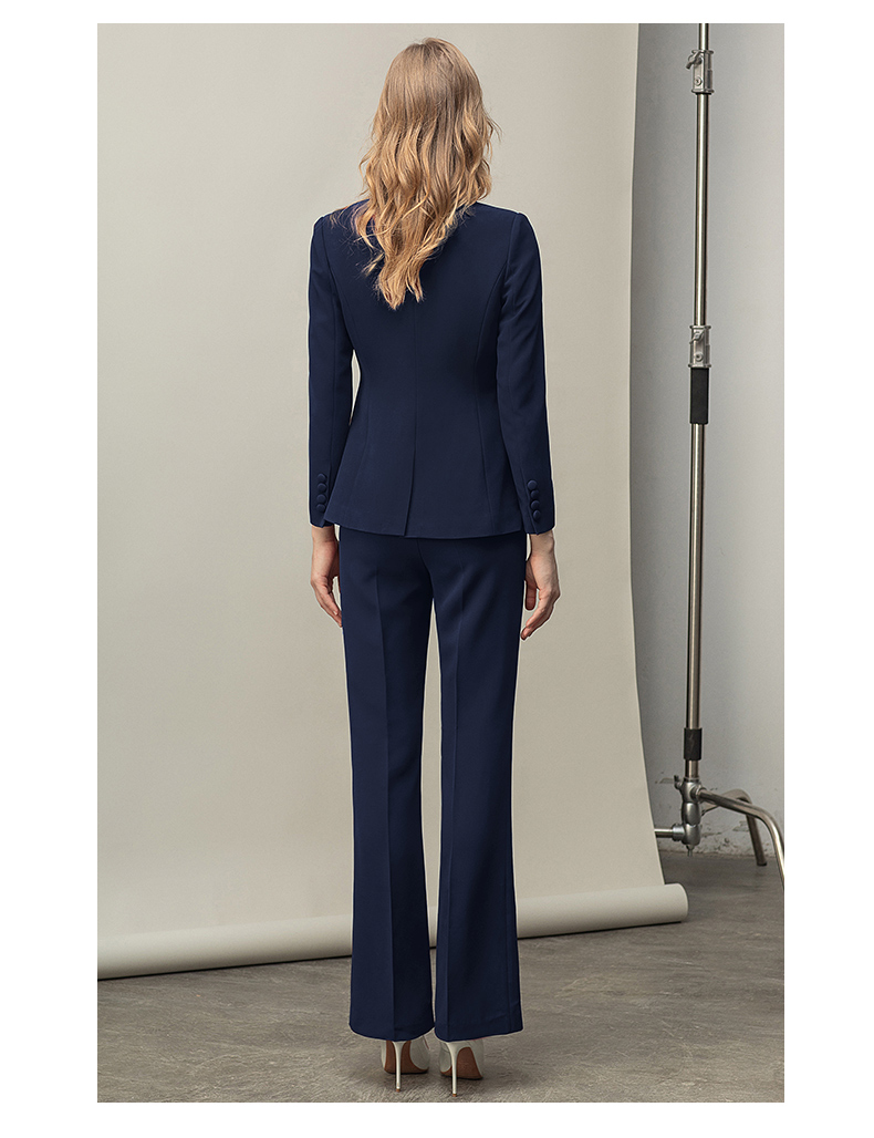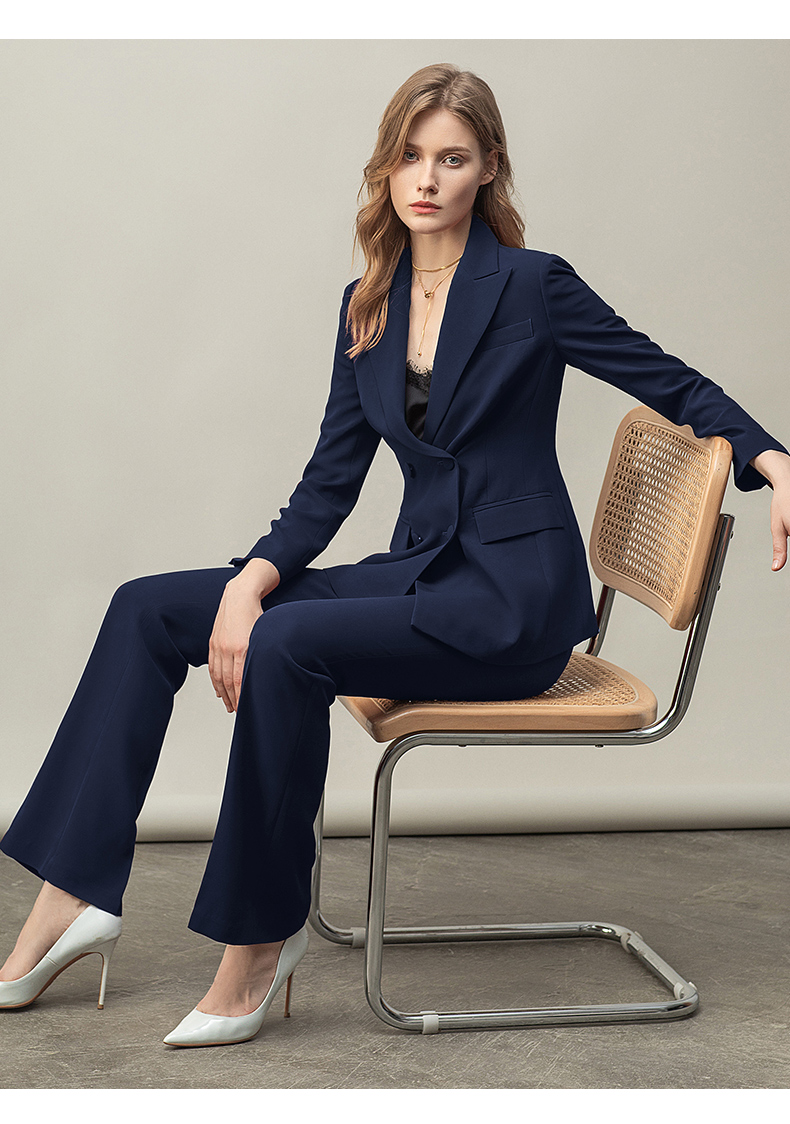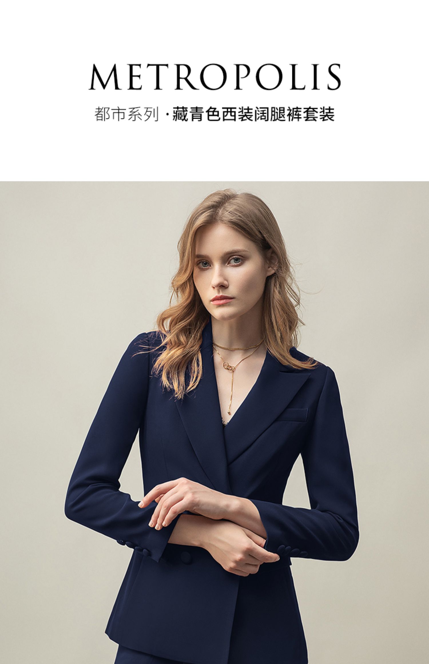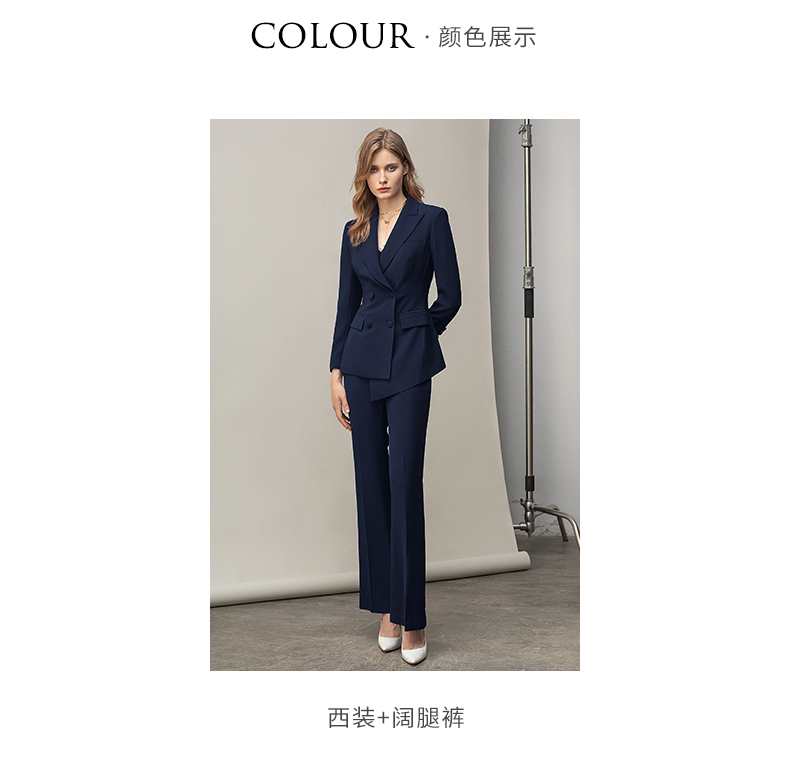 IWY/藏青色西装微喇裤套装气质女装经典西装套裤女总裁职业装工装 C11358+P31358藏青
