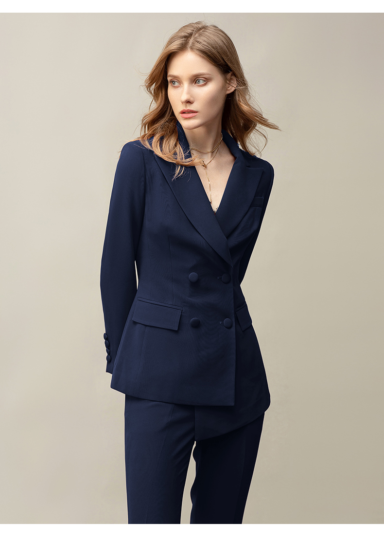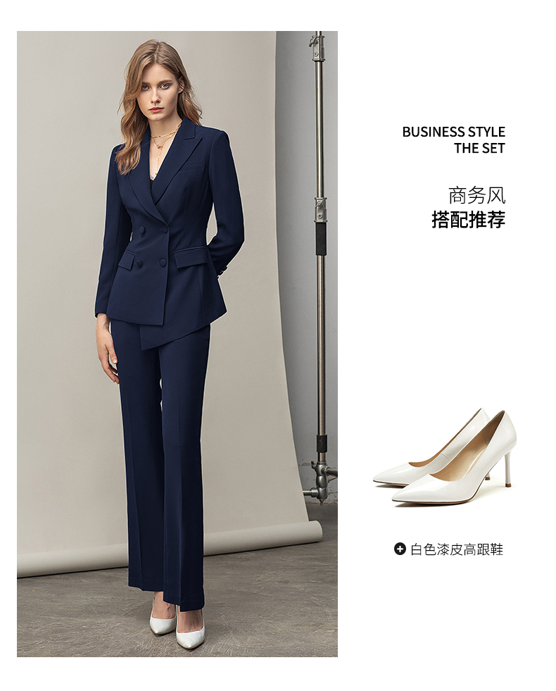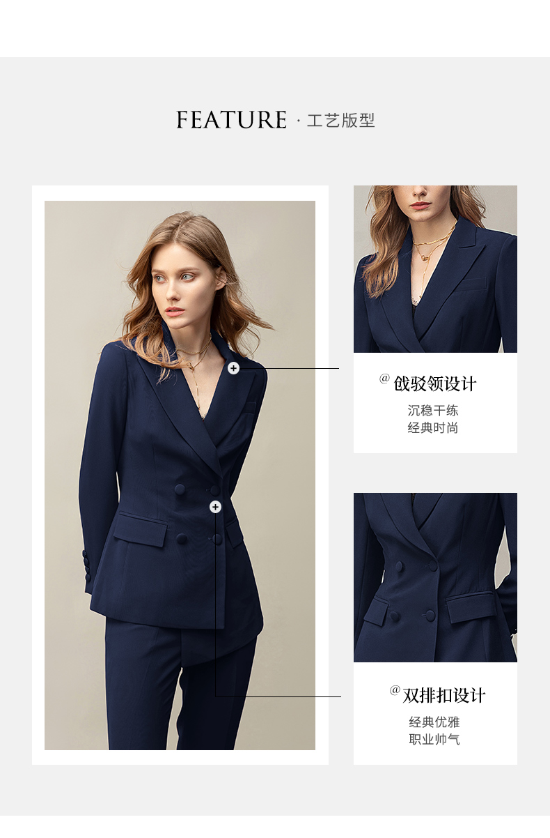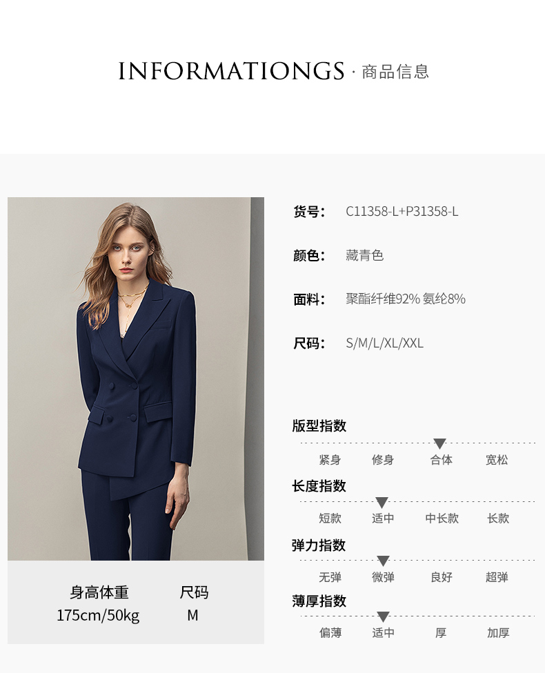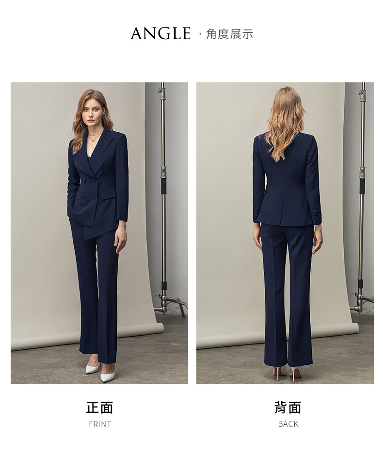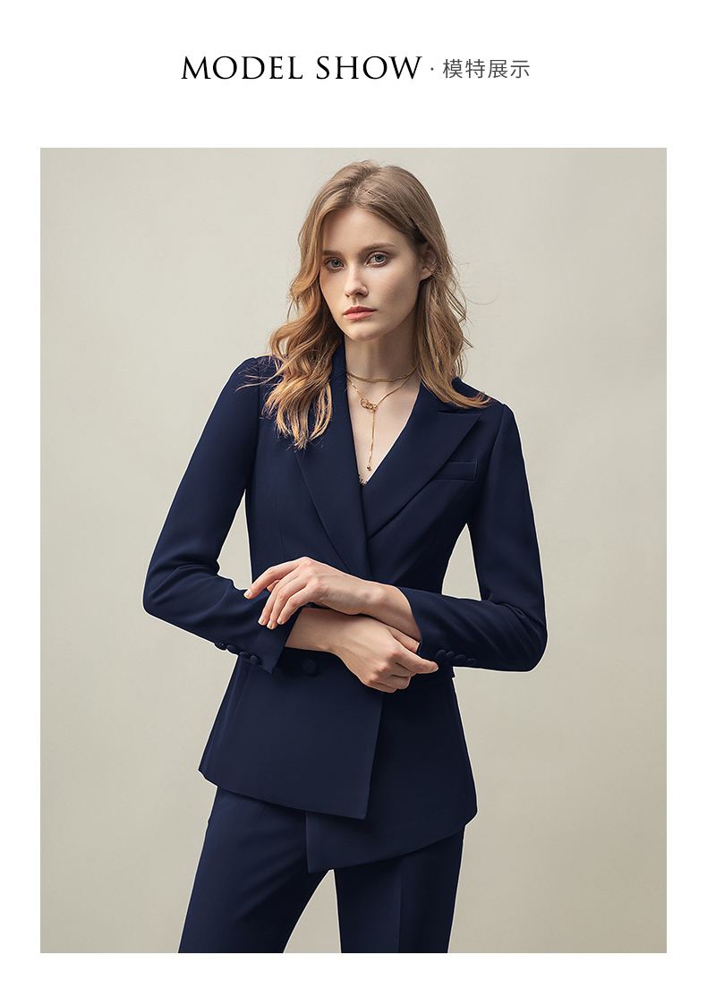 IWY/藏青色西装微喇裤套装气质女装经典西装套裤女总裁职业装工装 C11358+P31358藏青