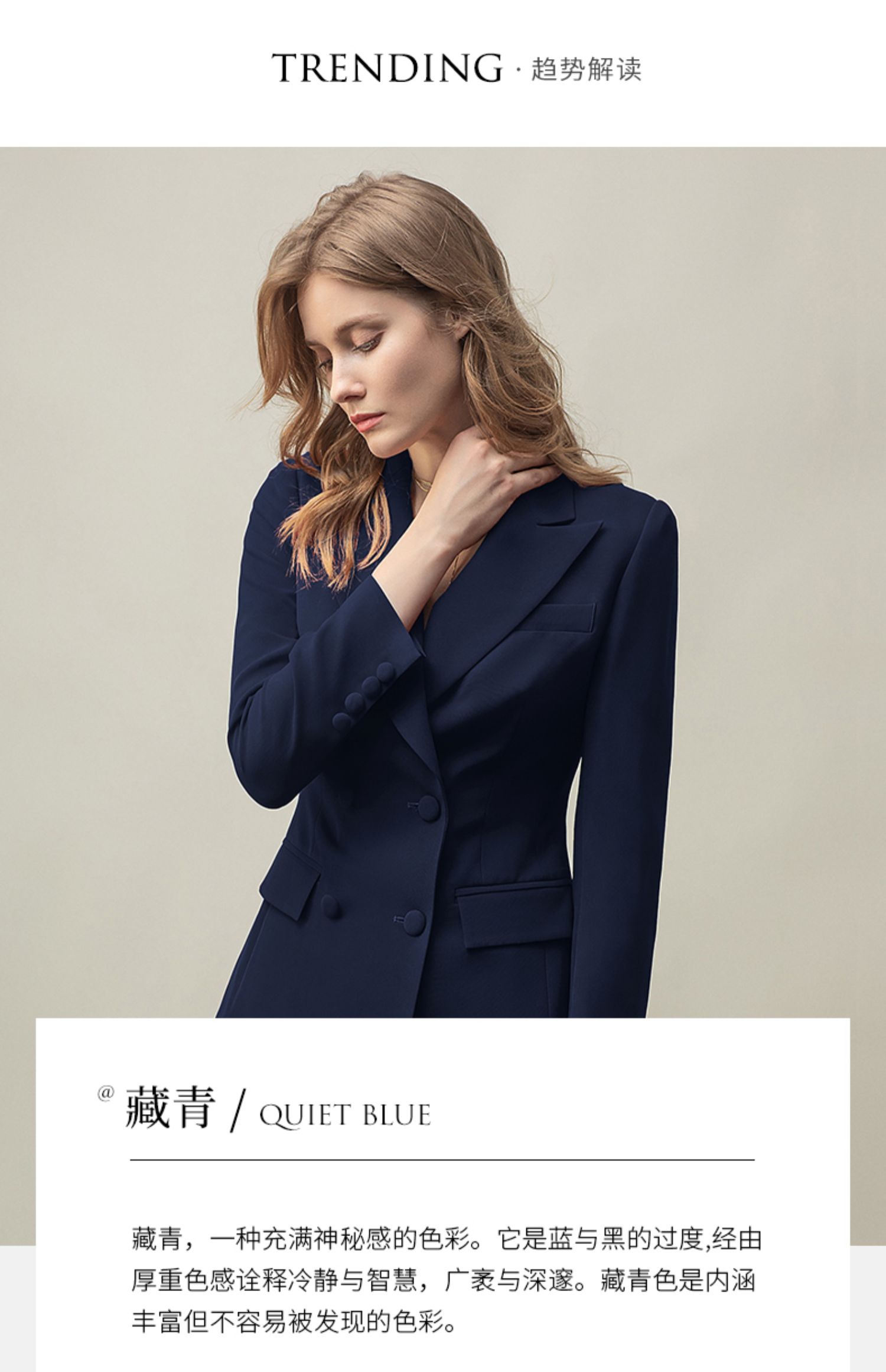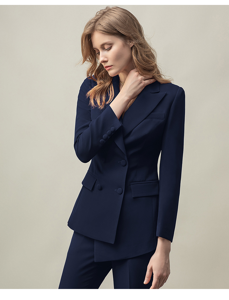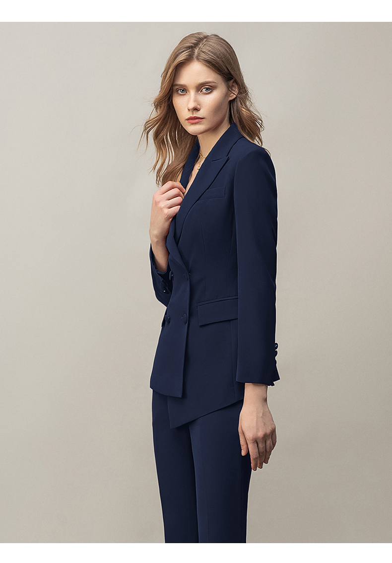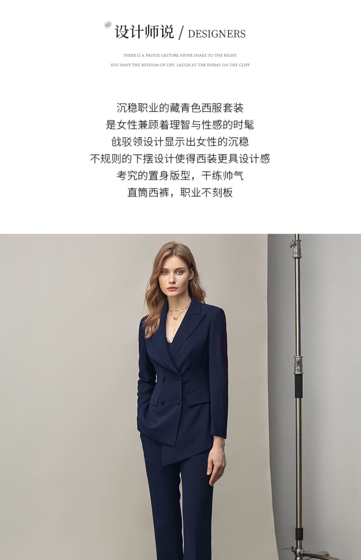 IWY/藏青色西装微喇裤套装气质女装经典西装套裤女总裁职业装工装 C11358+P31358藏青