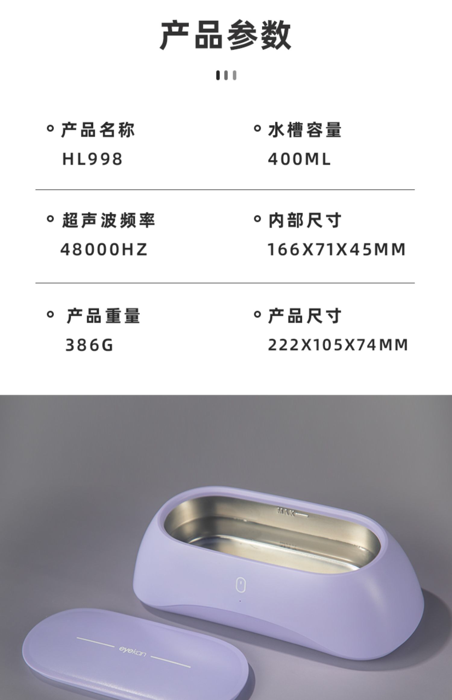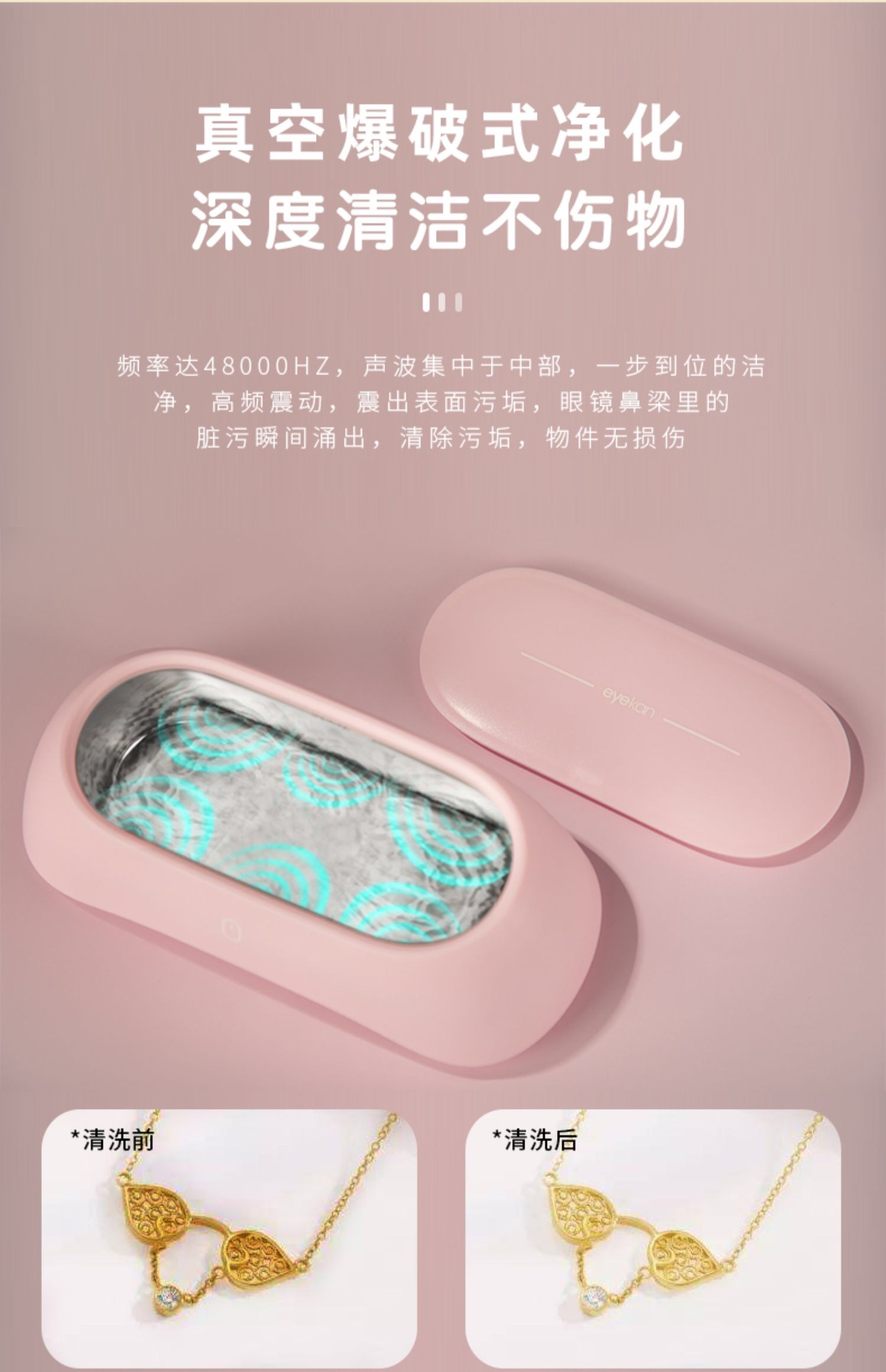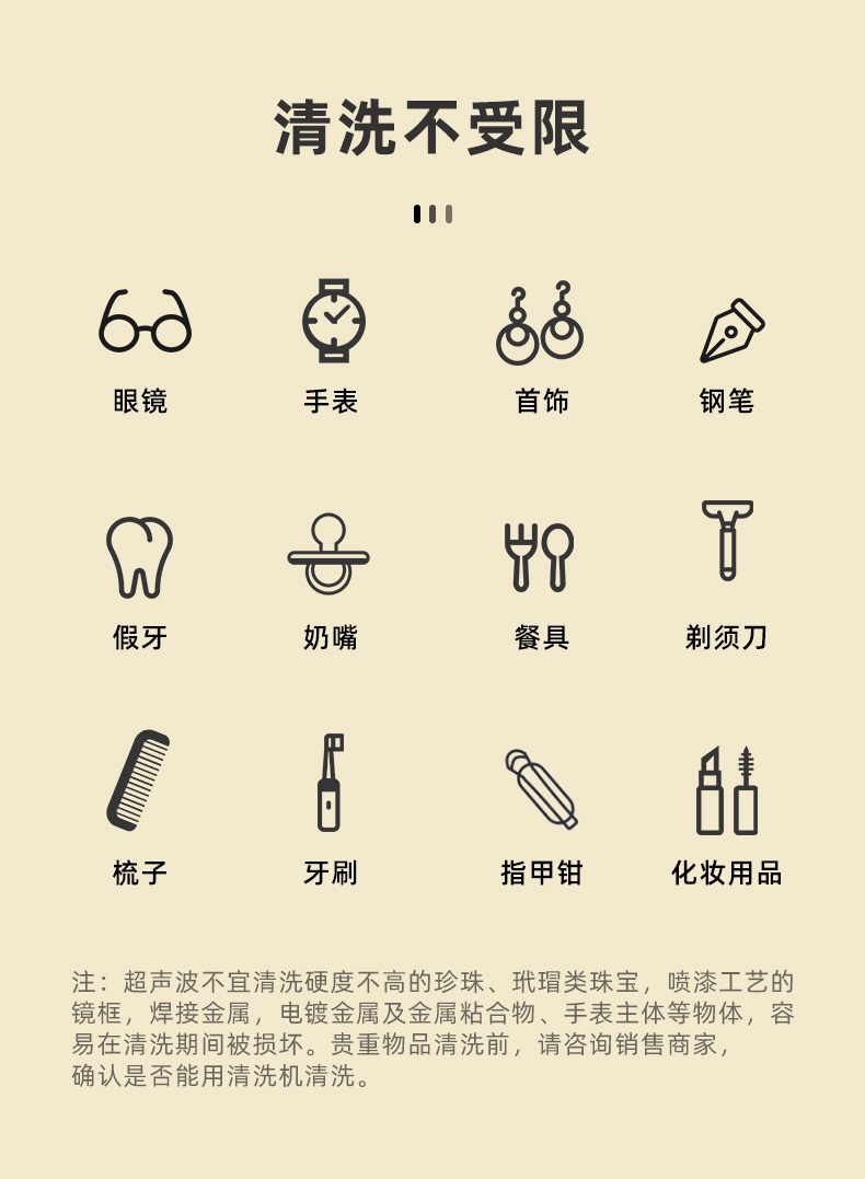 超声波深层祛垢 适用于多种物品:眼镜,首饰,手表,假牙,等