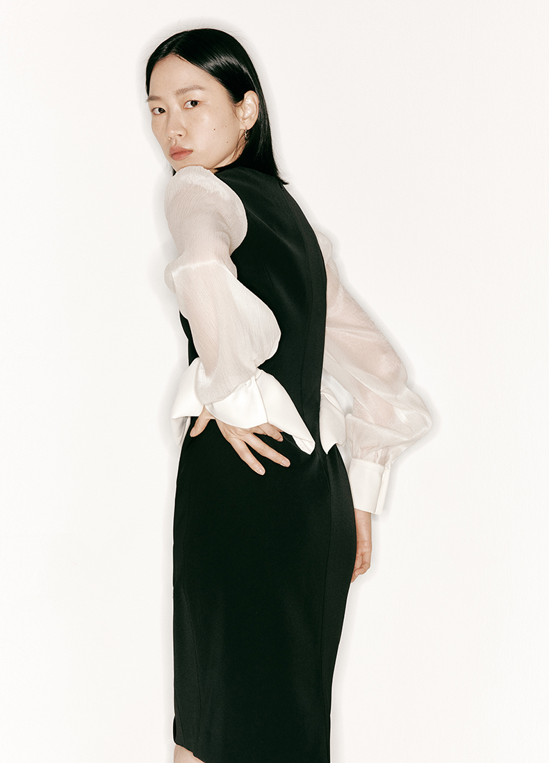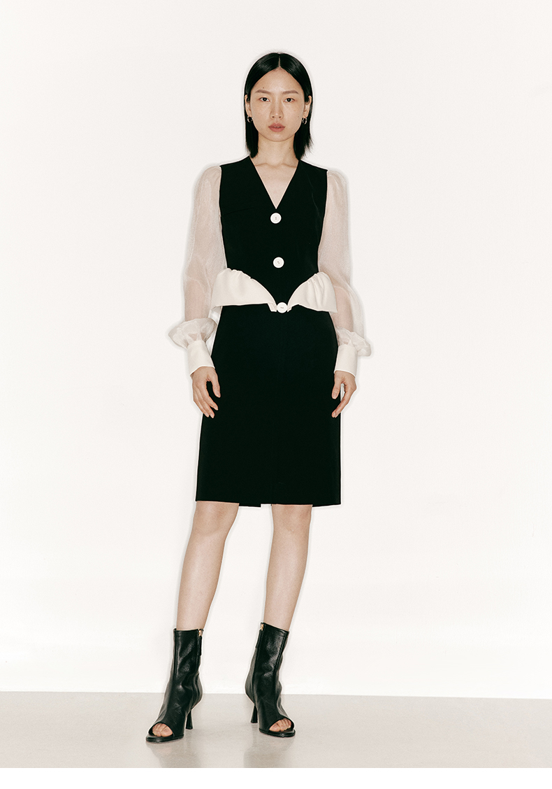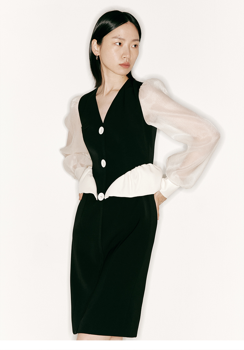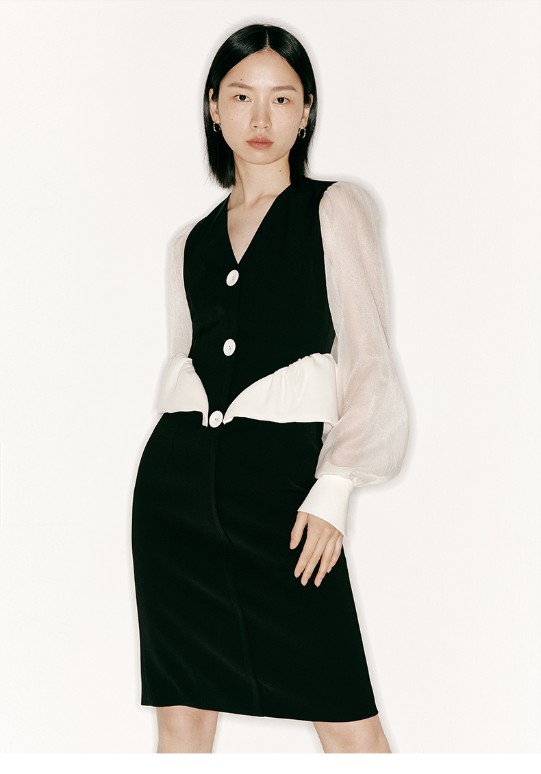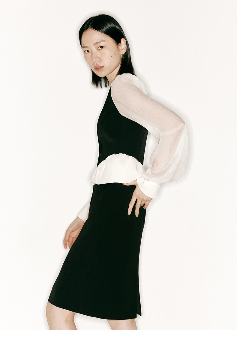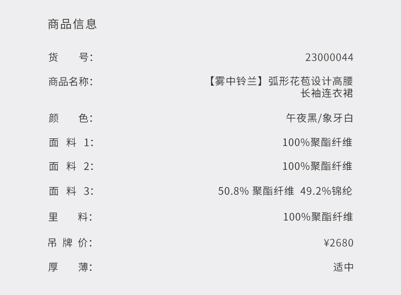 【雾中铃兰】弧形花苞设计高腰长袖连衣裙/23000044