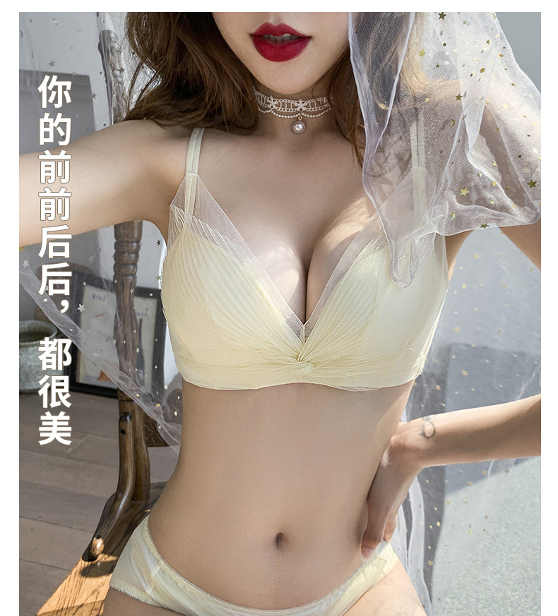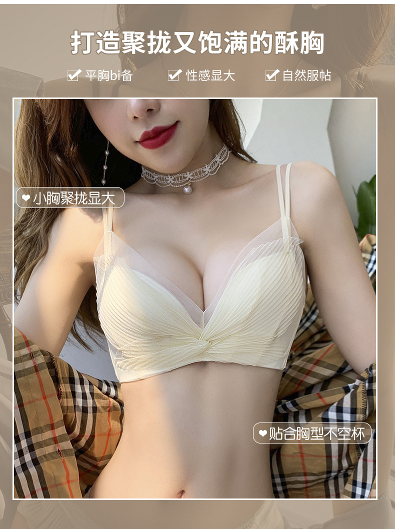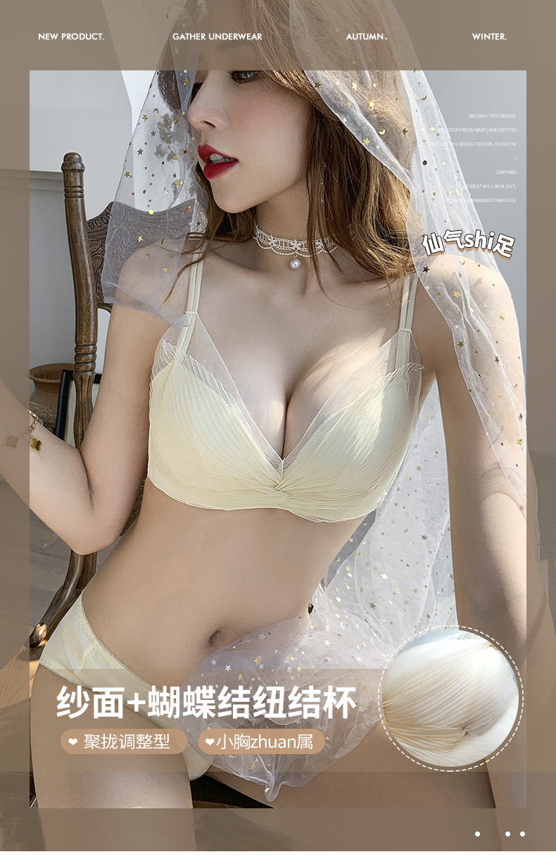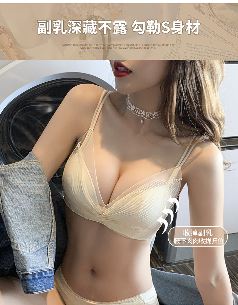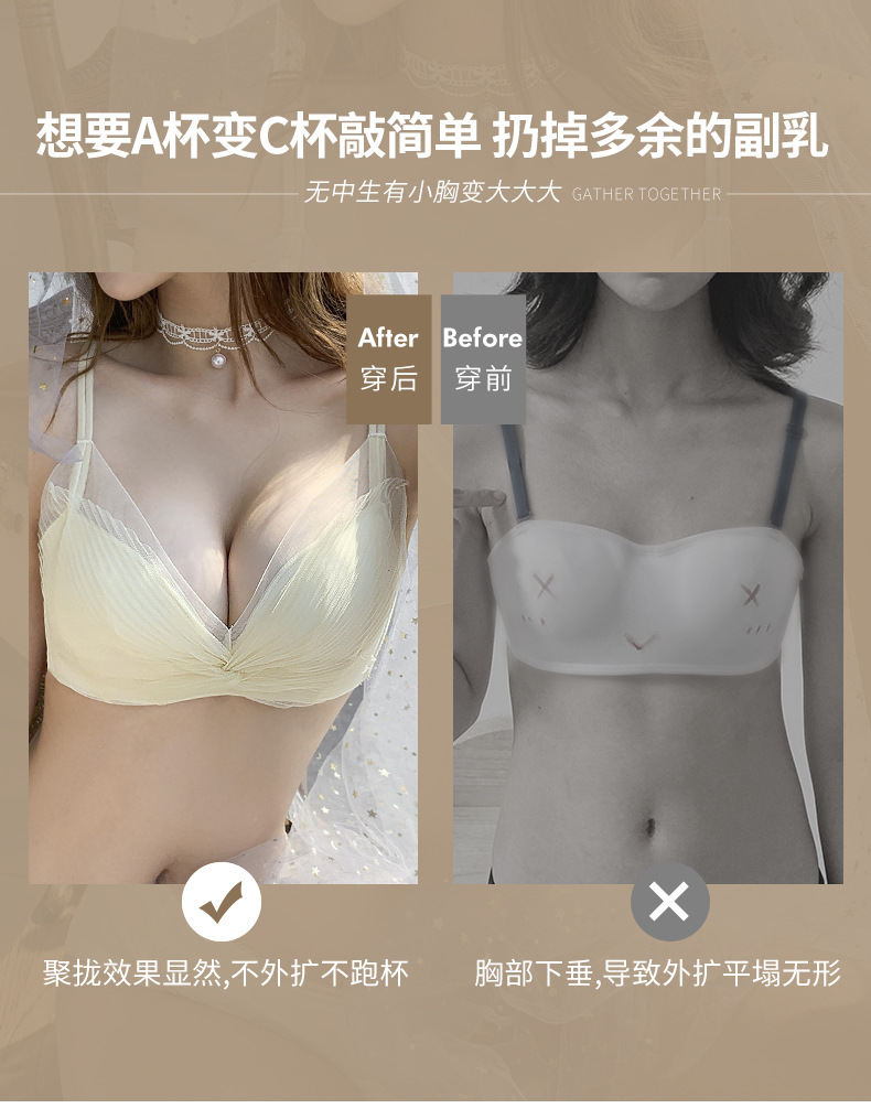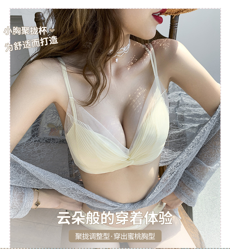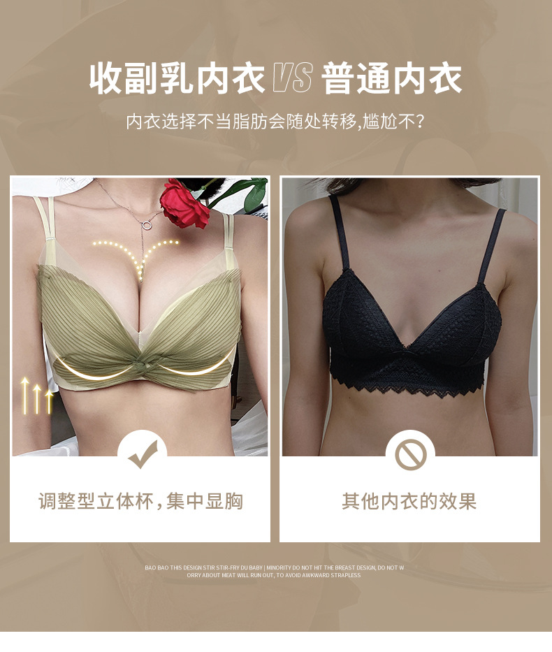 收副乳内衣女防下垂小胸衣聚拢上托蝴蝶结无钢圈调整型文胸罩套装