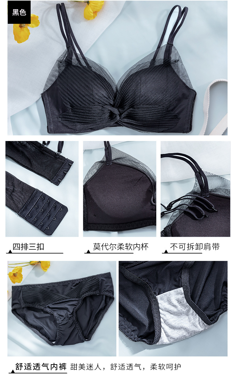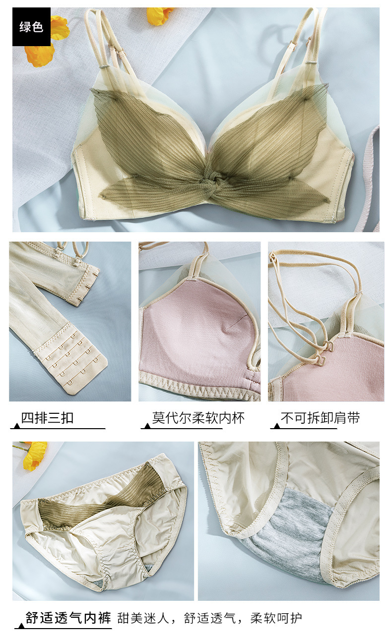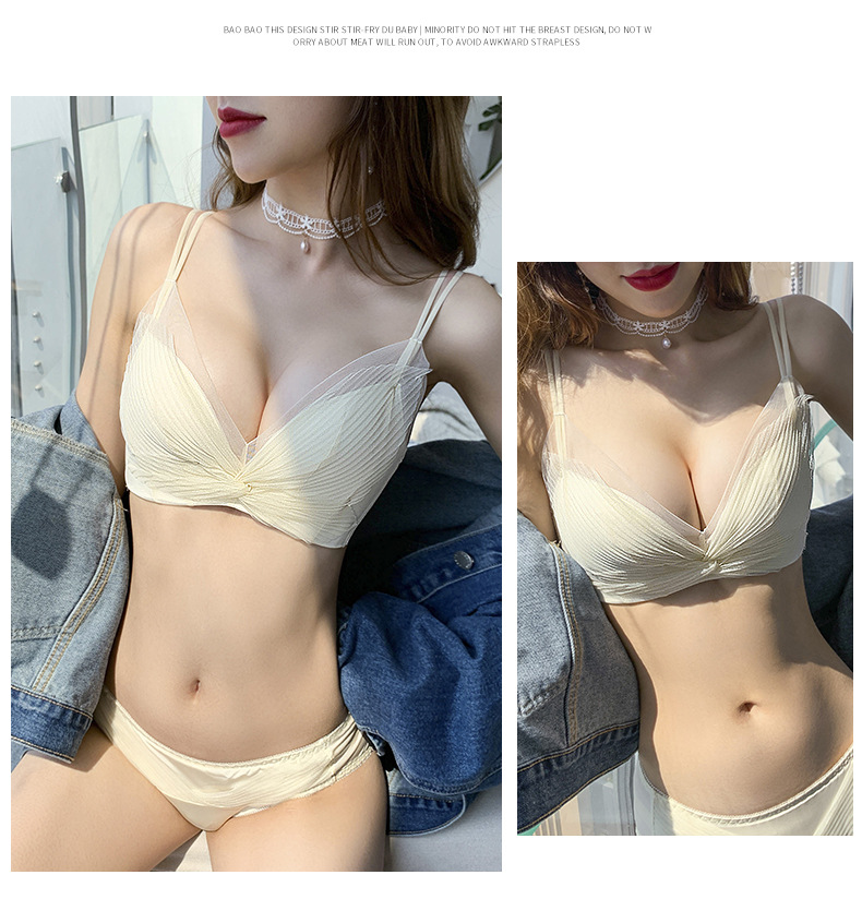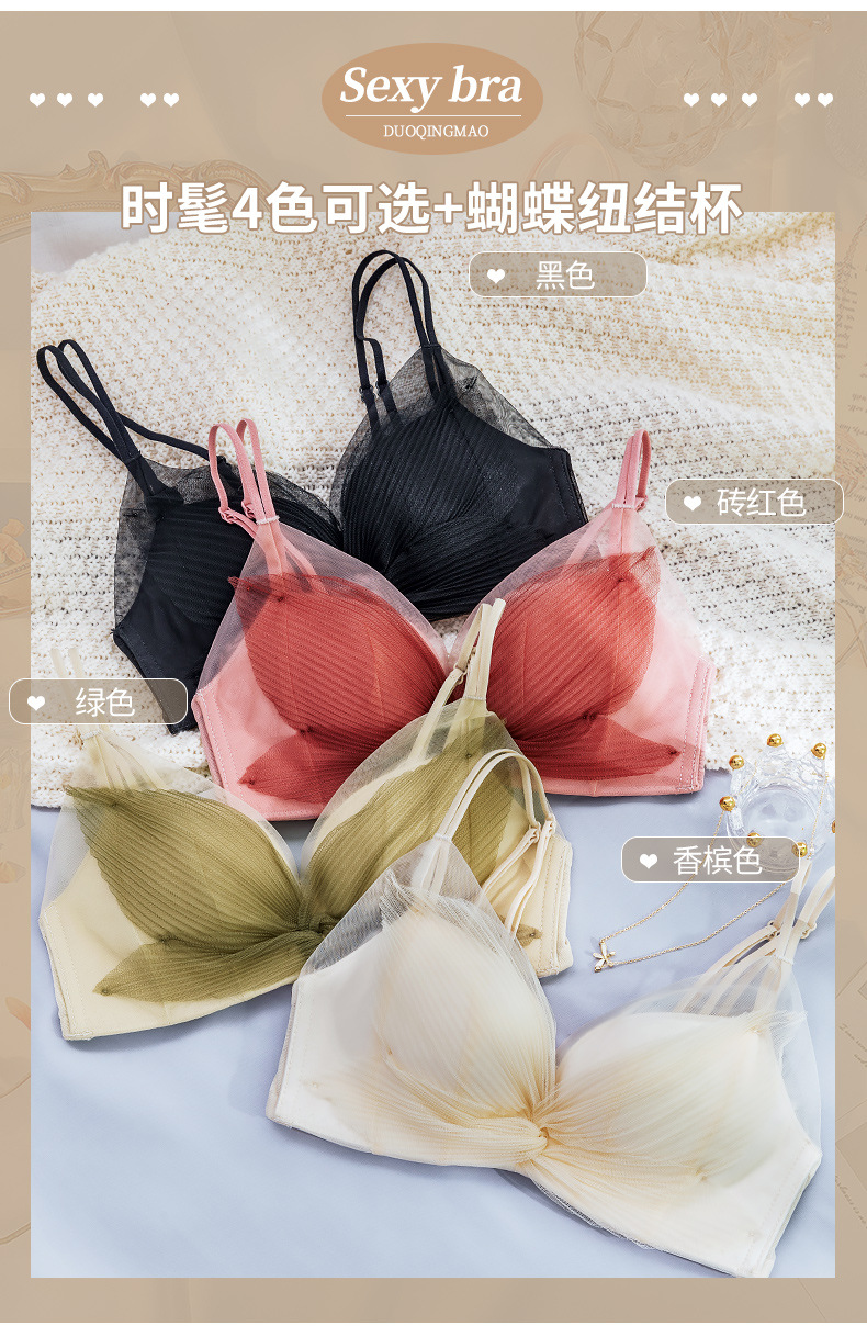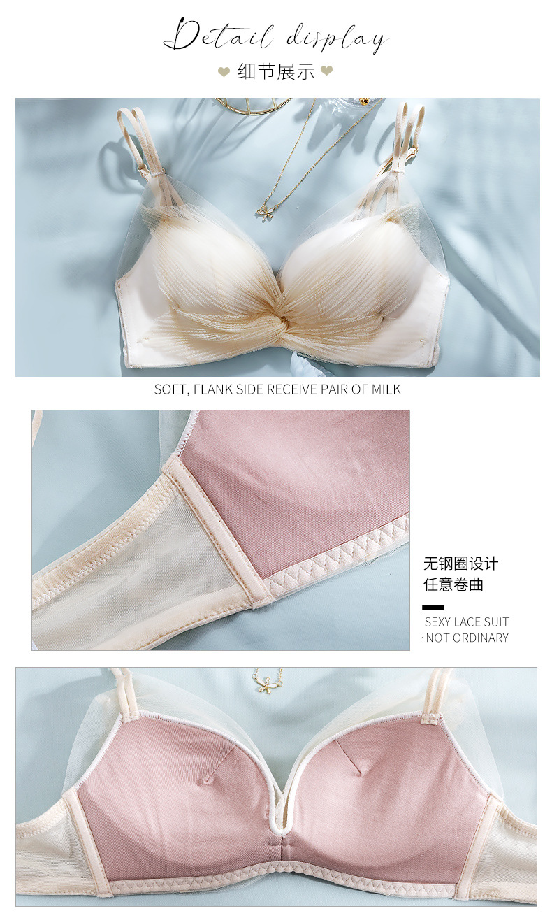 收副乳内衣女防下垂小胸衣聚拢上托蝴蝶结无钢圈调整型文胸罩套装