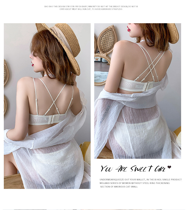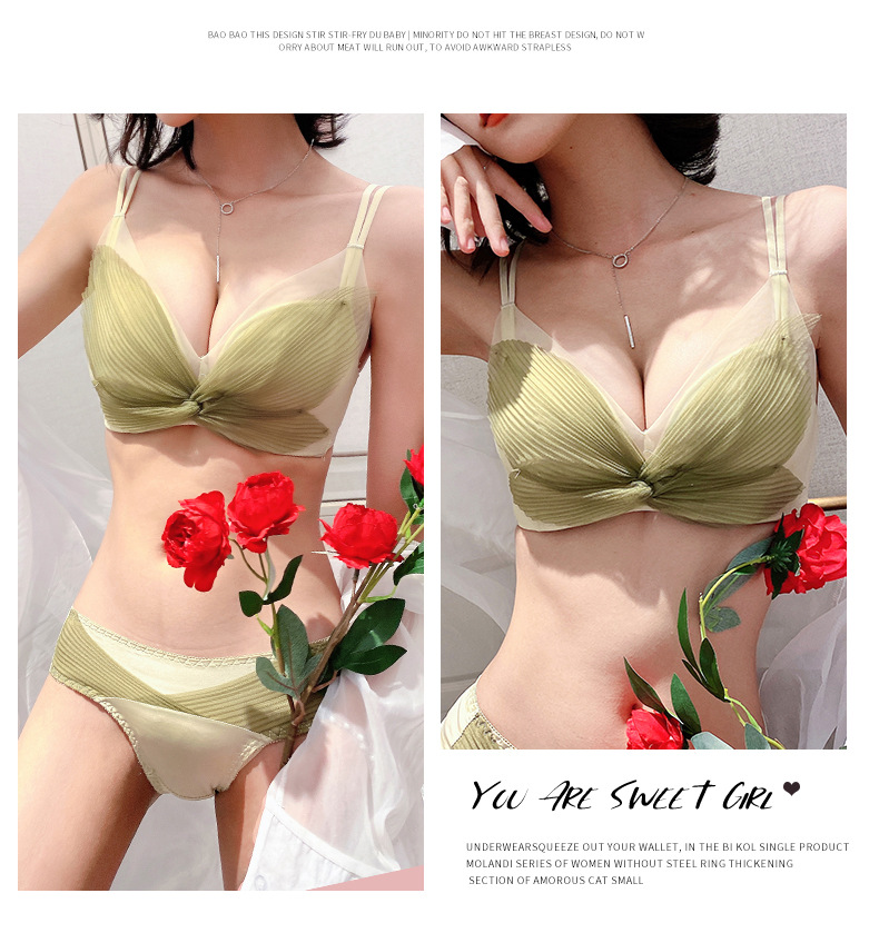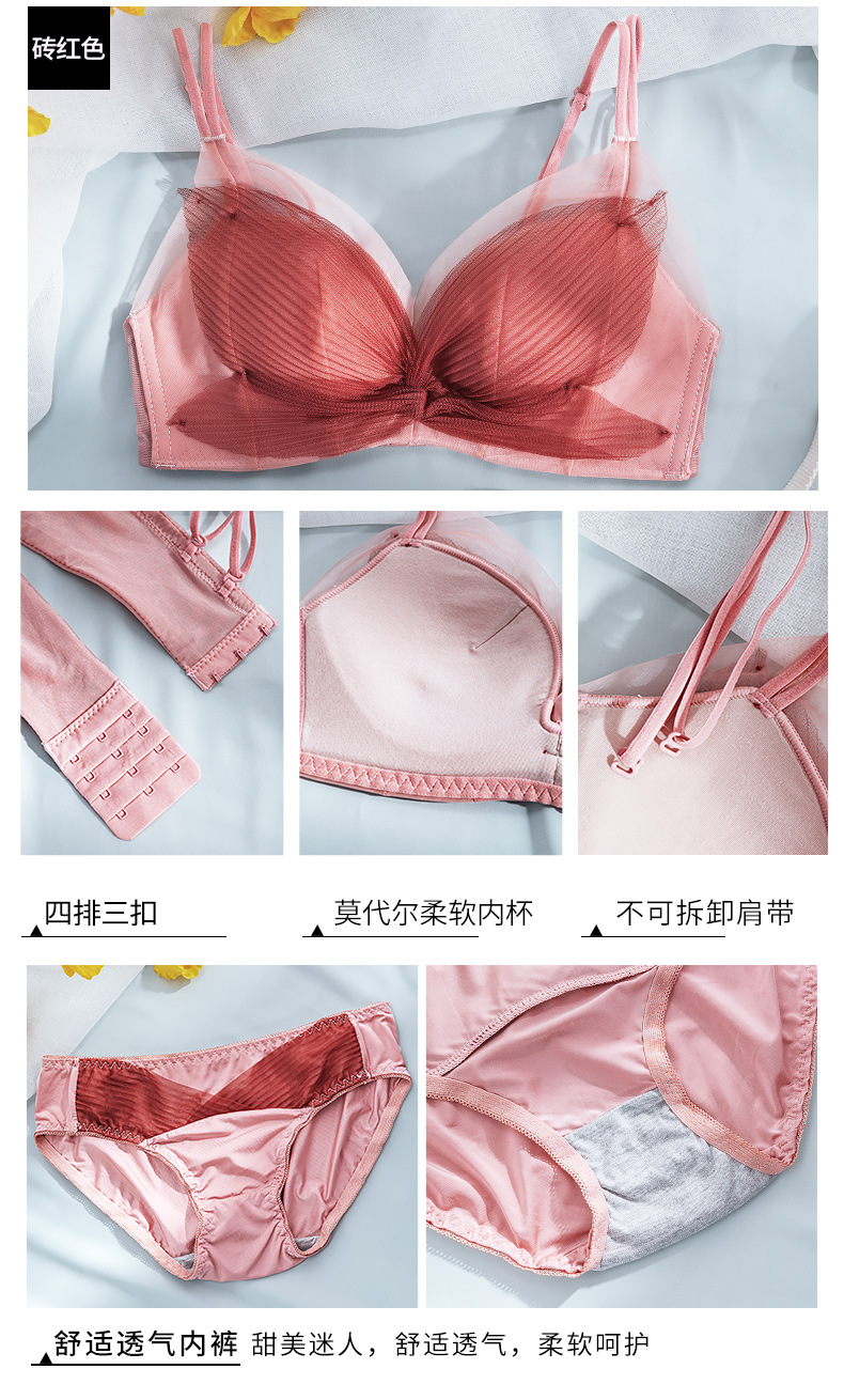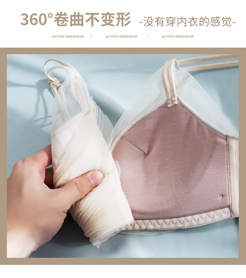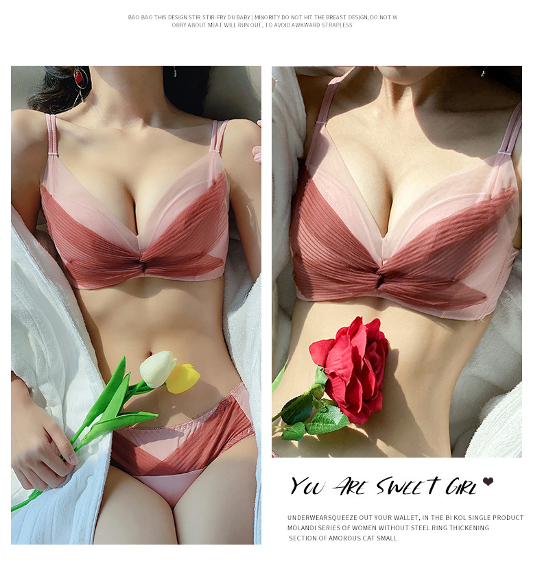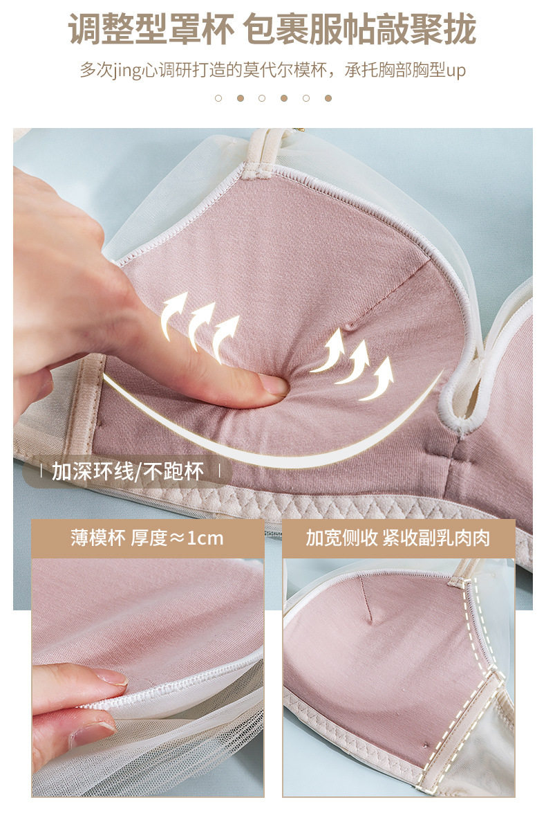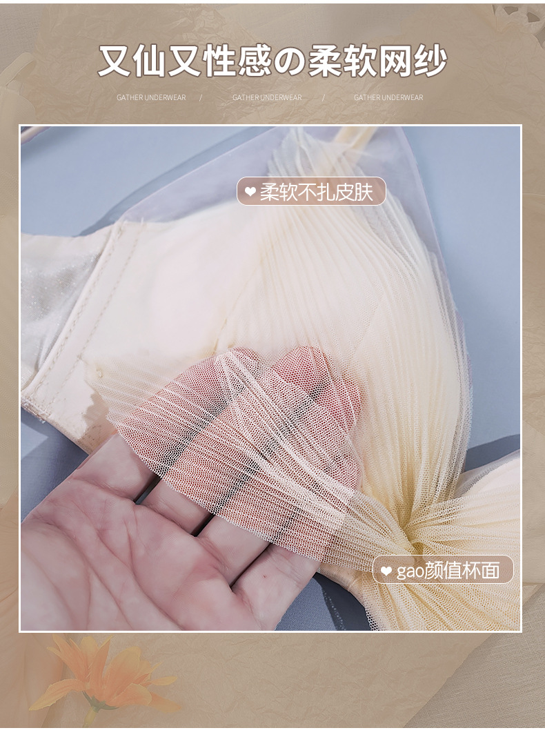 收副乳内衣女防下垂小胸衣聚拢上托蝴蝶结无钢圈调整型文胸罩套装