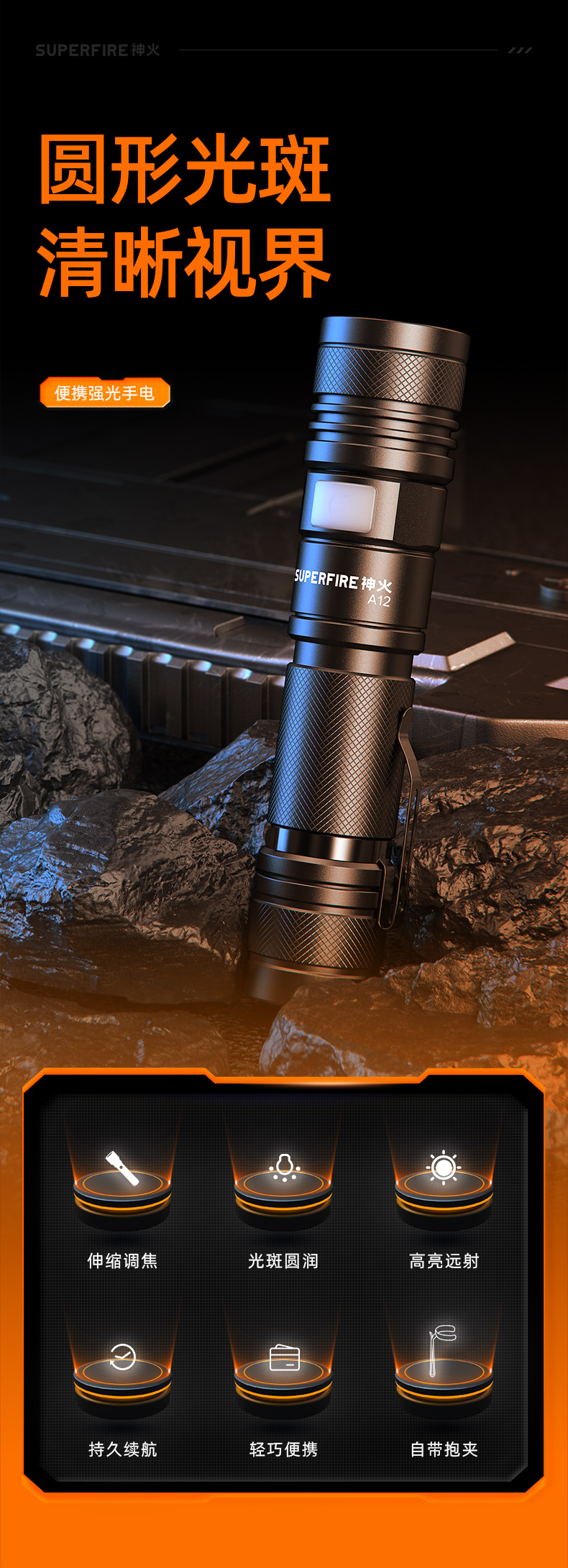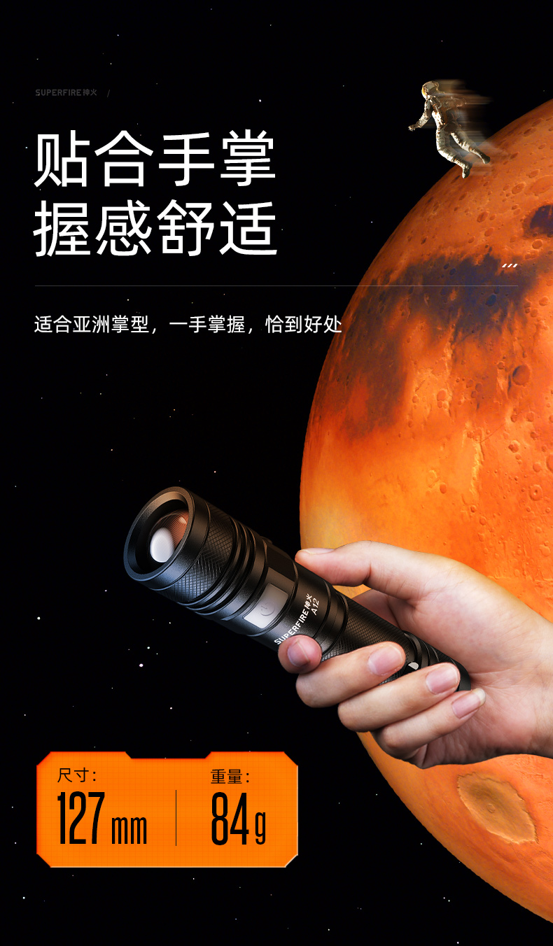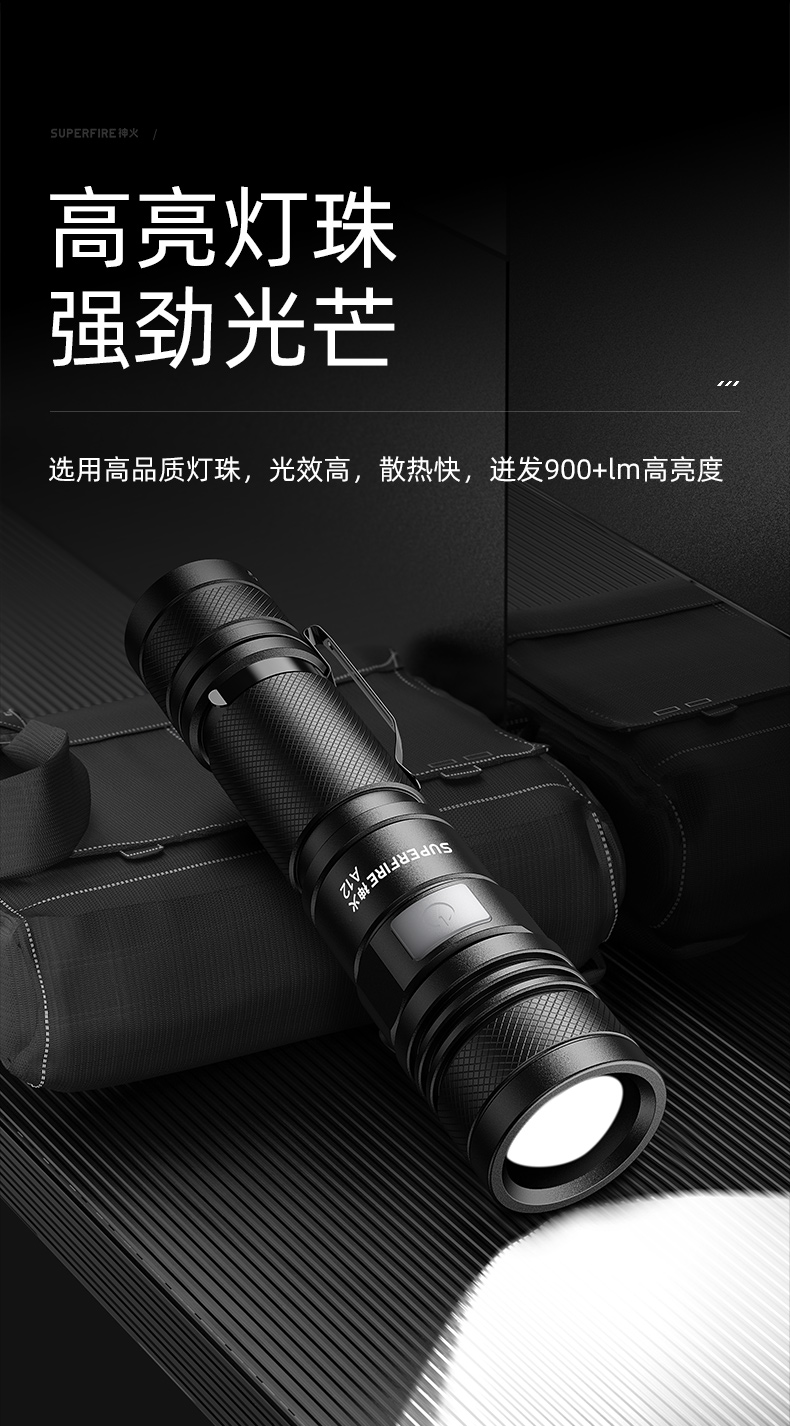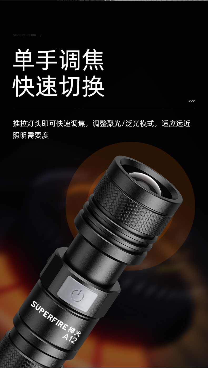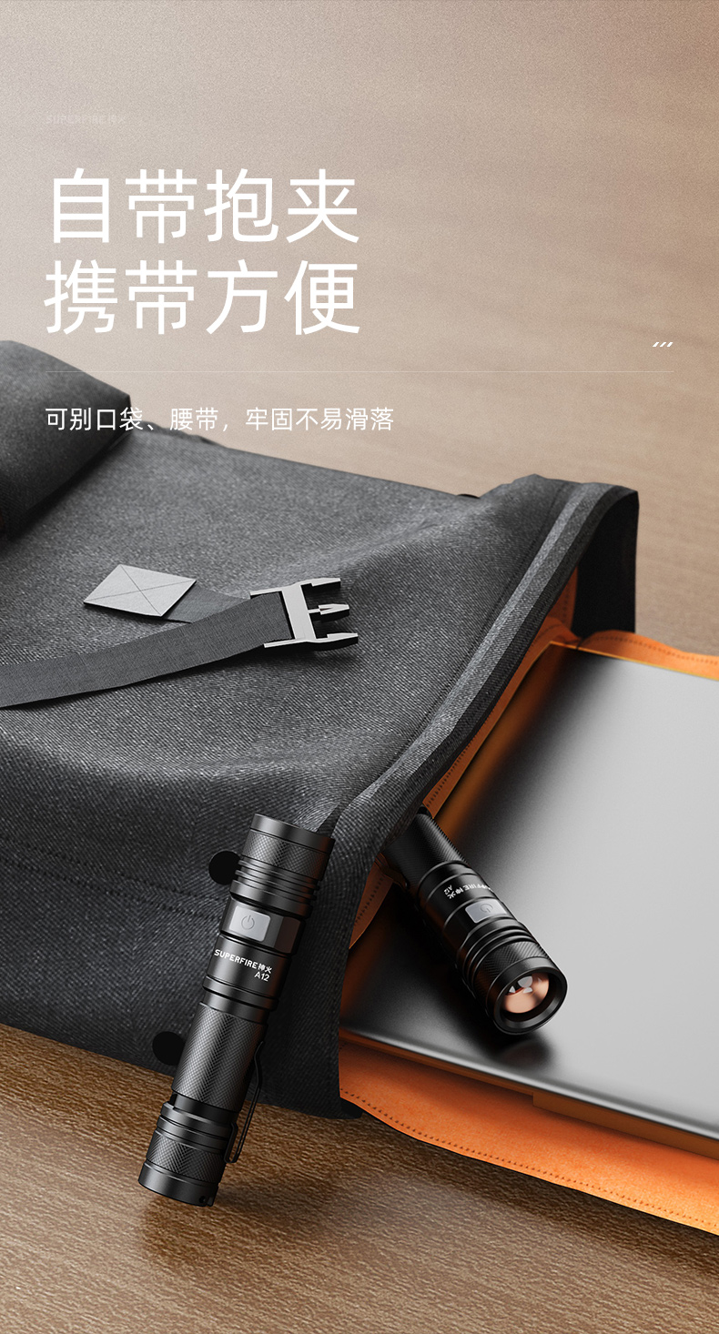 SUPERFIRE神火A12调焦手电筒强光远射小型家用充电户外便携迷你变焦手电