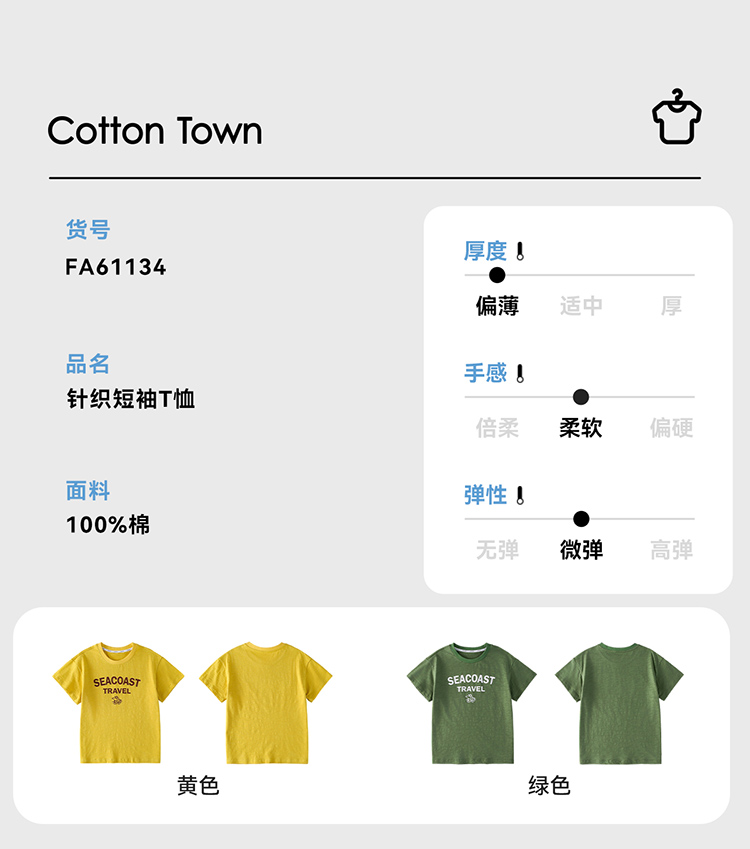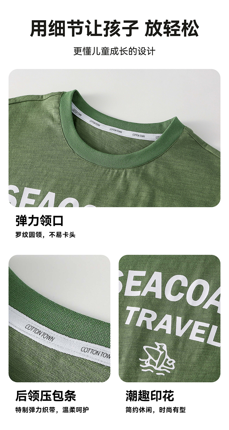 【10A抗菌纯棉】棉花堂夏款休闲印花竹节棉儿童短袖T恤 ---FA61134