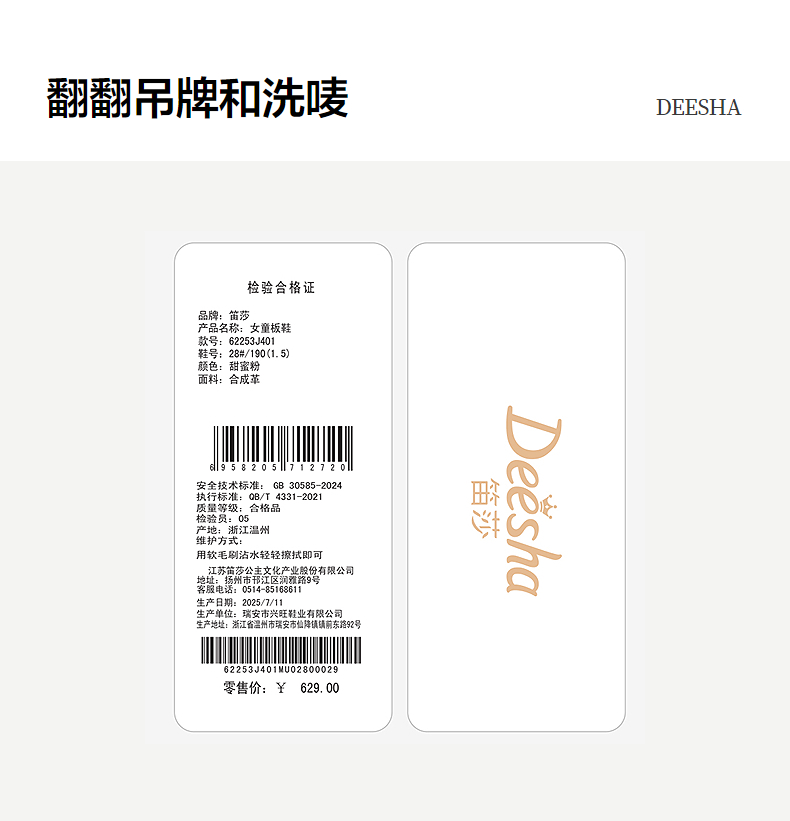笛莎Deesha 女童童鞋2025秋新款板鞋