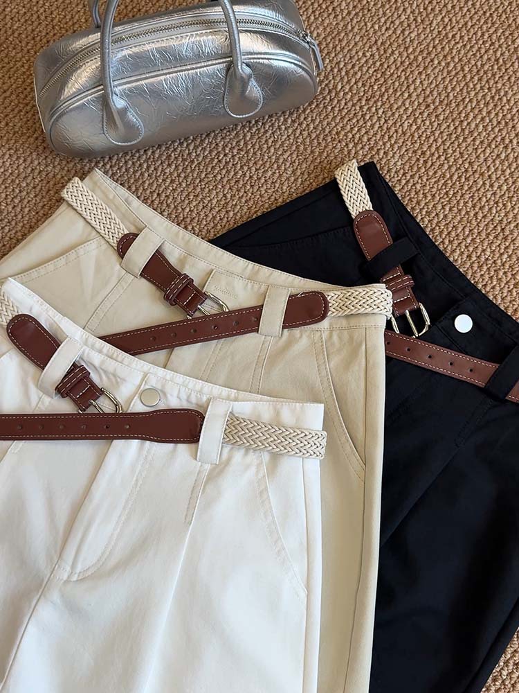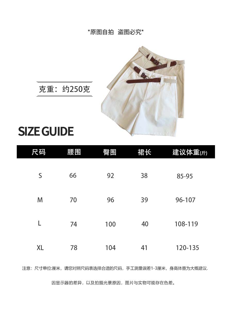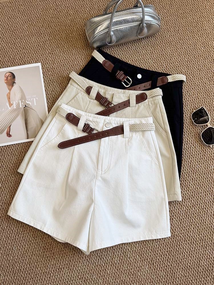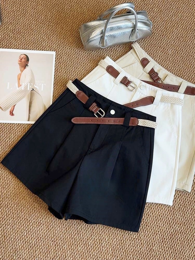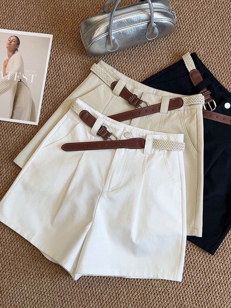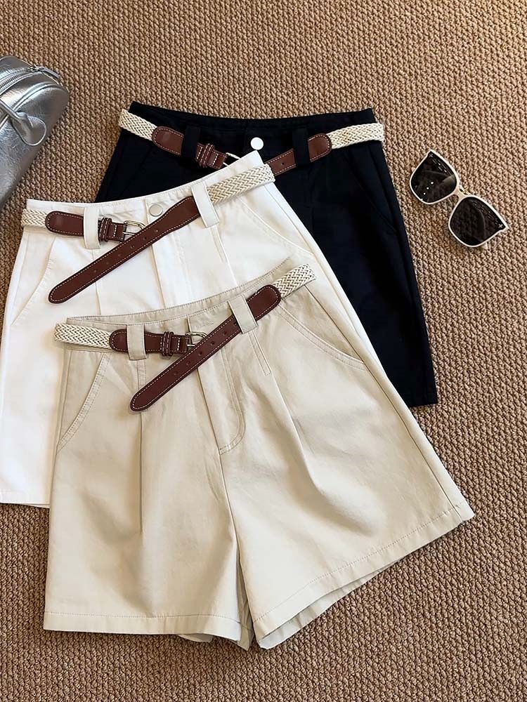 【送腰带气质显瘦棉短裤】夏季新款 百搭休闲阔腿裤高腰骑士裤