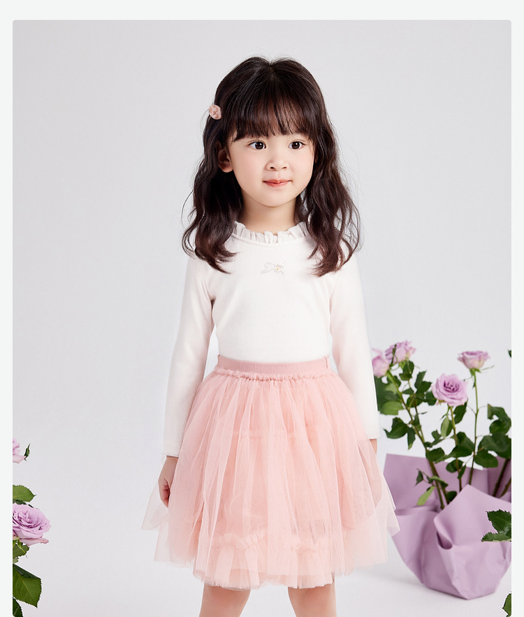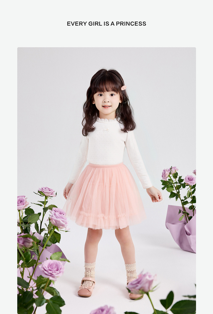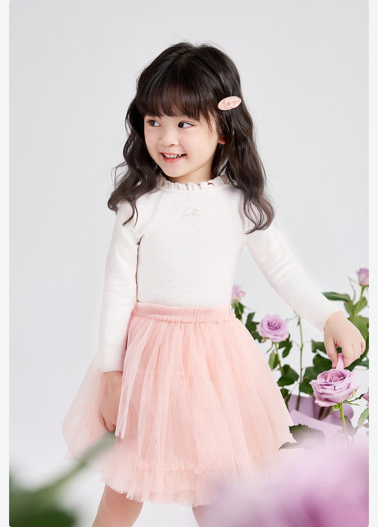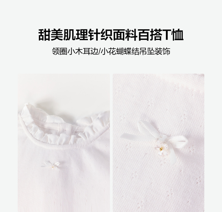 笛莎Deesha 童装女童T恤2026春新款甜美肌理针织面料百搭T恤