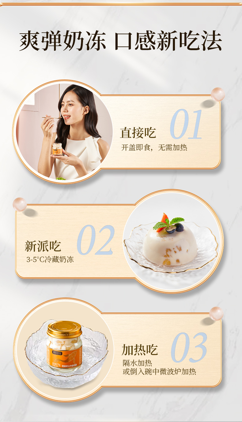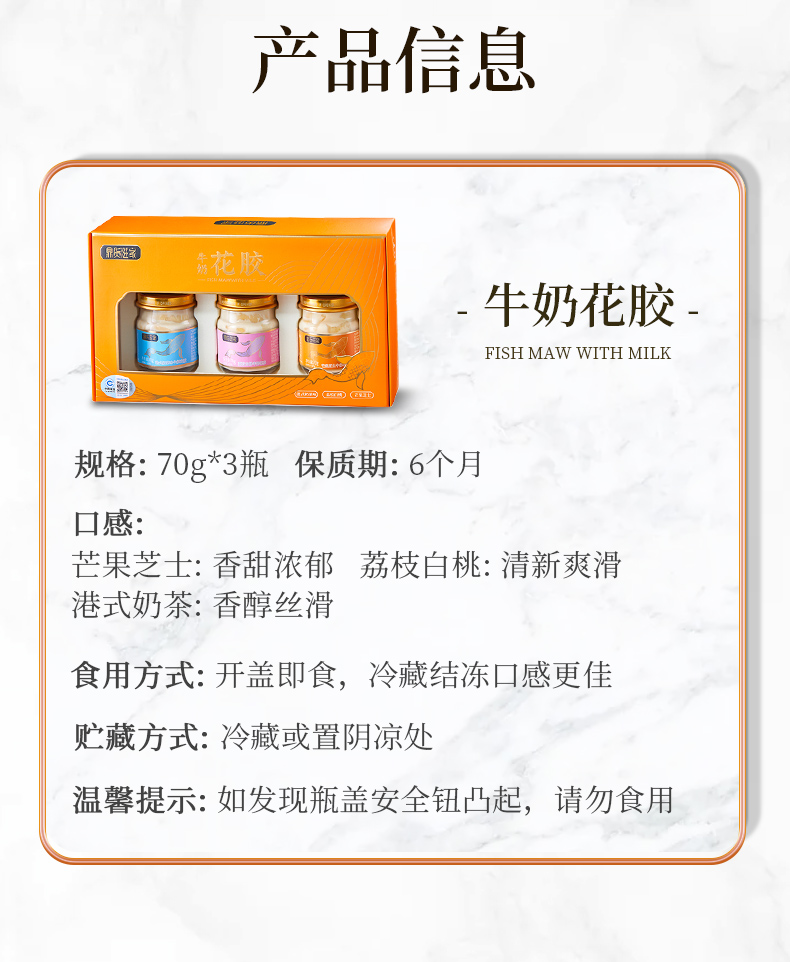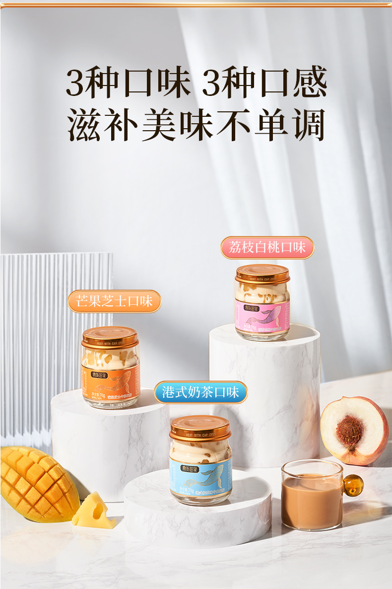 牛奶炖煮的即食牛奶花胶,嚼着吃的胶原蛋白,70g*3瓶/盒