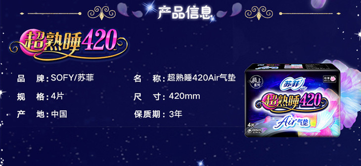 苏菲超熟睡棉柔表层极薄夜用卫生巾42cm4片