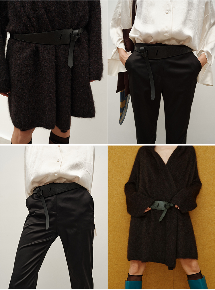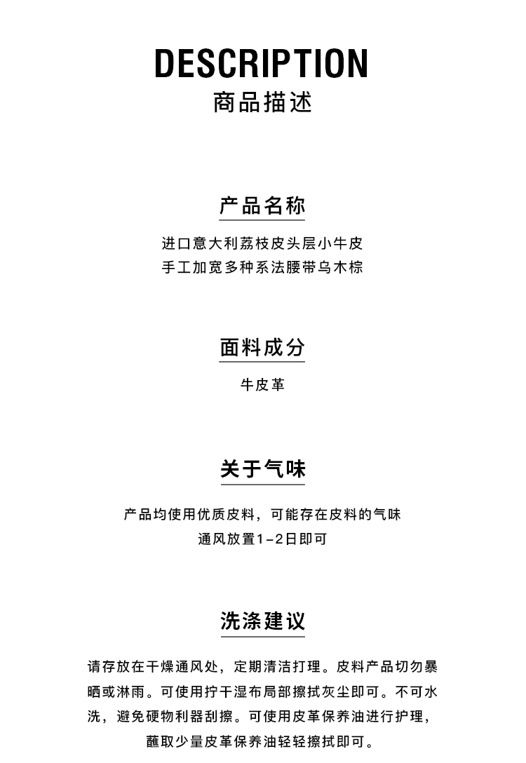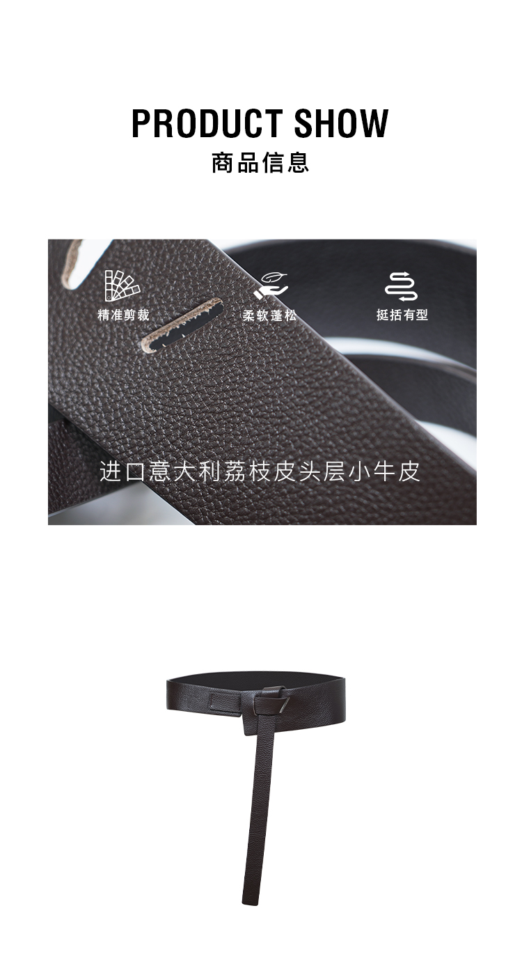 HIDEMI 进口意大利荔枝皮头层小牛皮手工加宽多种系法腰带 乌木棕