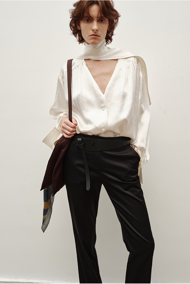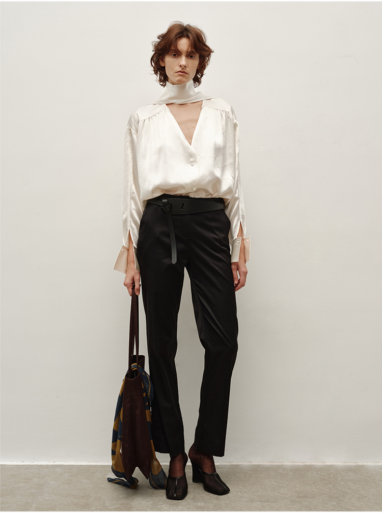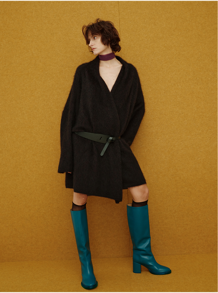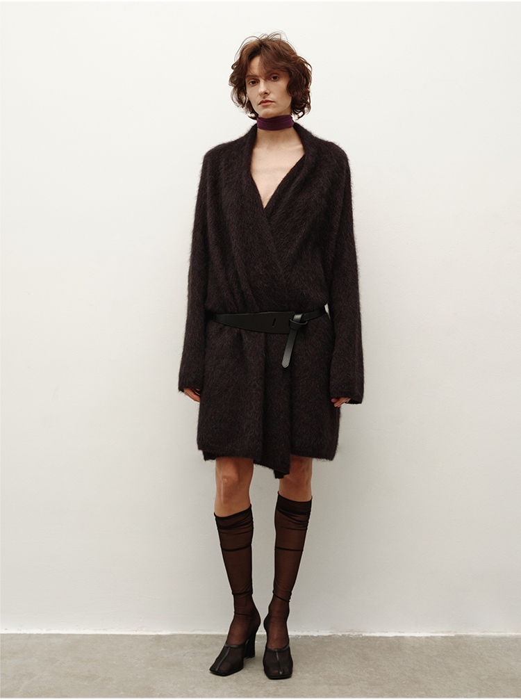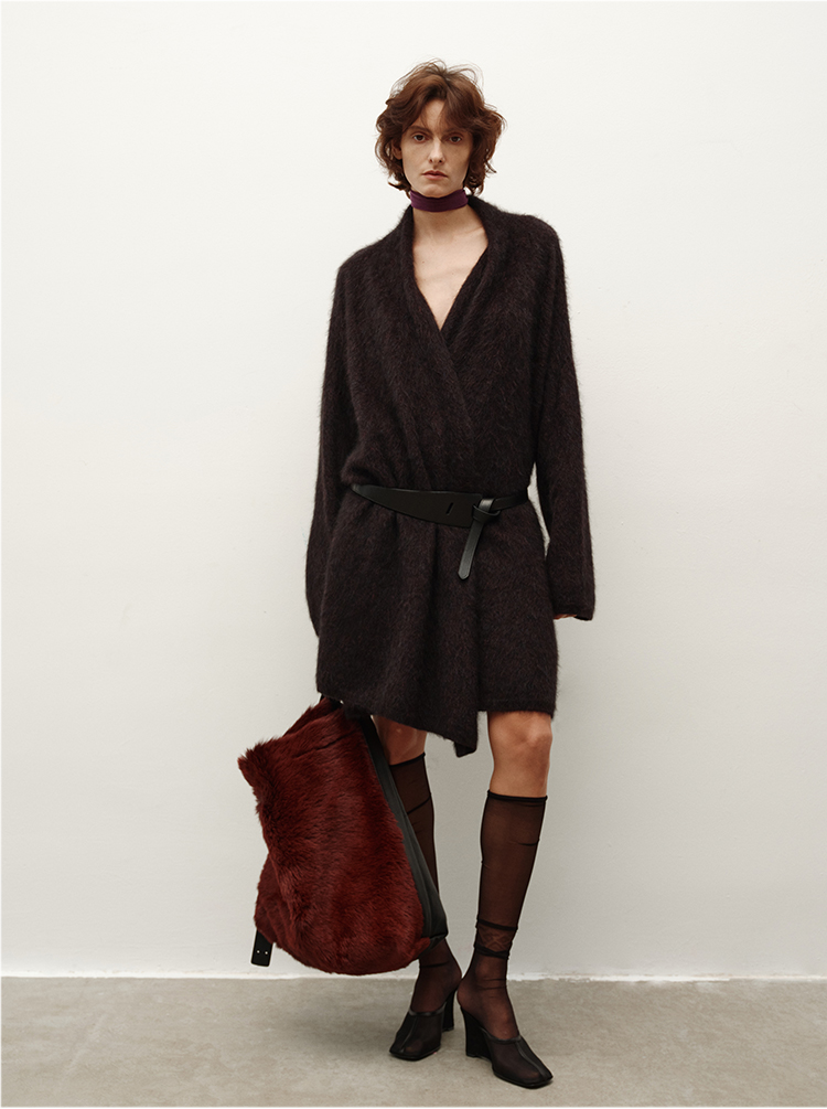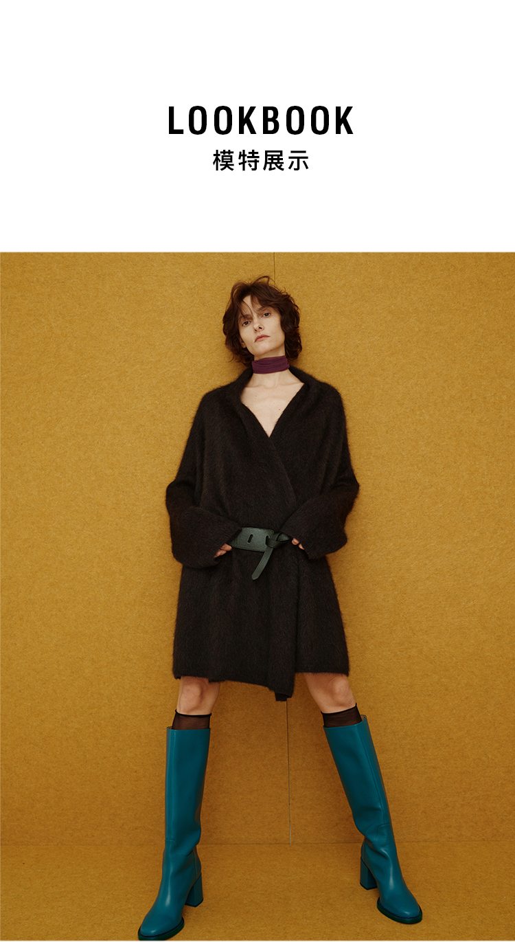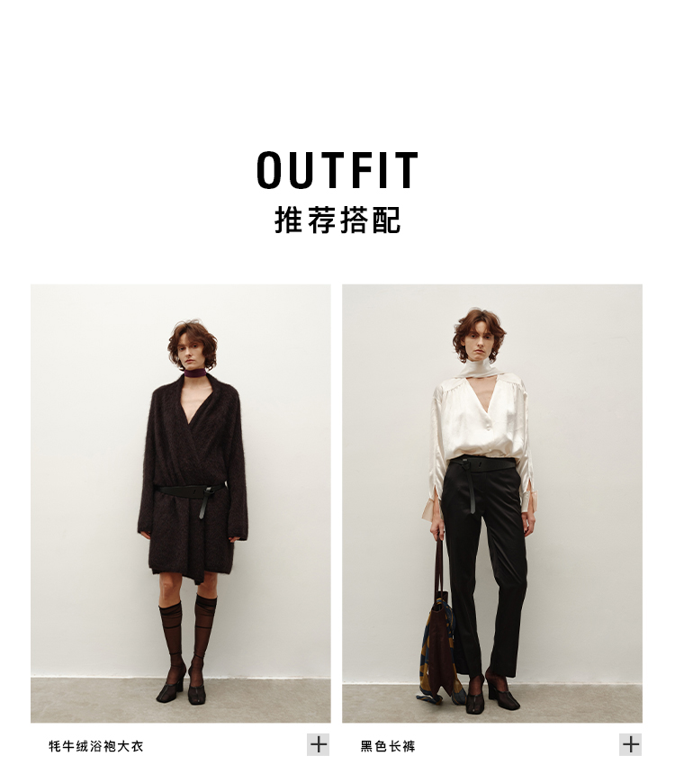HIDEMI 美利奴超细羊毛立体交叉打结款V领修身毛衣 原白色/深摩卡/黑色