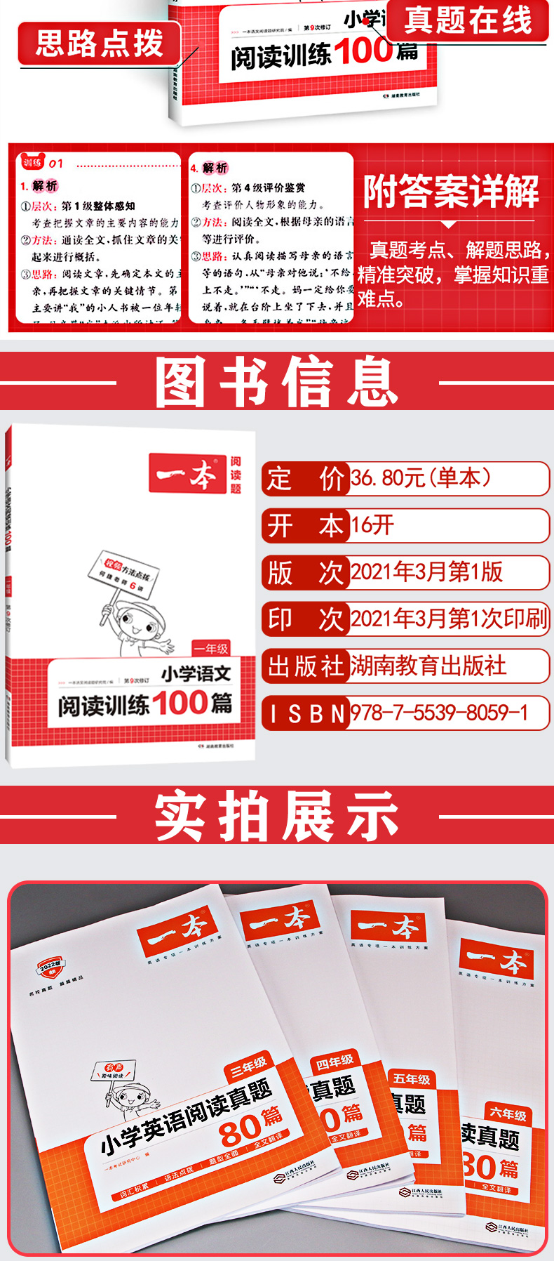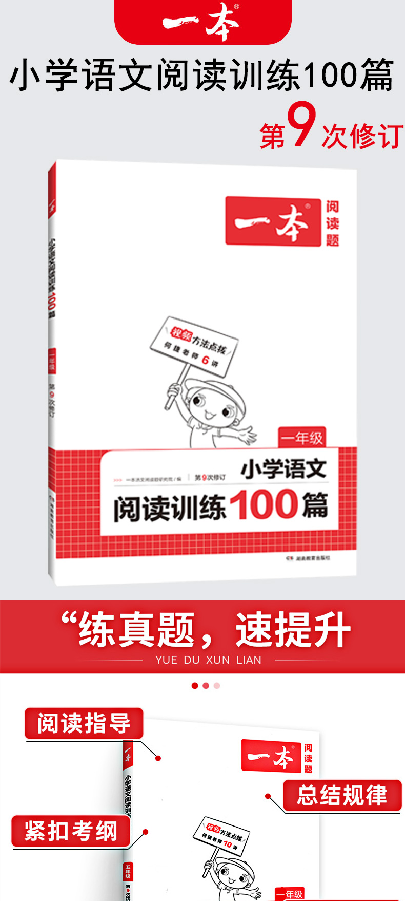 2022新版一本语文阅读题小学一年级阅读训练100篇第9次修订1年级上册下册含视频方法点拨何捷老师6讲阅读真题训练
