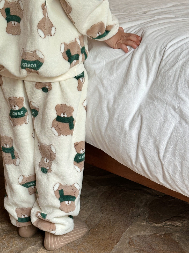 款式一:围巾熊 温暖陪伴宝贝每一个甜梦时刻 以萌萌的围巾熊图案装饰 仿佛给宝贝带来了一个贴心的小伙伴 法兰绒的柔软亲肤 就像小熊的拥抱,让宝贝活力满满