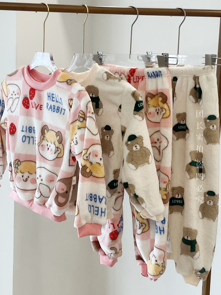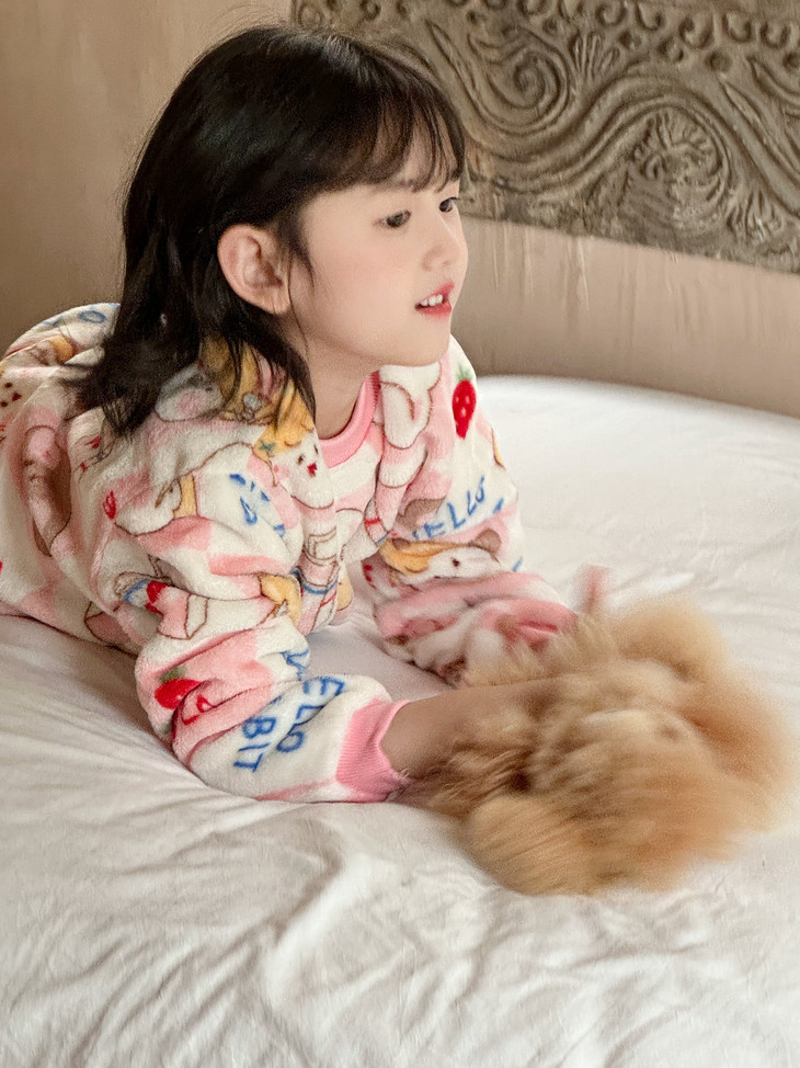 超软乎超厚实的法兰绒家居服 绝对绝对冻不到娃系列‼️ ⚠️一套上衣➕裤子只要💰49.9起! 都是非常耐看的糖果色系 面料柔软贴肤 上身真的太舒服🉑️ 小模特实拍,超可爱,软软糯糯~
