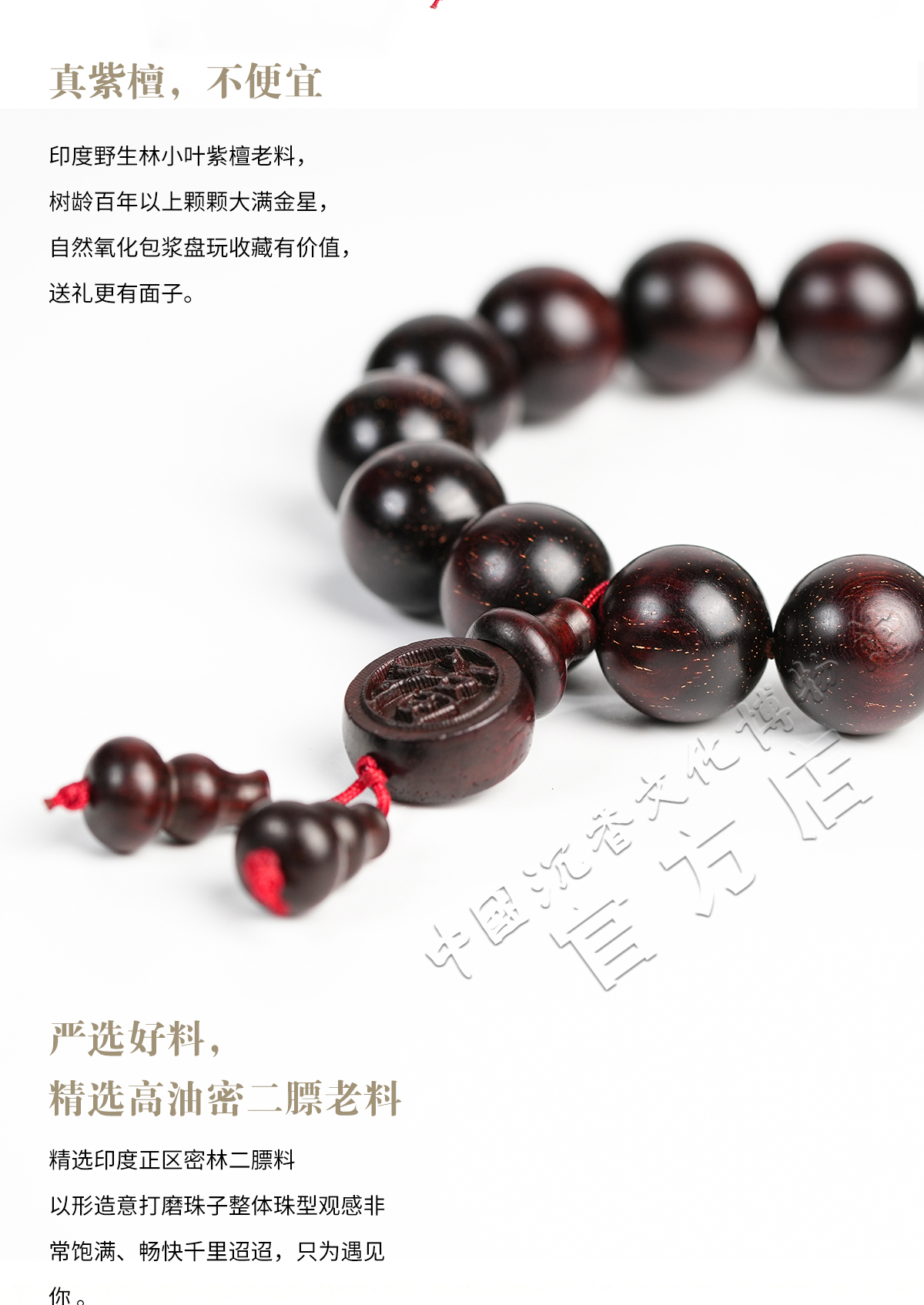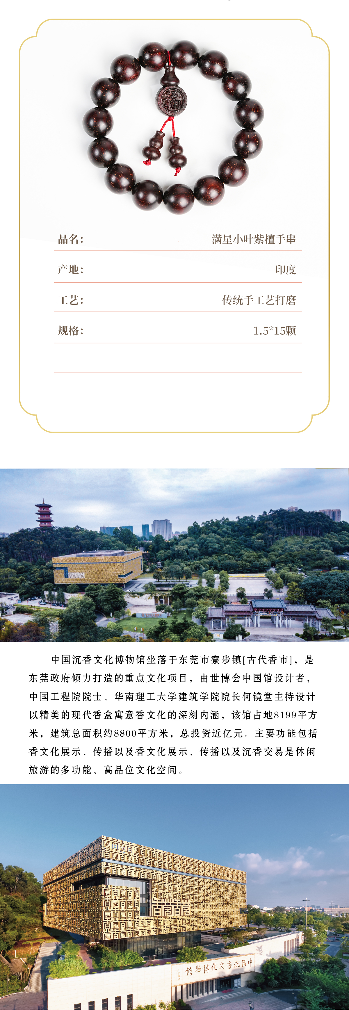【中国沉香文化博物馆】小叶紫檀15mm*15颗 满星手串