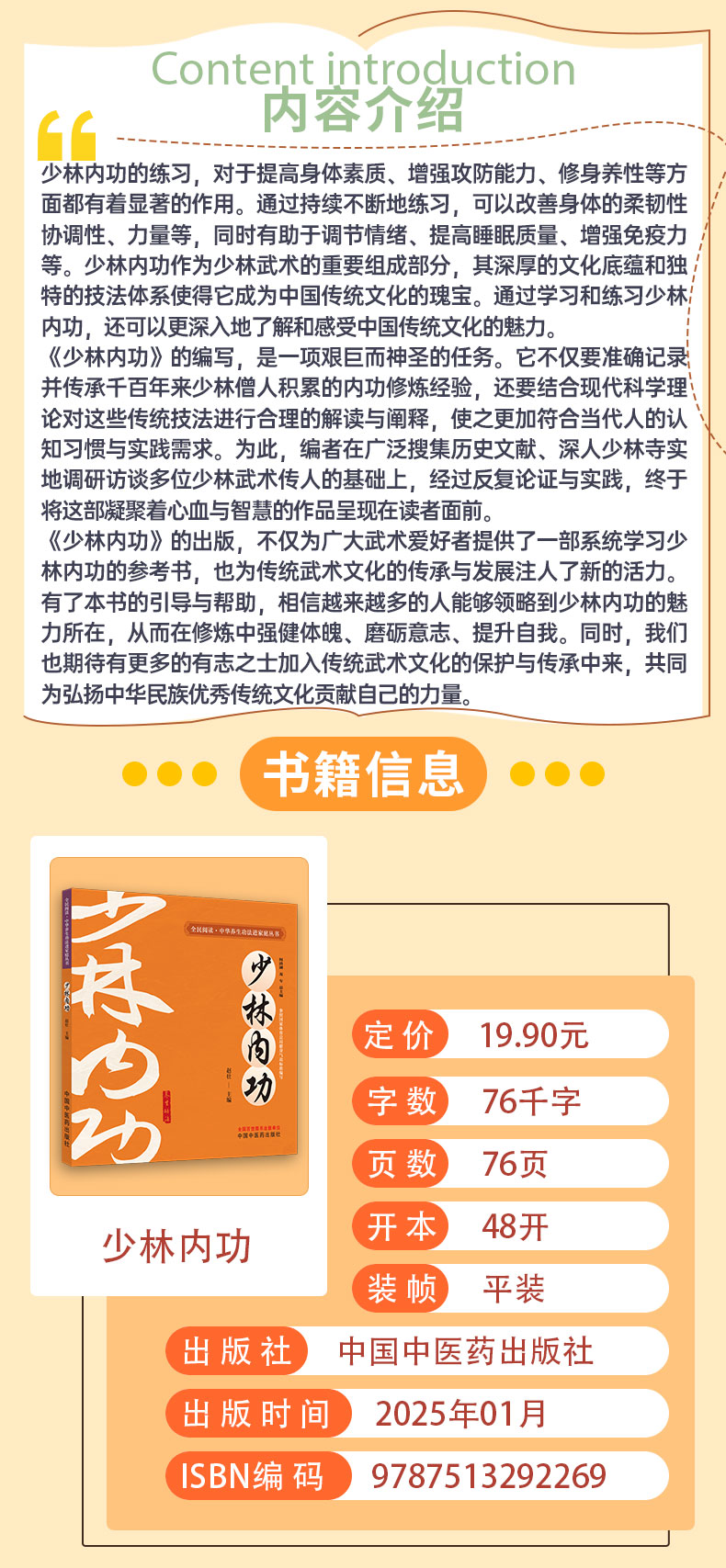 少林内功 全民阅读中华养生功法进家庭丛书 赵壮 详细介绍了12种中华传统养生功法的功法概述技术要领注意事项等中国中医药出版社