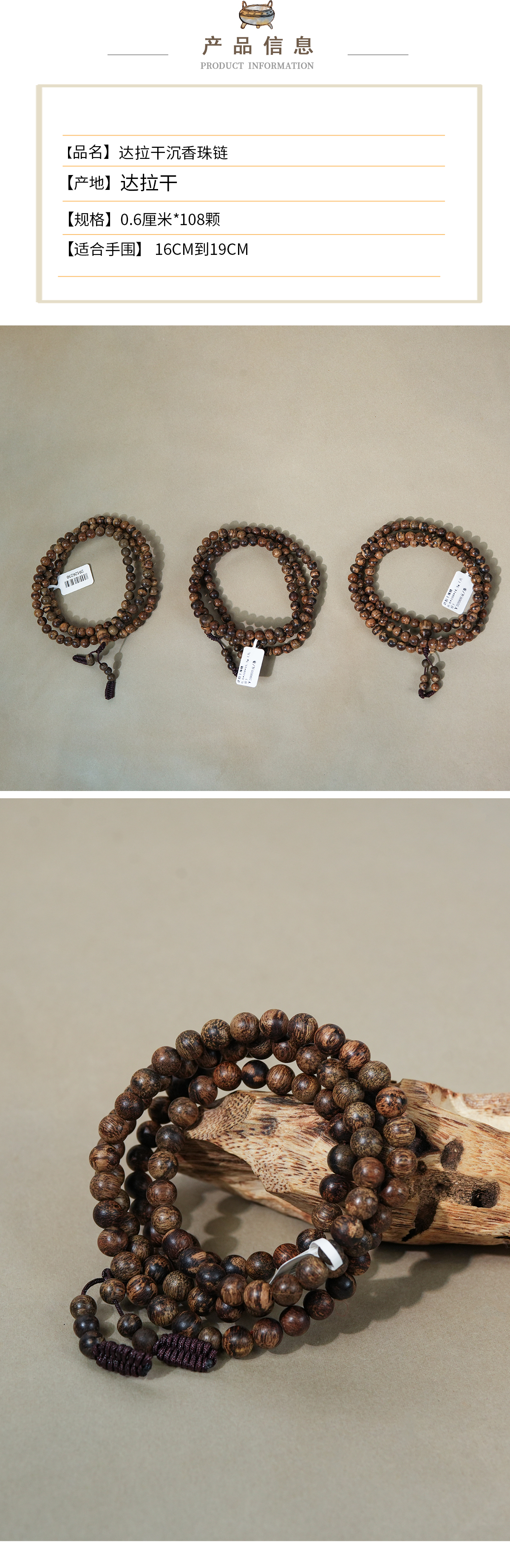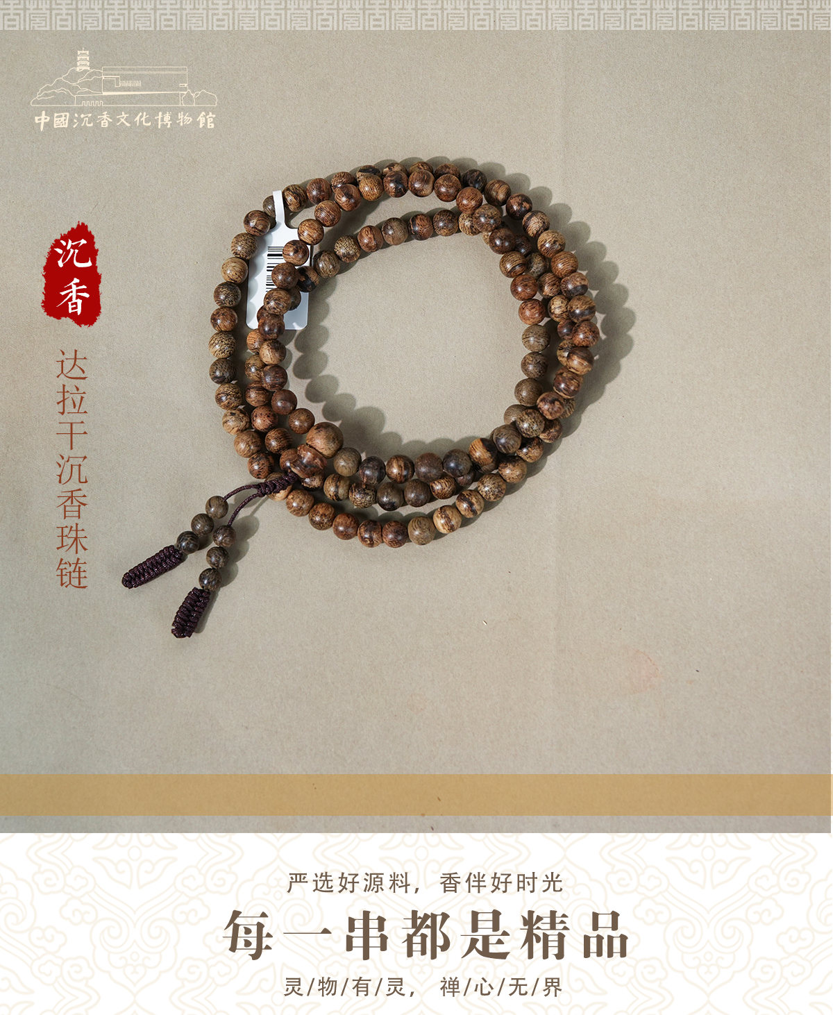 中国沉香文化博物馆 达拉干野生沉香珠链手串0.6cm*108颗*15.3g(九分沉)