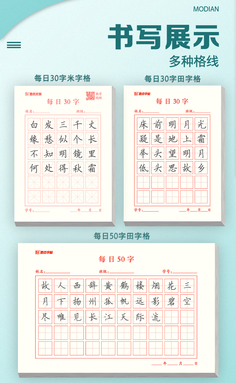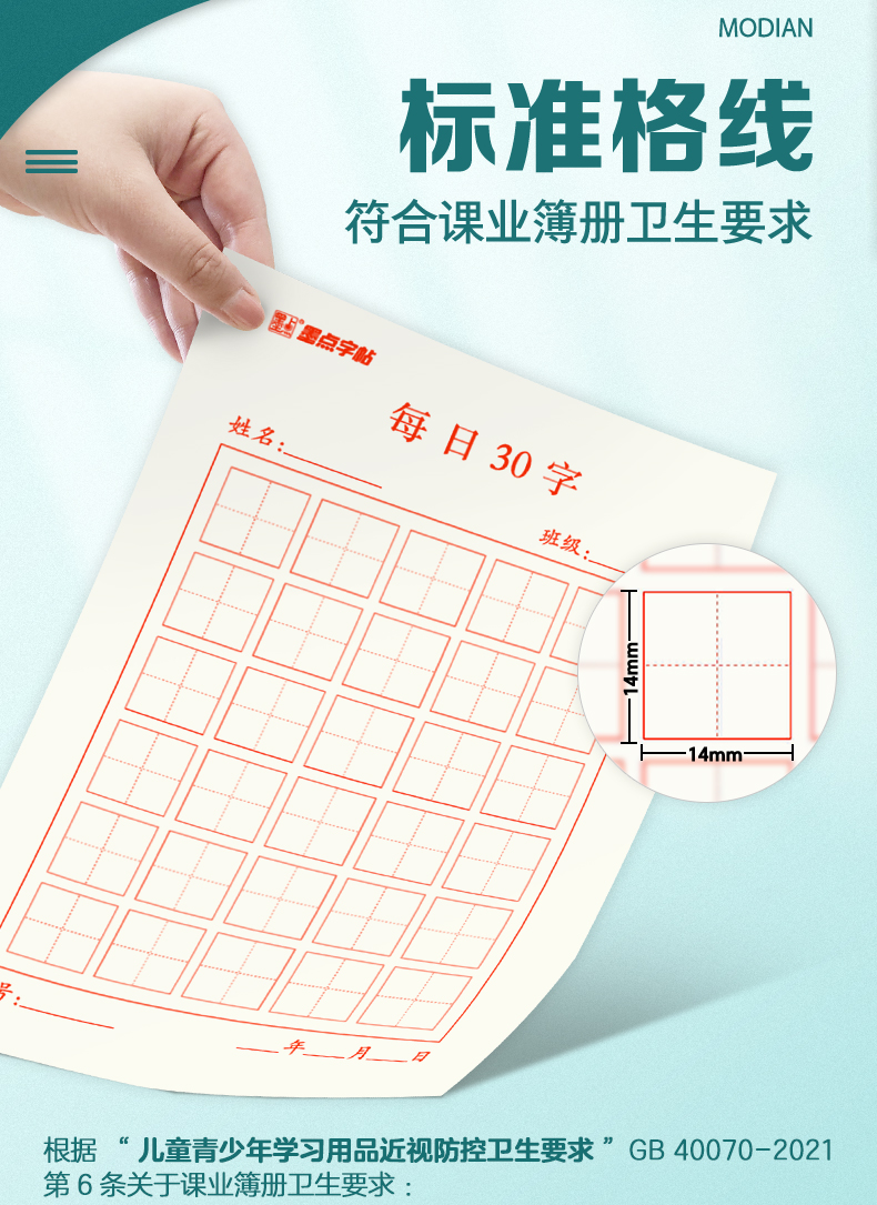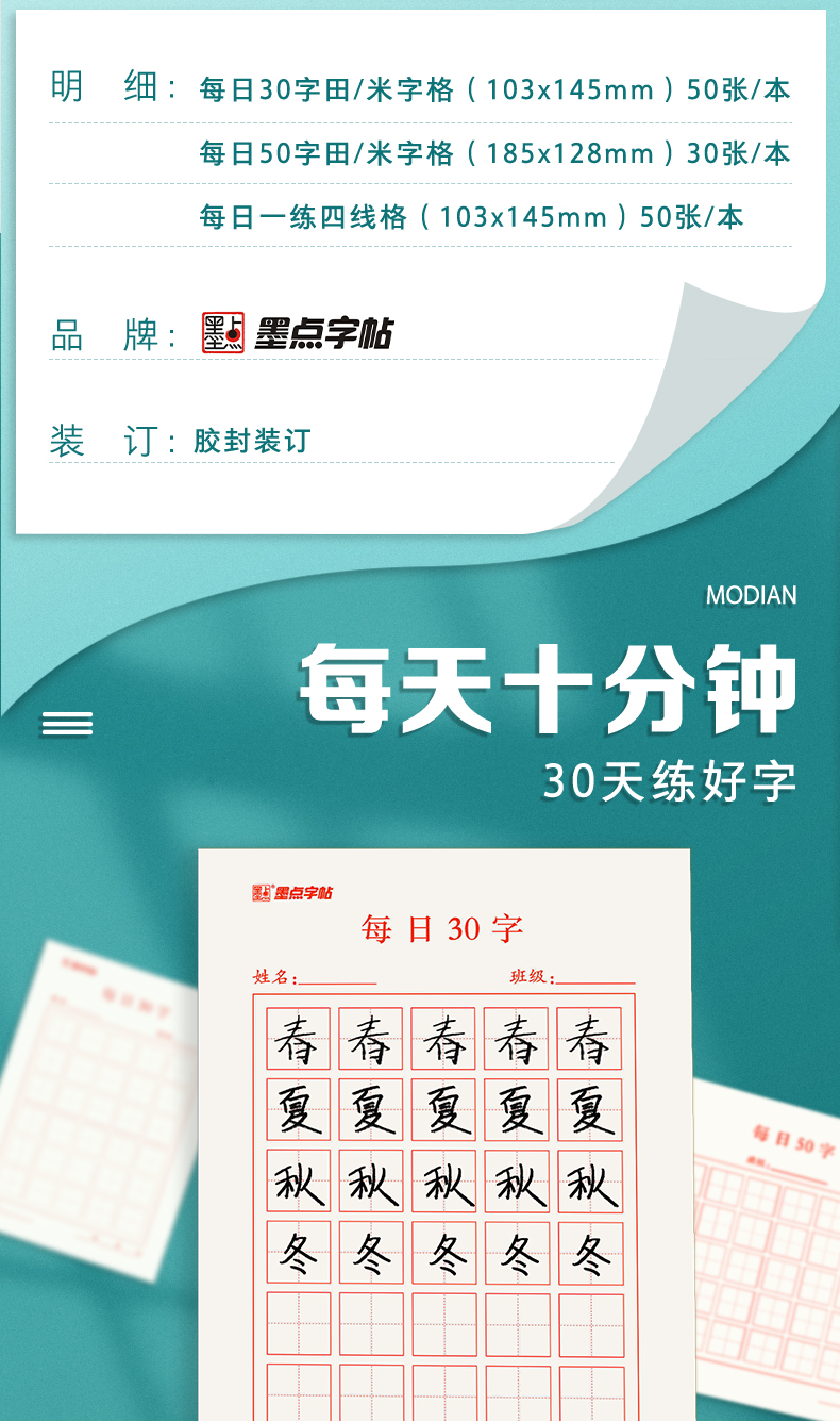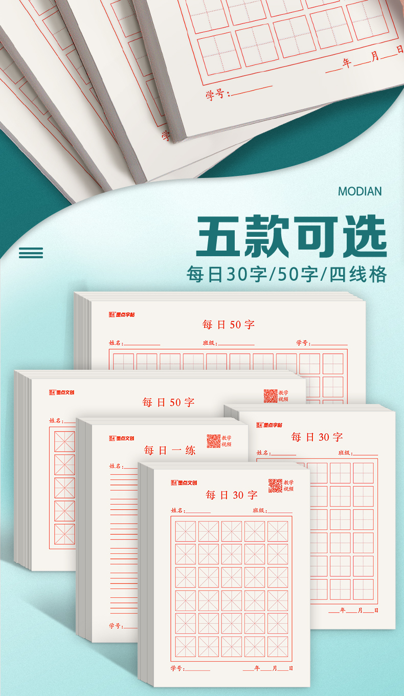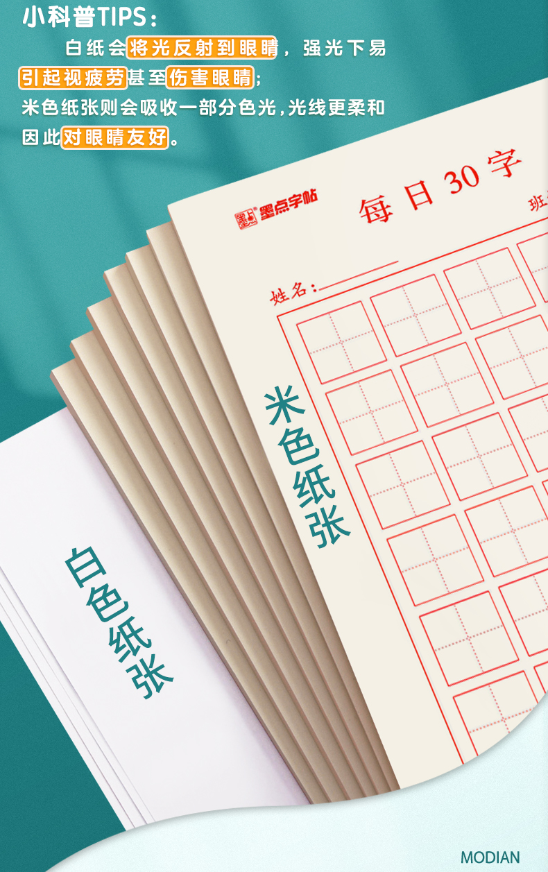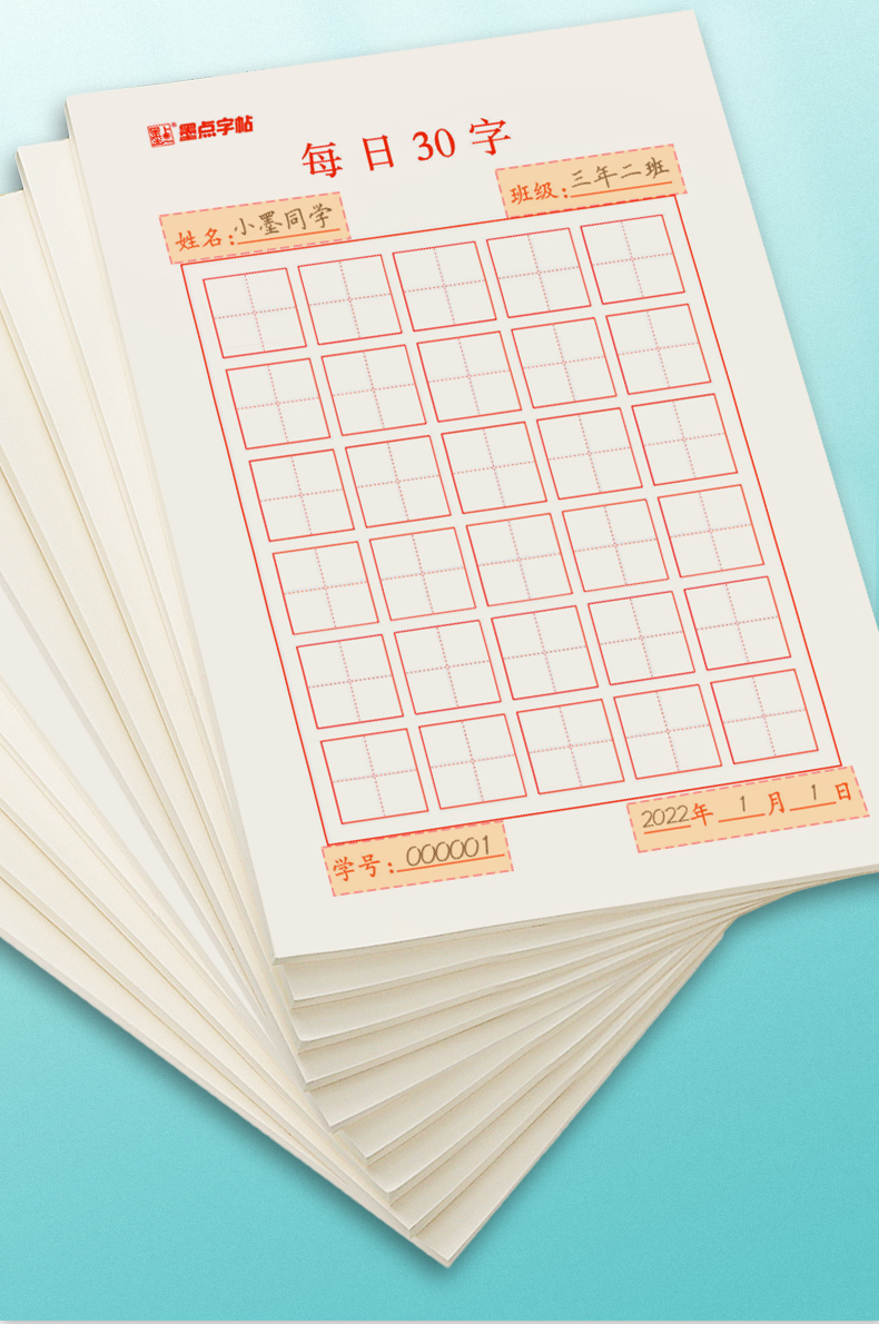墨点文创 每日30字田字格米字格四线格每日一练硬笔书法练字本儿童小学生练字专用书写纸古诗书写作品纸打卡练习专用纸