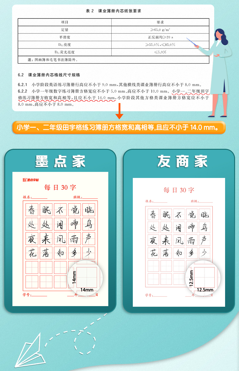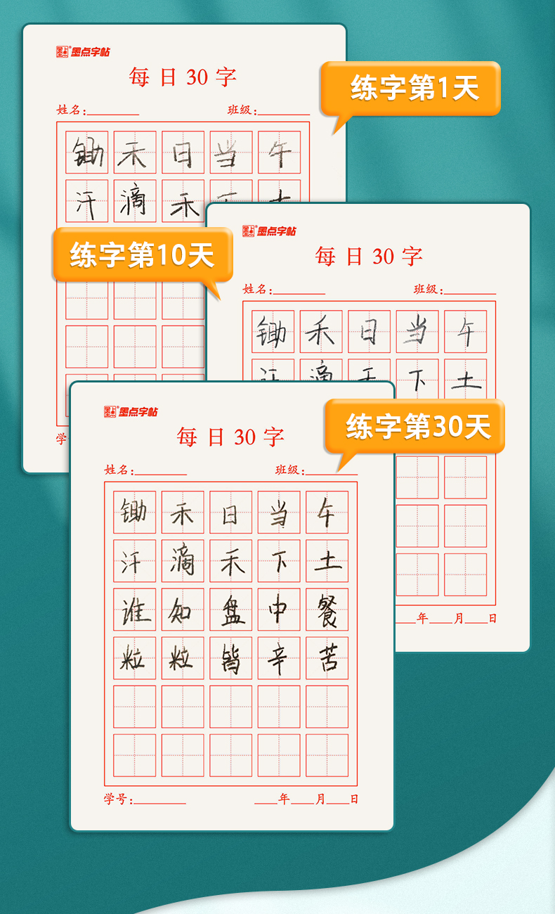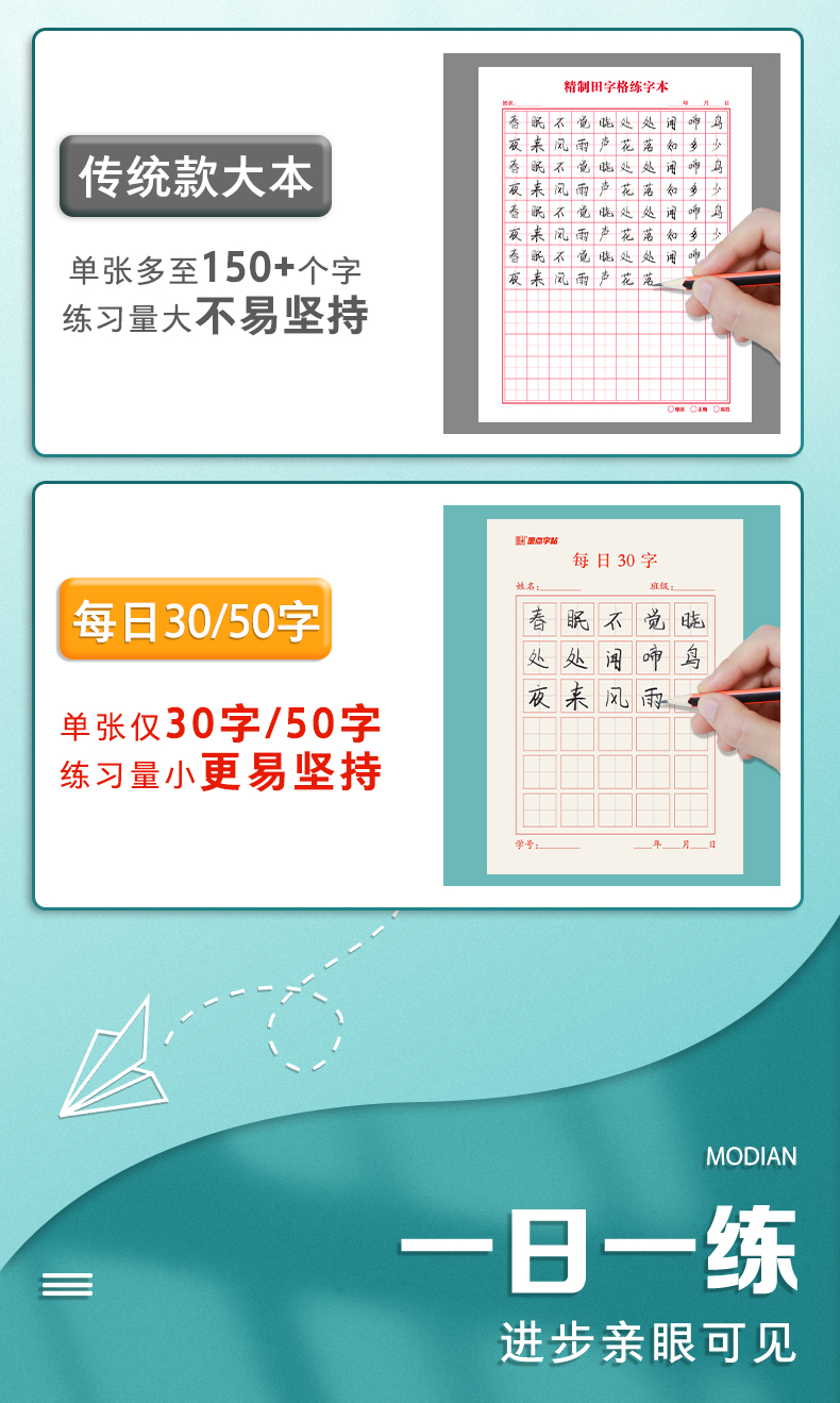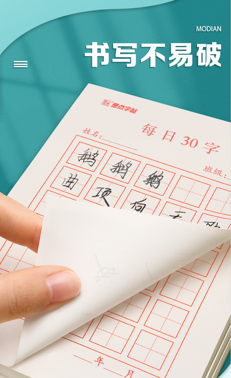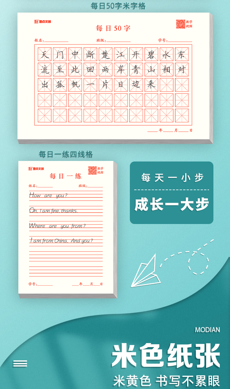 墨点文创 每日30字田字格米字格四线格每日一练硬笔书法练字本儿童小学生练字专用书写纸古诗书写作品纸打卡练习专用纸