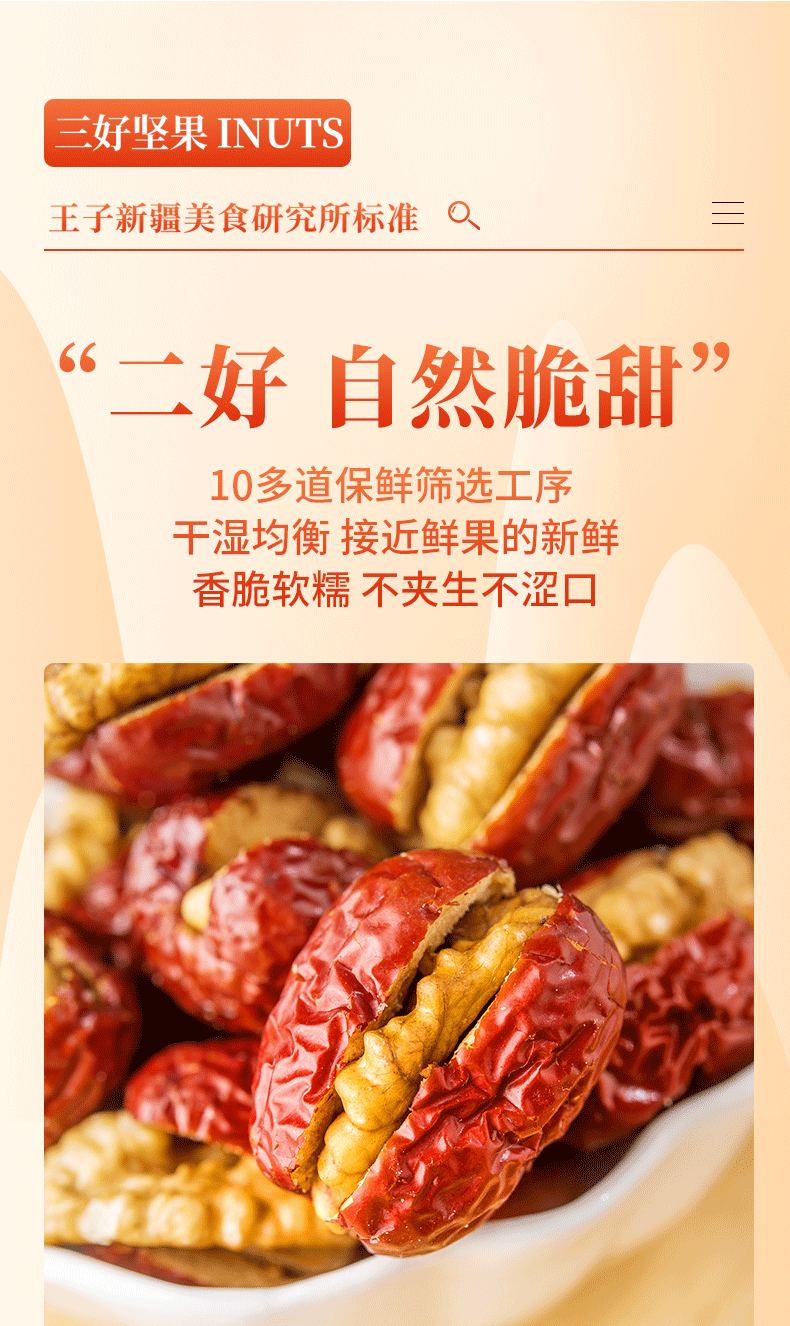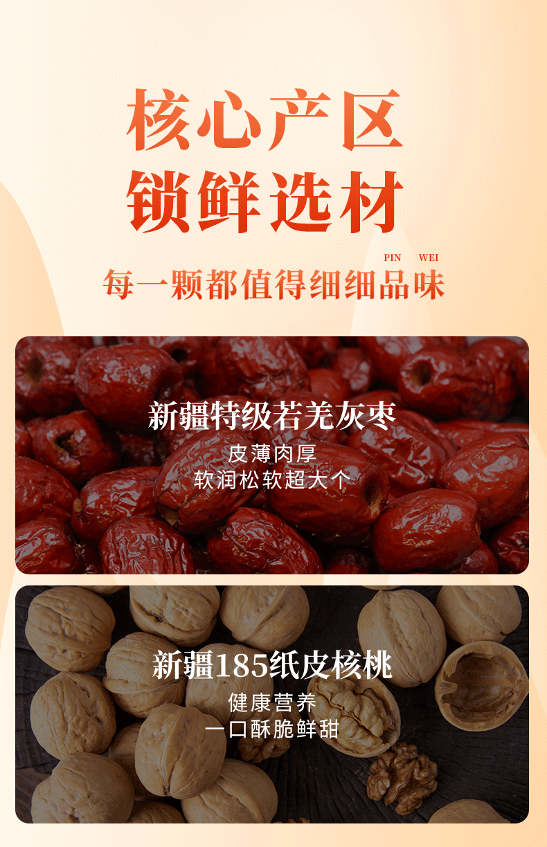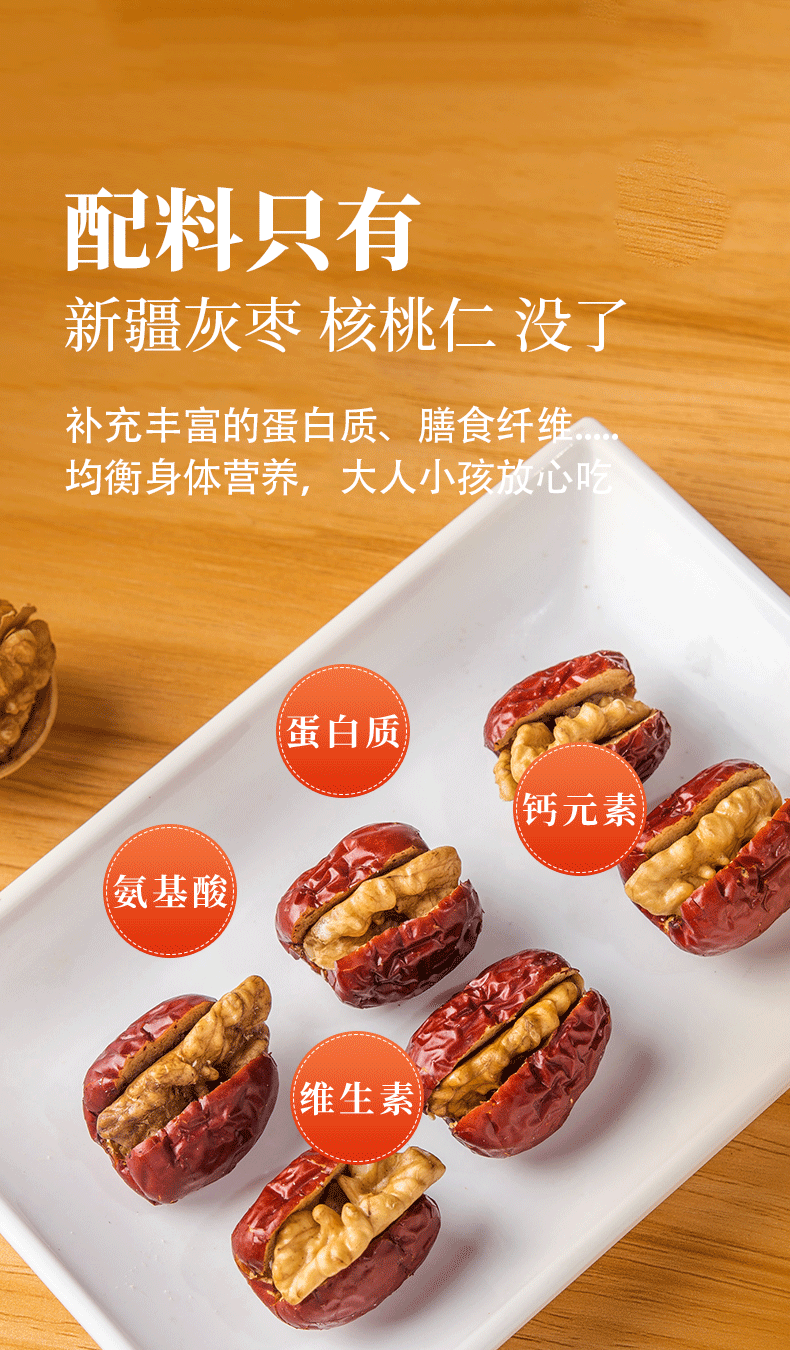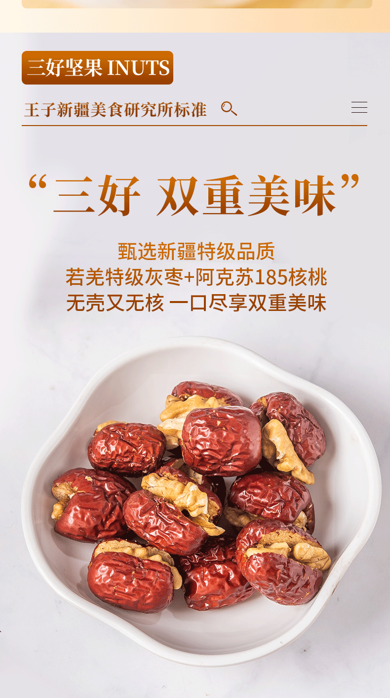 新疆切糕王子枣夹核 若羌特级灰枣+阿克苏185纸皮核桃 入口甜脆软糯