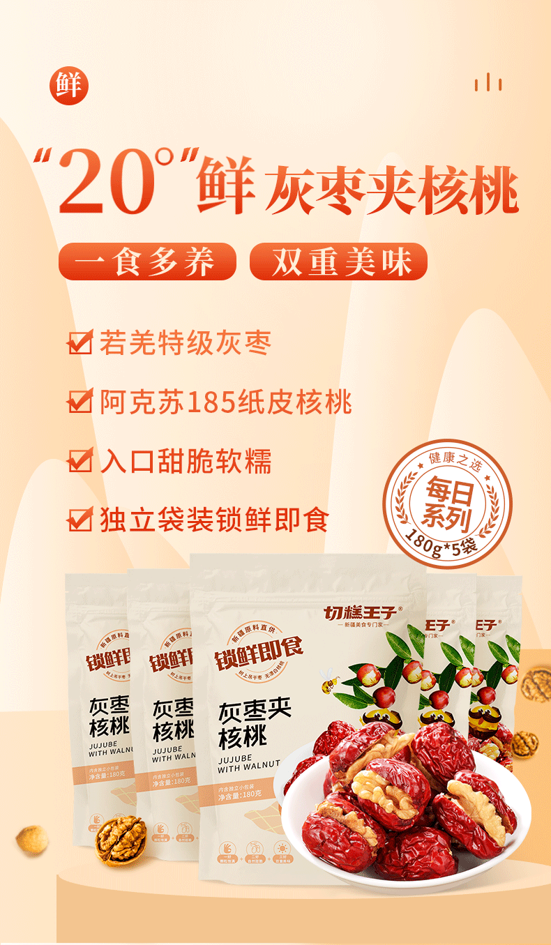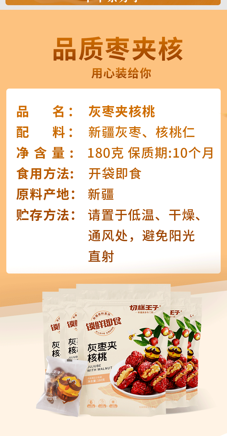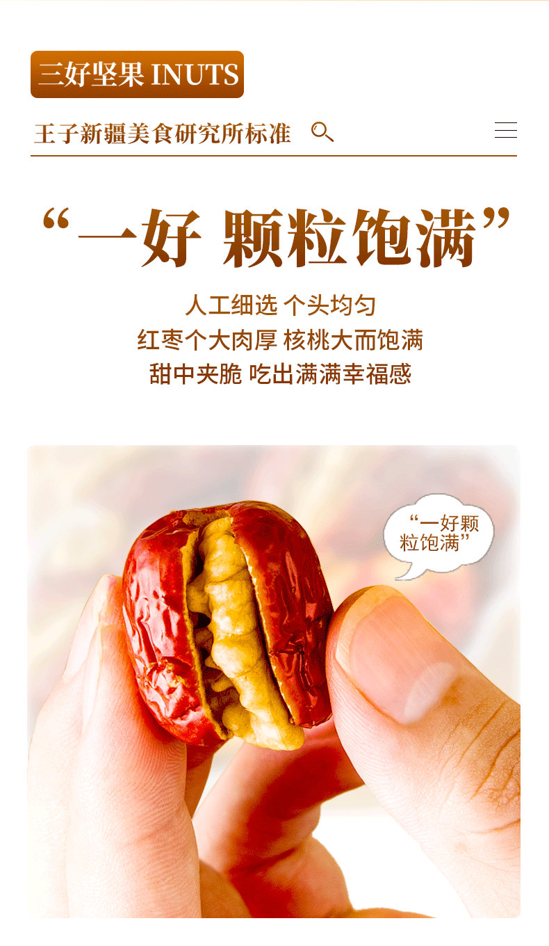 新疆切糕王子枣夹核 若羌特级灰枣+阿克苏185纸皮核桃 入口甜脆软糯