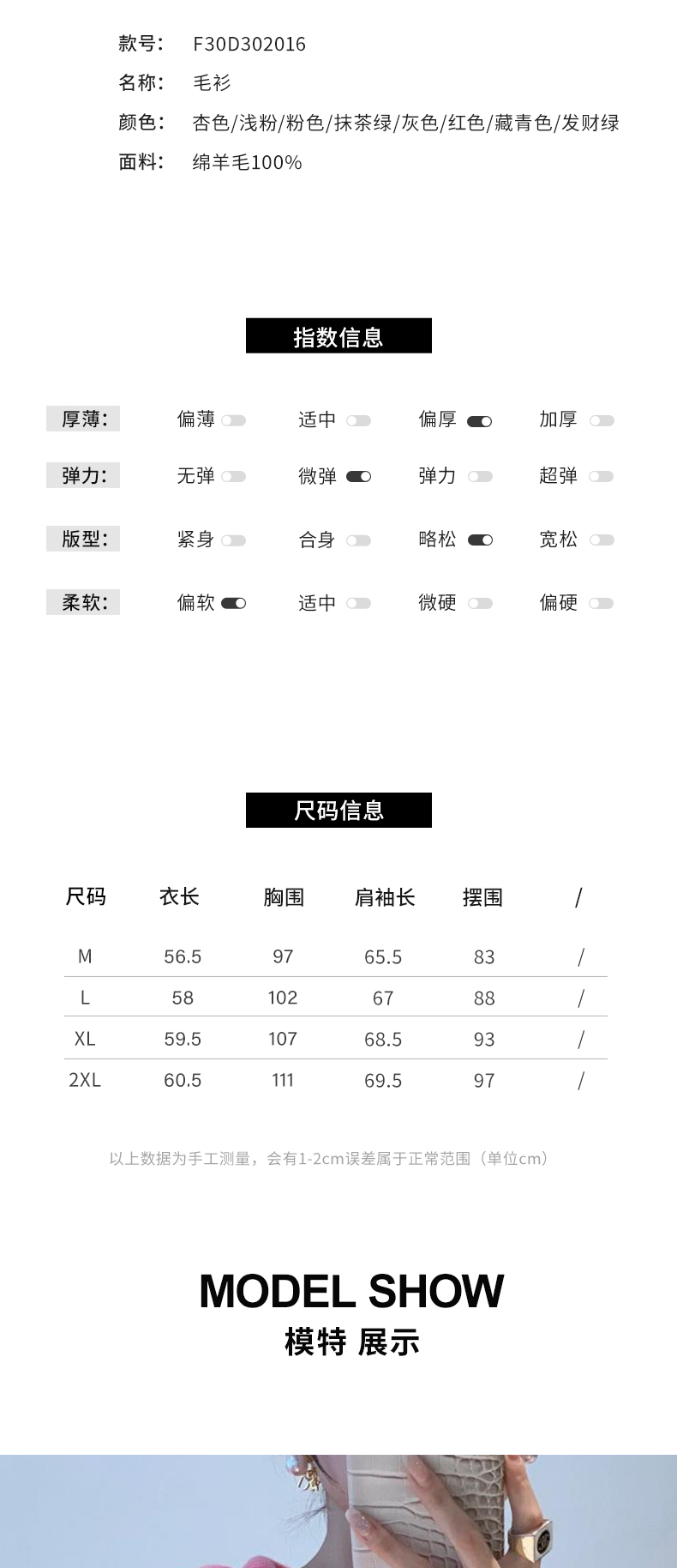 【鱼鳞肌理】阿菁娜冬季新款鱼鳞肌理羊毛衫高支美丽诺治愈色系F30D302016