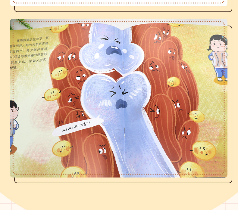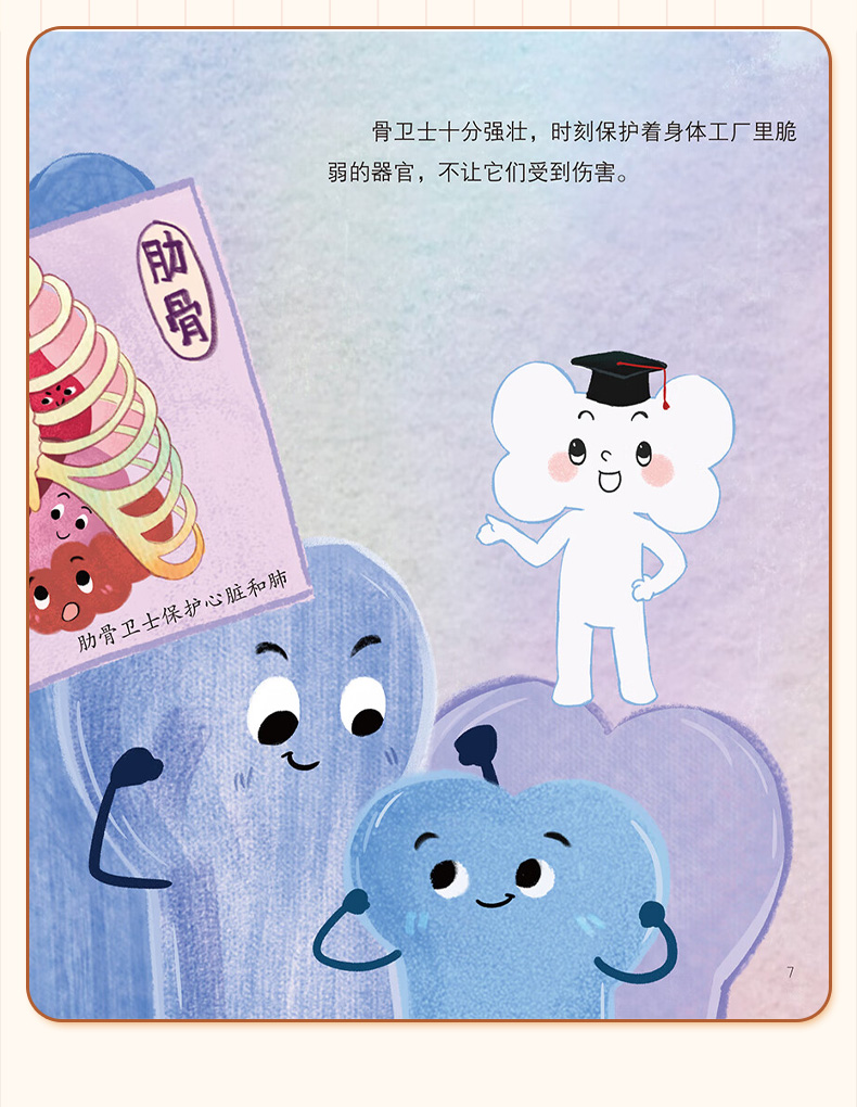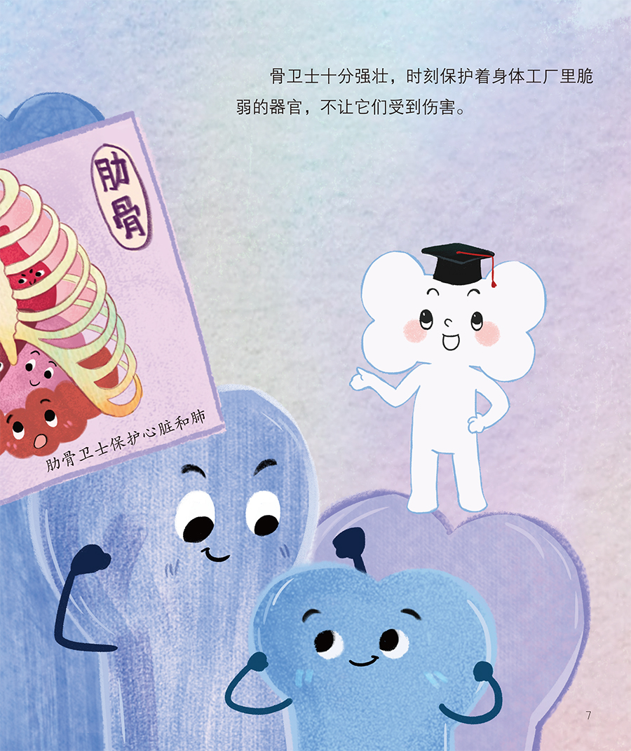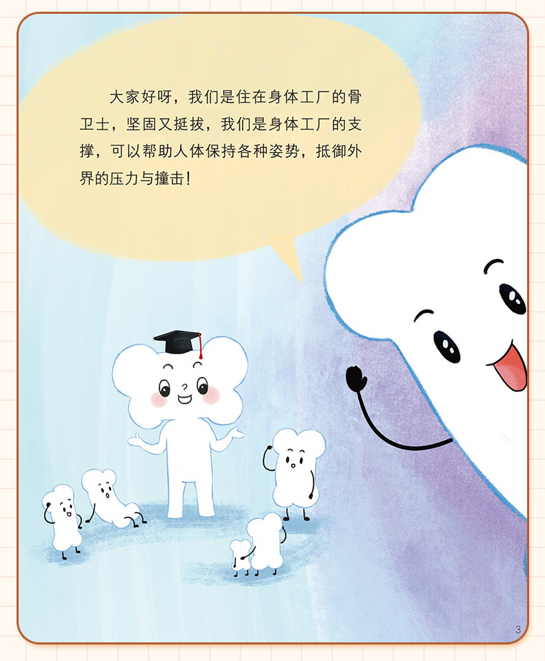 健康理念需要从小建立,健康习惯需要从小养成,利用儿童容易接受的绘本读物形式,激发他们的兴趣与参与感,传播正确的健康知识,促进儿童卫生行为的养成,并通过亲子共读,以小手拉大手的方式提升家庭健康素养,适合家庭共读,有很好的公共卫生知识传播意义,让我国“三减三健”科普工作更有抓手。以“健康骨骼”为主题的儿童绘本,充满童趣,绘本主题包括多吃富含钙和维生素D的食物;清淡饮食,减少食盐摄入量;少喝碳酸饮料;平均每天晒太阳至少20分钟;适量运动,维持和提高肌肉关节功能;平衡练习,减少跌倒和骨折的风险等。