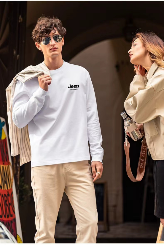 JEEP基础黑白打底衫❗首发上新❗ 品牌方爆款面料继续优化升级❗版型升级❗ JEEP 🏆世界第一辆越野车制造者 🏆早在80多年前就引领了跨界时尚风潮 夏天开了好几次团 尤其是那款天丝莫代尔的短袖 透气、吸汗,不变形,谁买谁好评! 转眼就入春了,长袖也要发力 Jeep经典打底基础色新款上市 蕞百搭、蕞耐穿的👇 【天丝莫代尔5A抗菌长袖】 ✅两种款式可选 ✅S-5XL,80-220斤都能穿 承包全家男性的经典穿搭!送老公❗送父母❗准没错🎁
