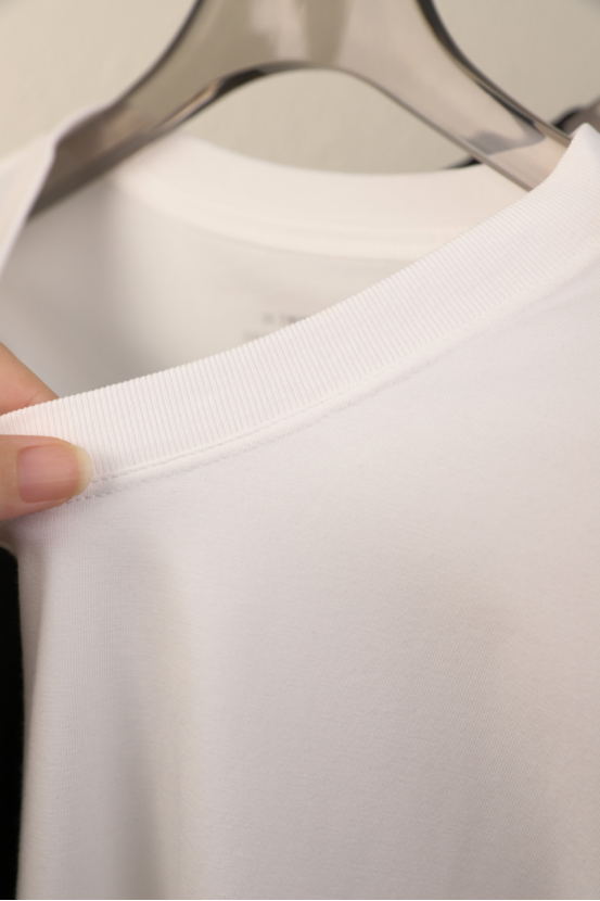 ✅原纱配套螺纹领口 不是市面上匹配的常规螺纹 🔺弹性好,包裹性大! 出色的柔软性、以及抗皱性 良好的弹性、耐用性和易打理性 多次穿着、清洗揉搓、机洗搅动 还能保持🔺领口不变形🔺大身不变形 这就是大牌与市场货的区别 79一件能穿好几年! 买得就是超值!!