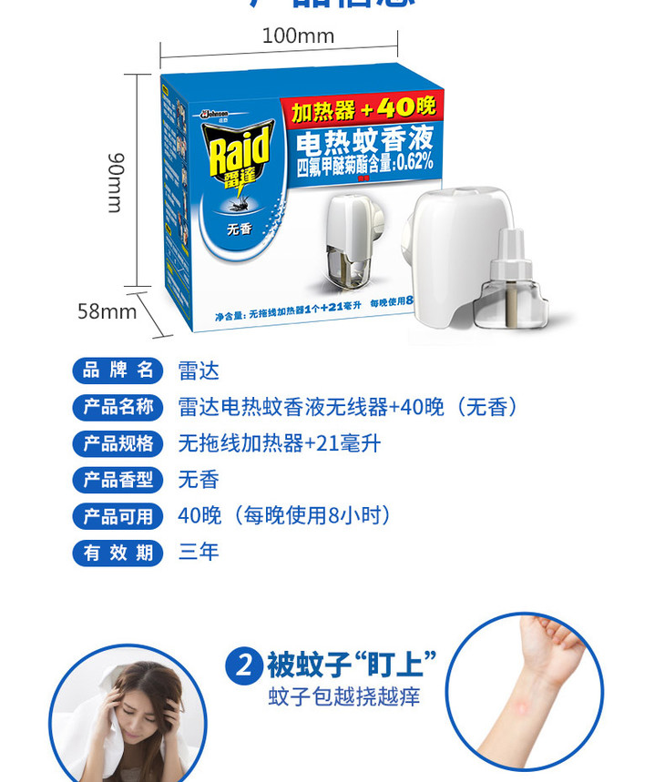 【电蚊香】雷达无线式电热蚊香液 40晚无香 无拖线加热器 安全驱蚊