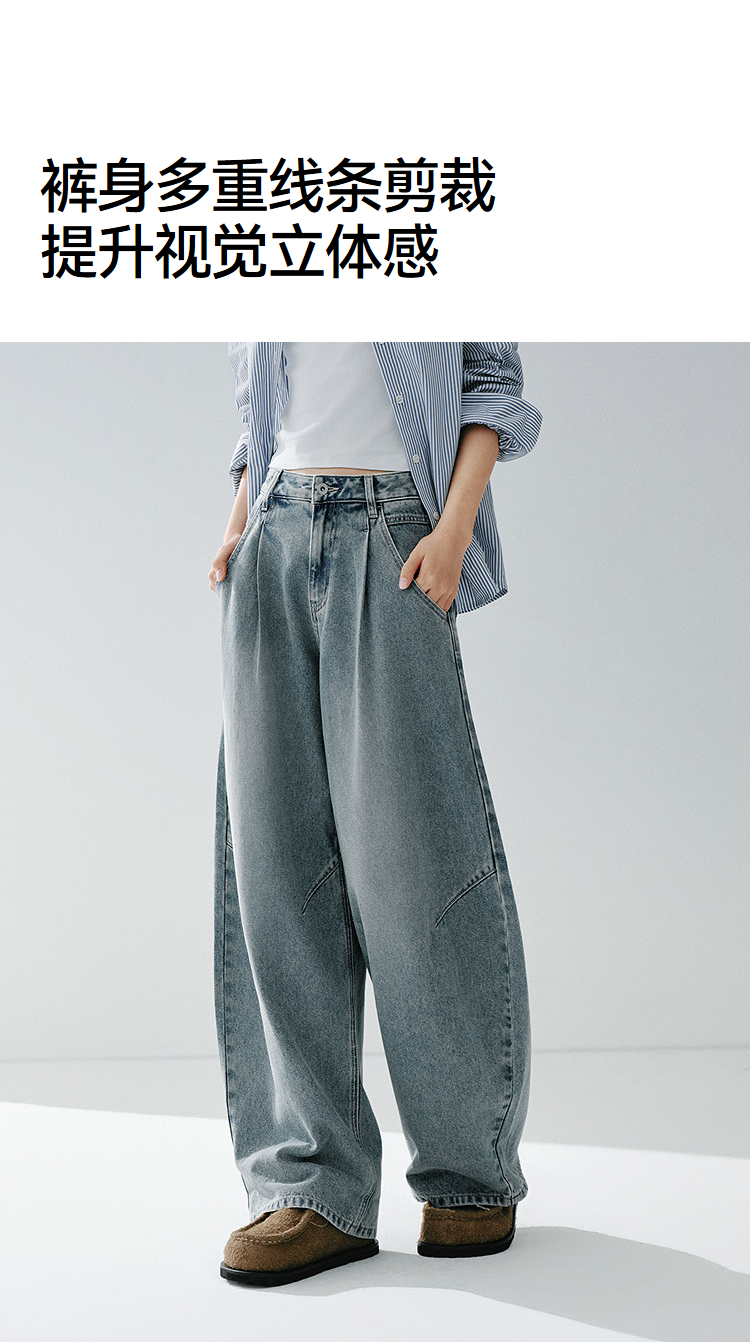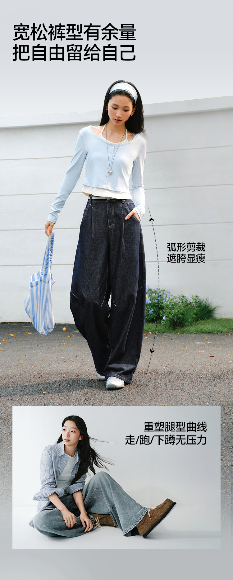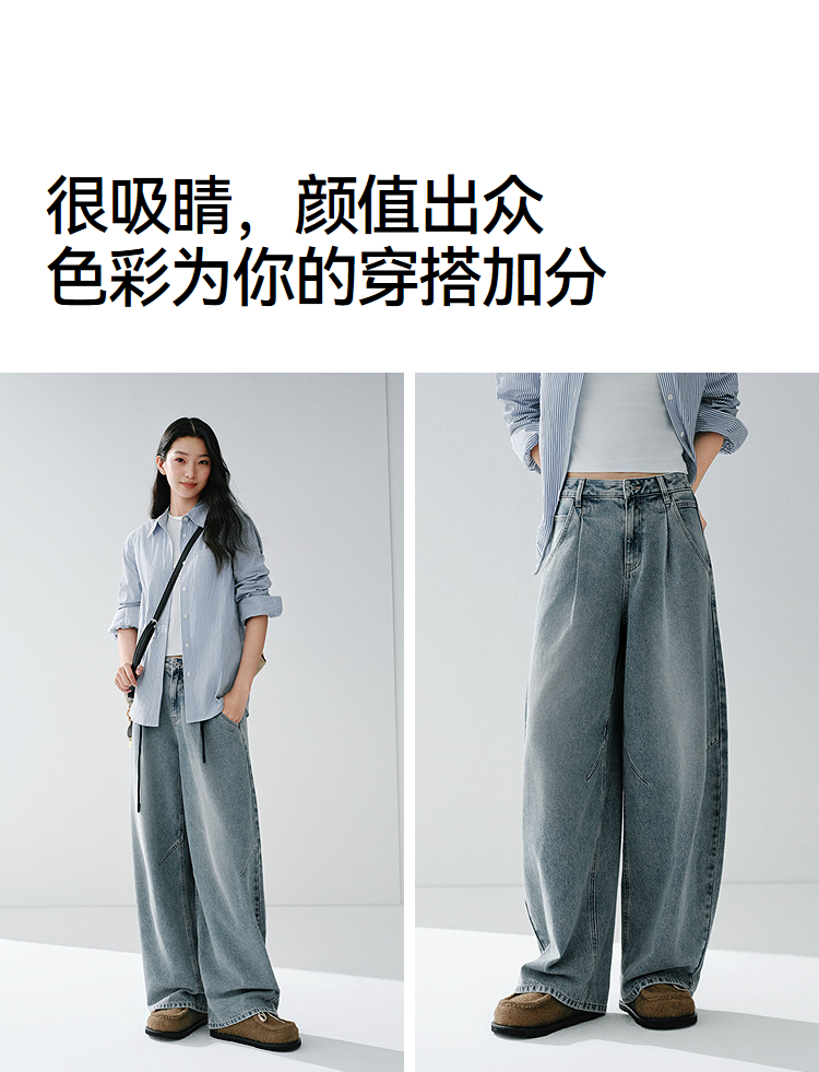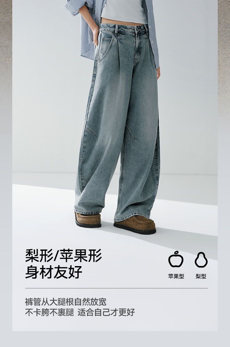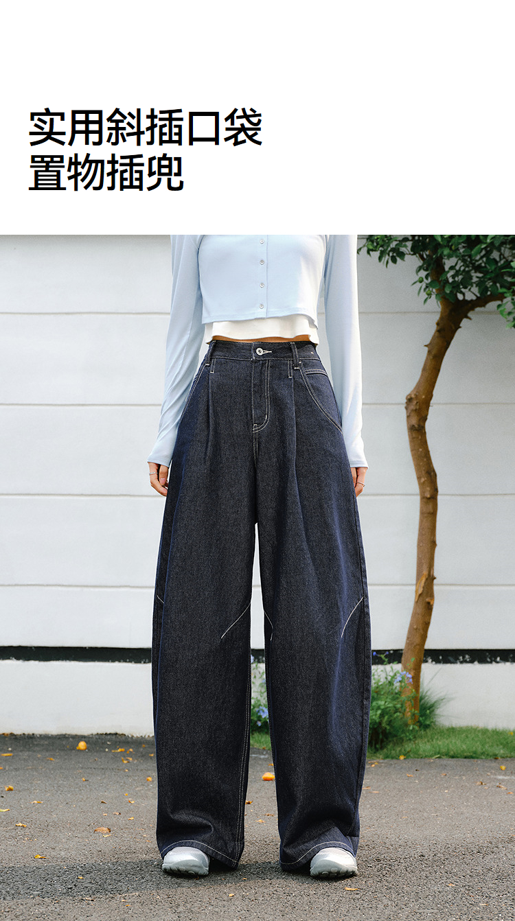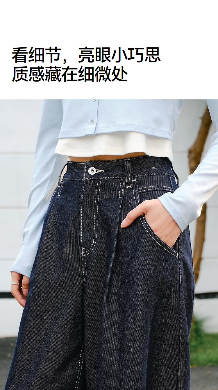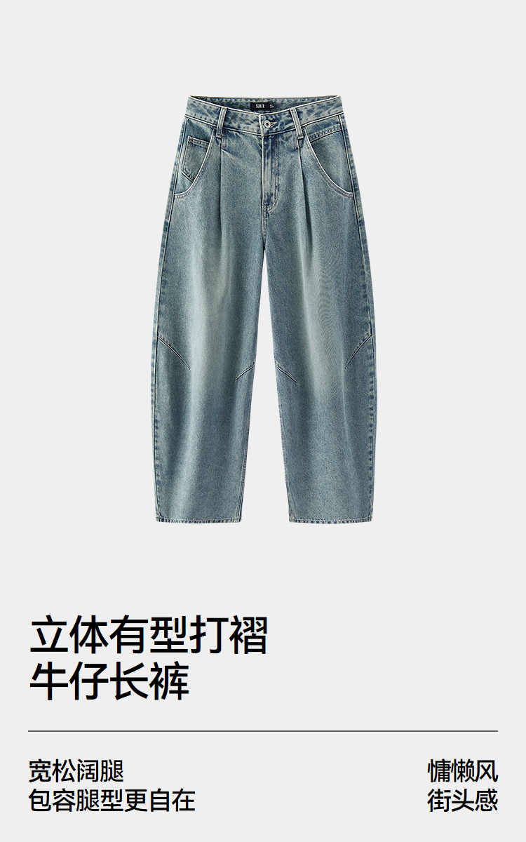 【爆品主推】森马牛仔裤女春季打褶长裤宽松2026新款拽姐慵懒风美式高街阔腿裤