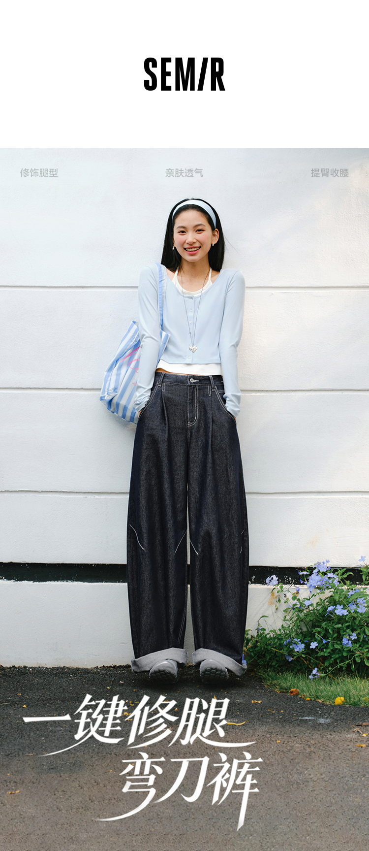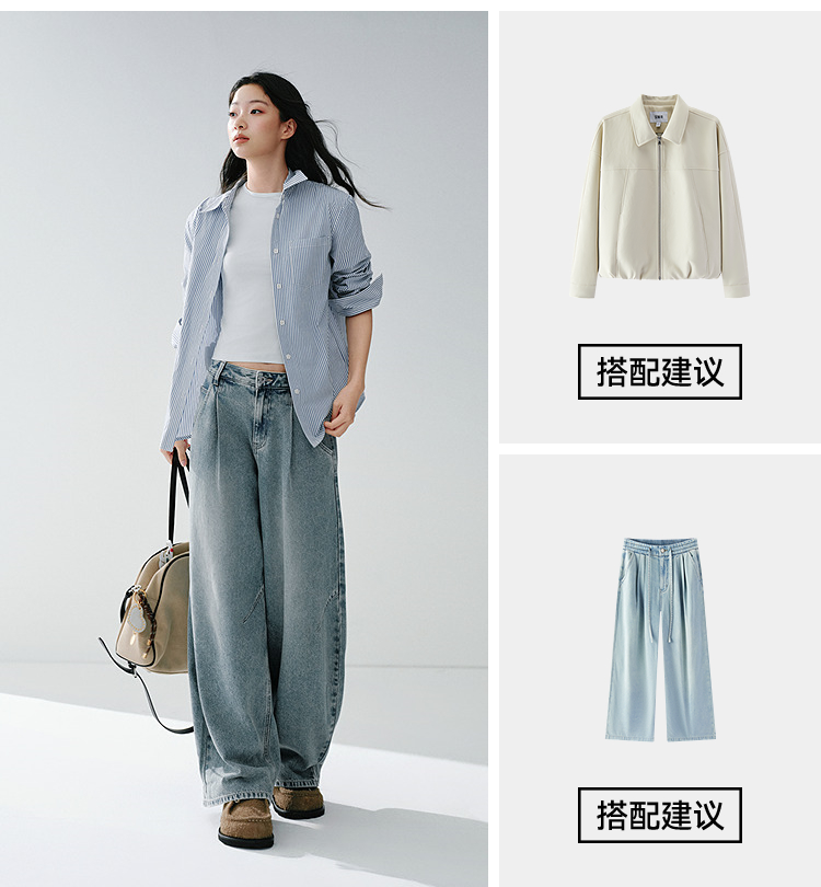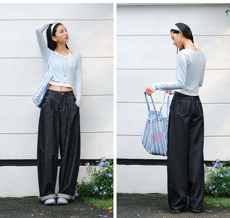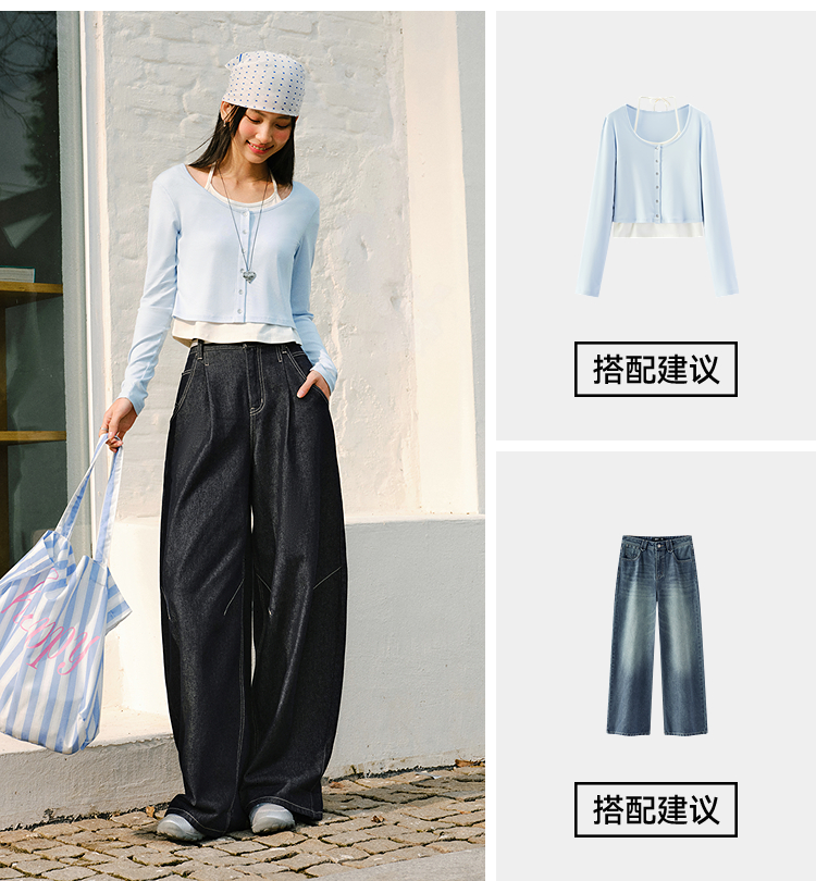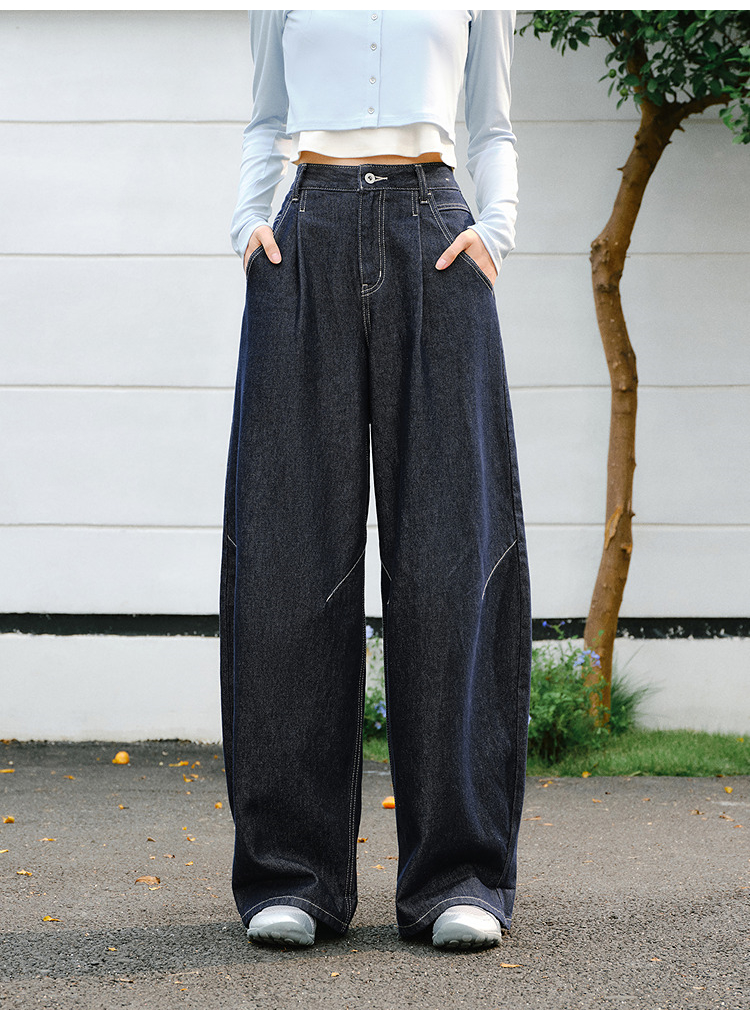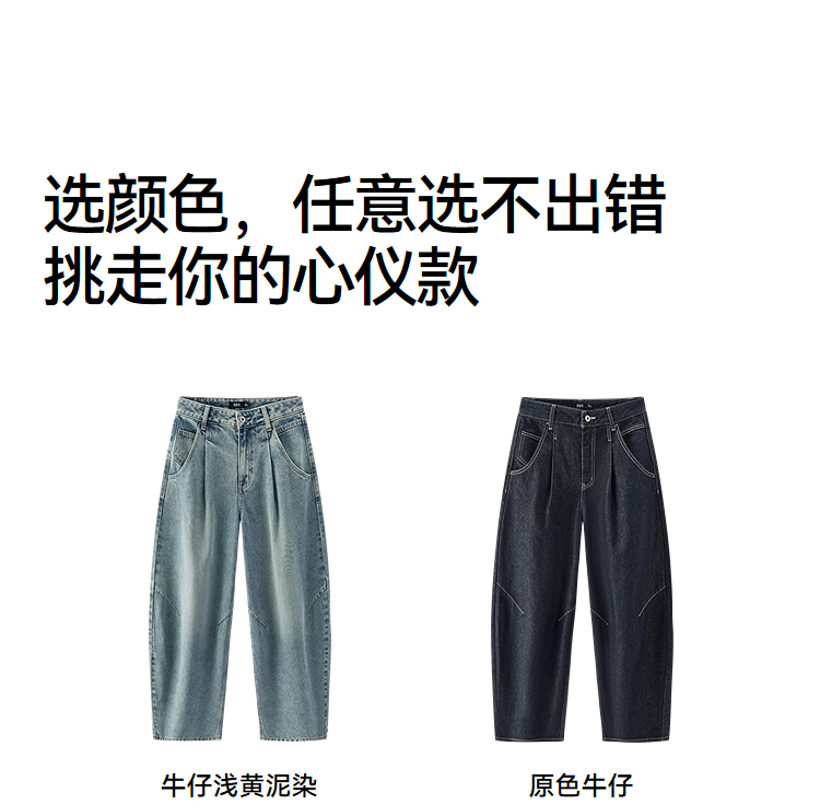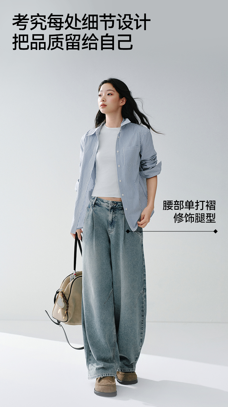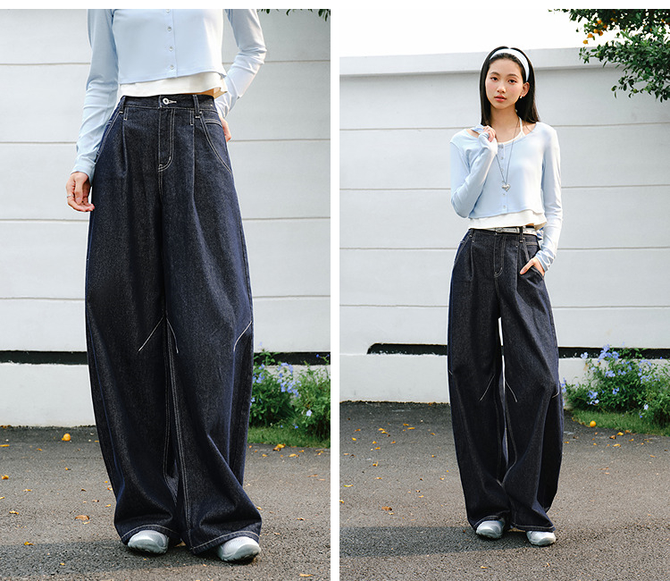 【爆品主推】森马牛仔裤女春季打褶长裤宽松2026新款拽姐慵懒风美式高街阔腿裤