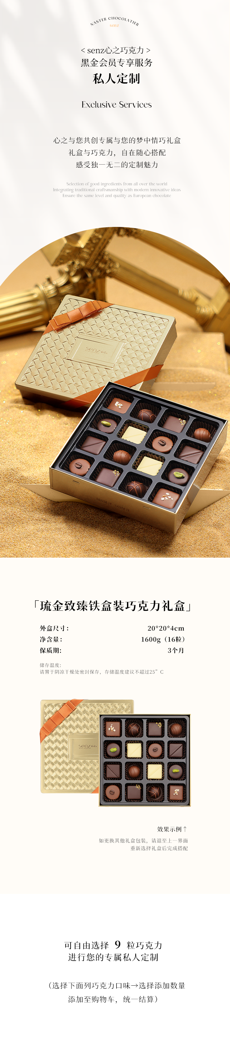 心之SENZ【琉金致臻】9粒手工甘纳许夹心巧克力礼盒