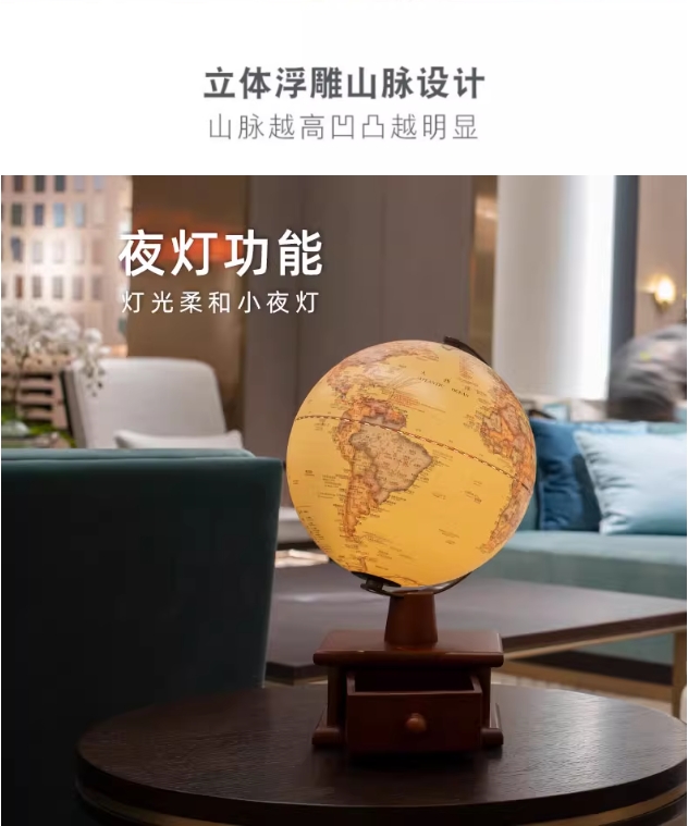 8英寸(20cm)有灯仿古宝盒地球仪(中英文版)