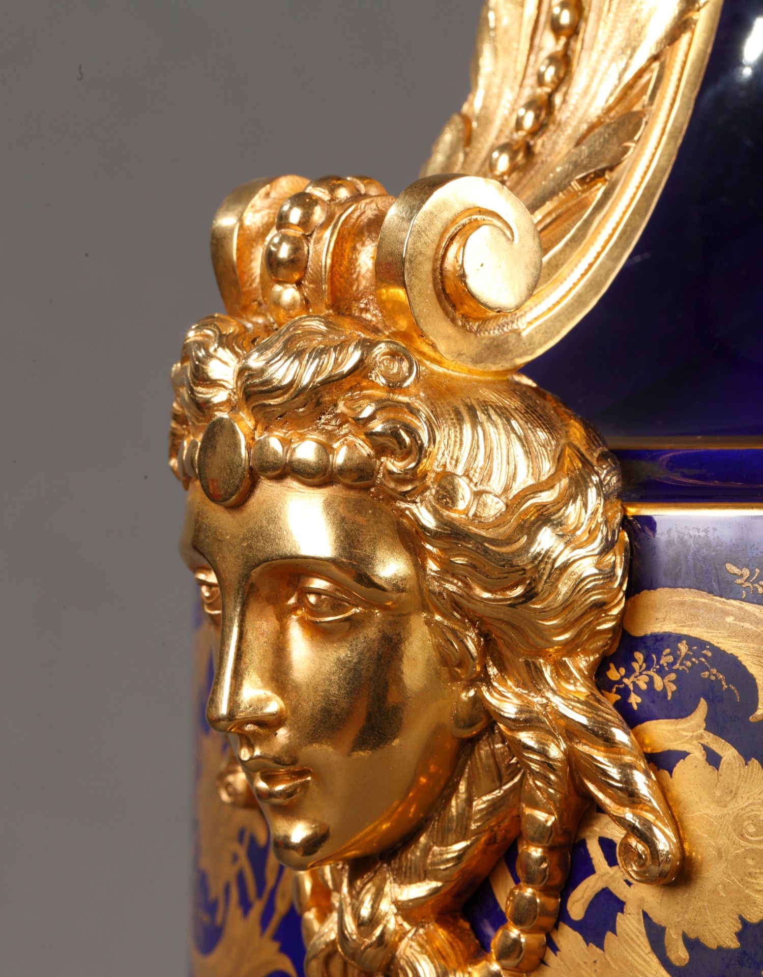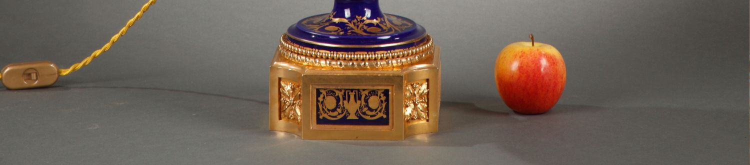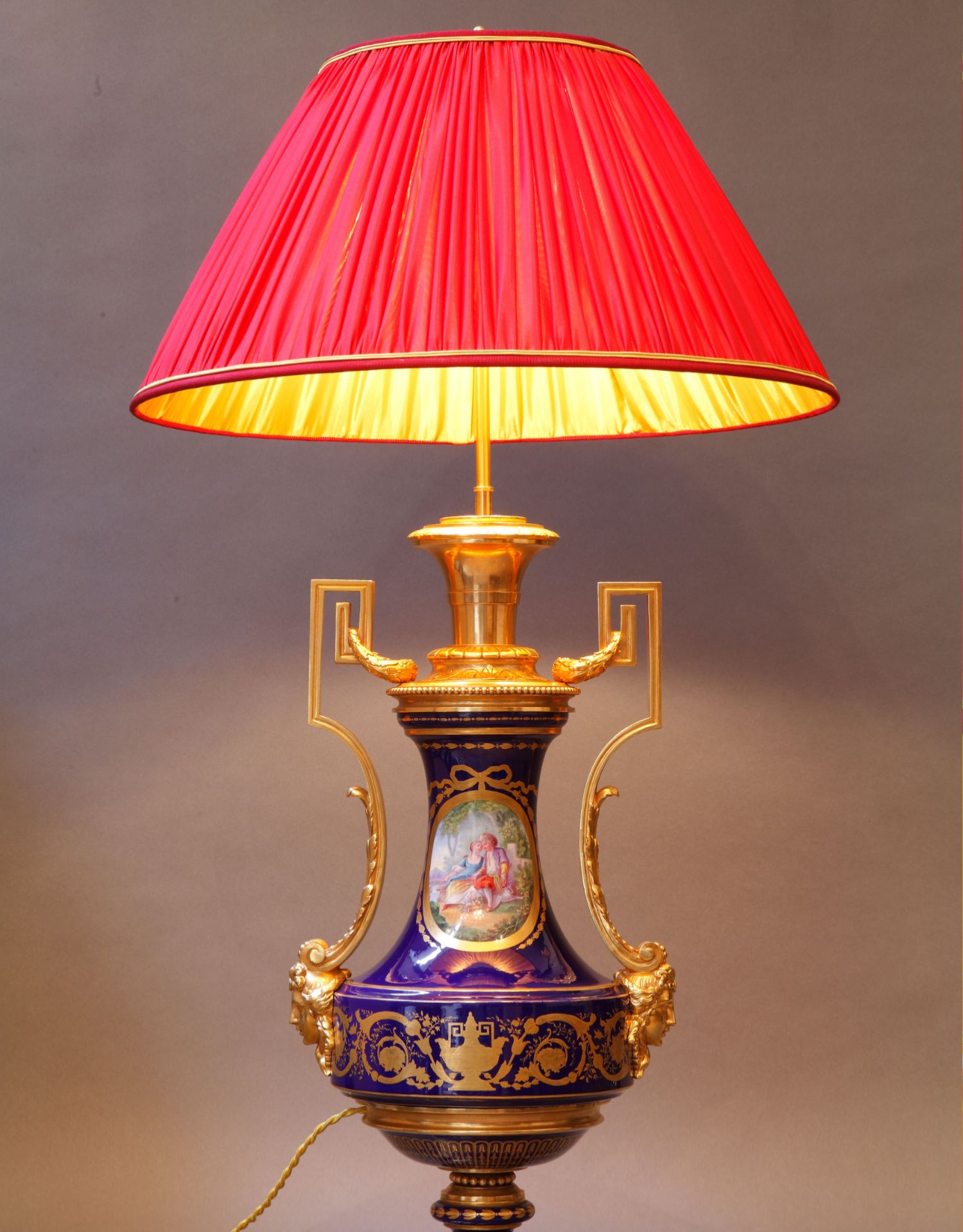 独角鹿西洋古董1880年代法国铜鎏金塞弗尔瓷瓶古董台灯