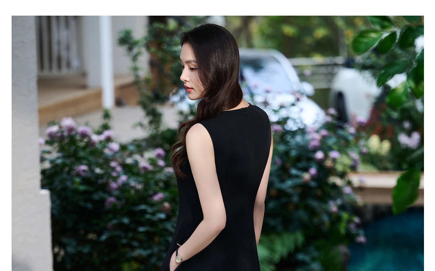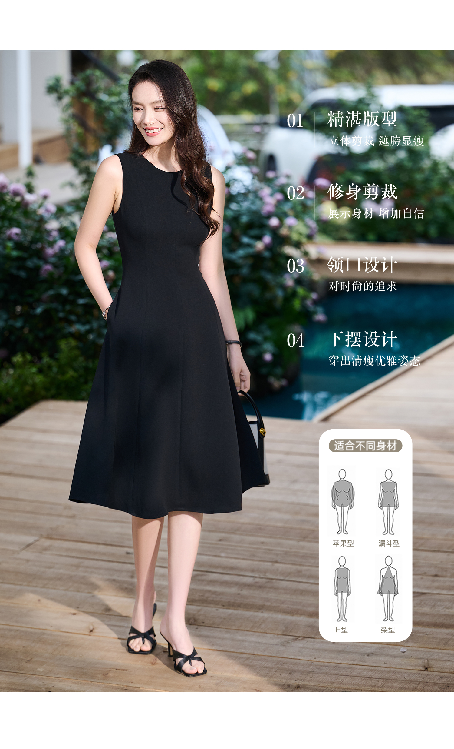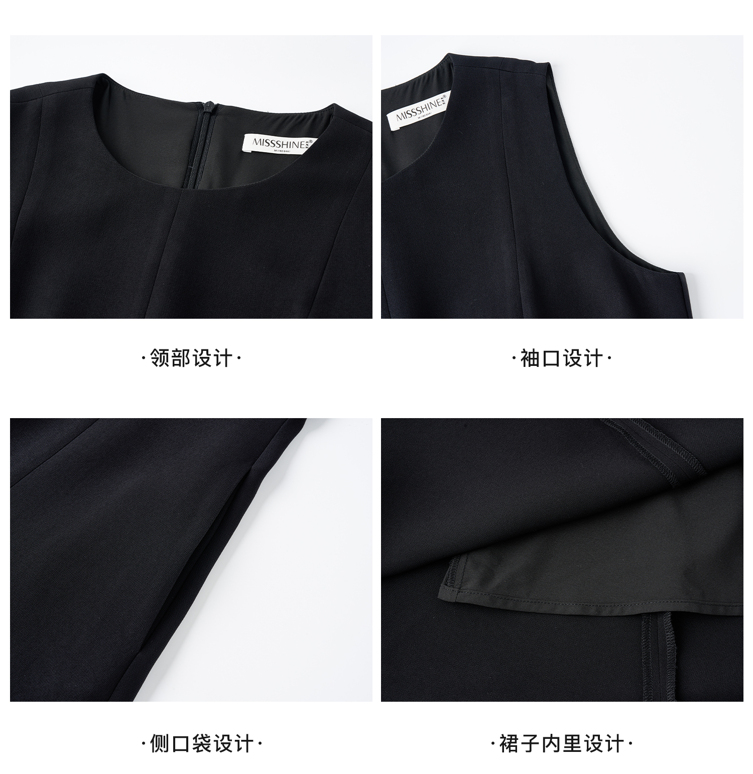 赫本风醋酸小黑裙 米思阳2026春季新款法式优雅通勤百搭OL圆领收腰醋纤小黑裙连衣裙女6085